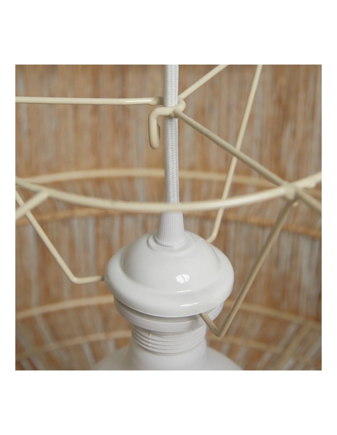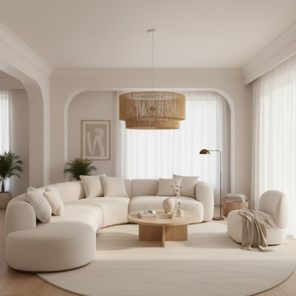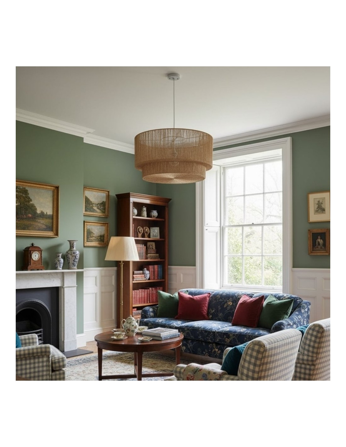 De Florevian hanglamp is een prachtig vormgegeven plafondlamp in trommelvorm, omwikkeld met geweven jute. De lamp combineert een natuurlijke textuur met een strakke, moderne vormgeving. Het ontwerp met twee lagen zorgt voor een zacht gelaagd effect en diffuus licht, dat perfect past in interieurs met een bohemian, kust- of organische stijl.