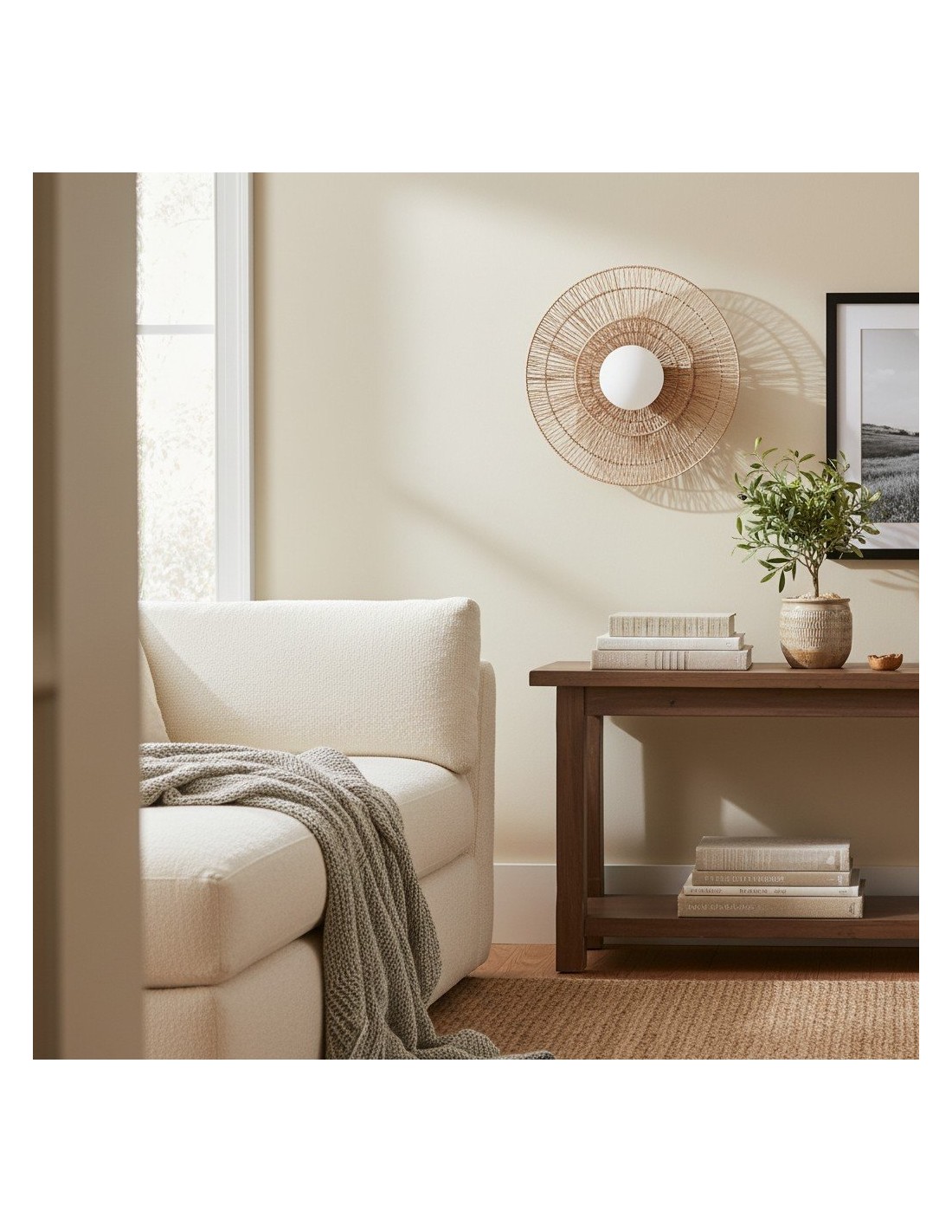 Deze wandlamp is een opvallend armatuur met twee in elkaar passende, geweven jute kappen die een elegant, gelaagd silhouet vormen. Gemaakt van natuurlijke vezels, voegt de lamp een rijke textuur en aardse warmte toe aan elke ruimte. Een aanwinst voor woonkamers, slaapkamers, gangen of knusse hoekjes.