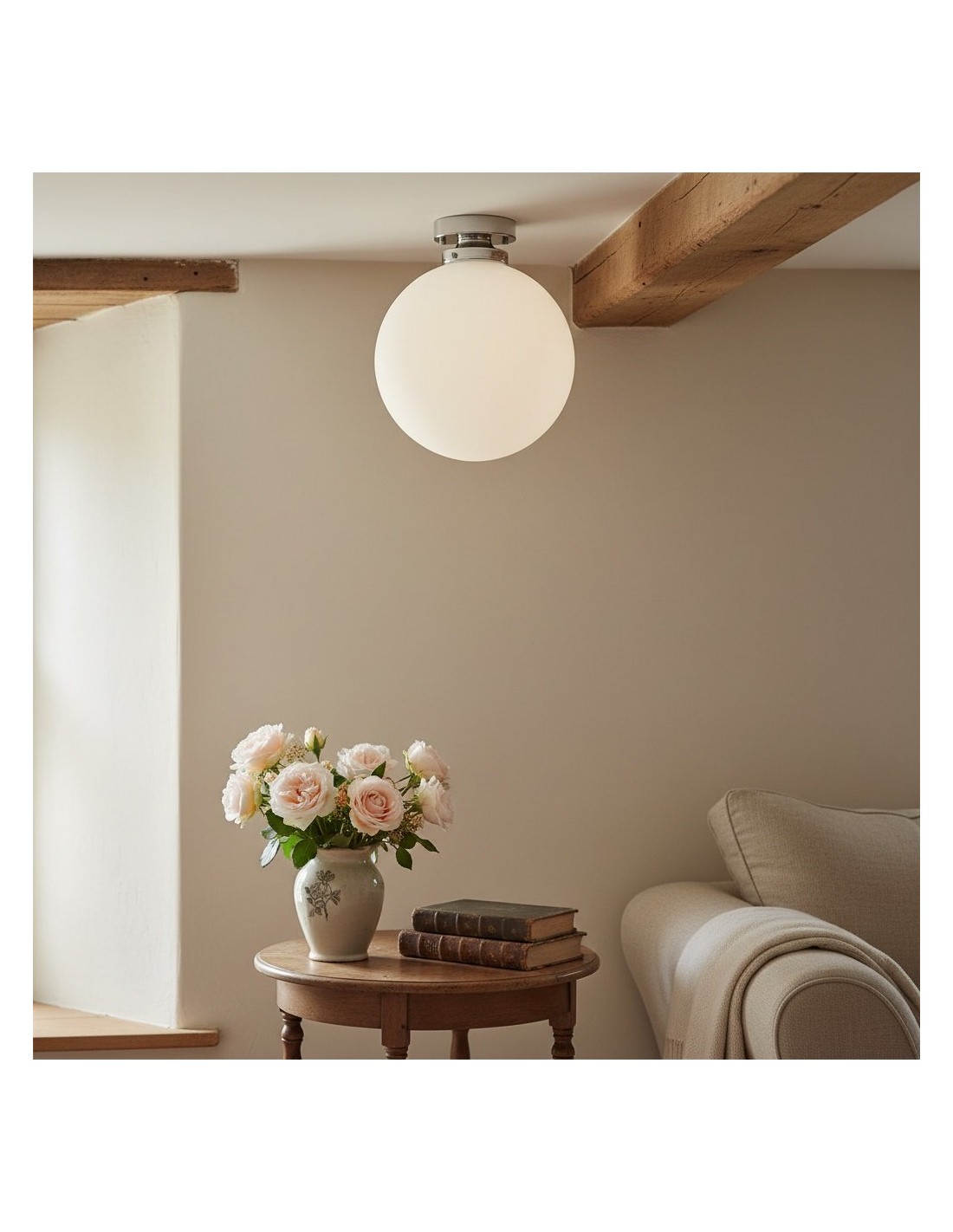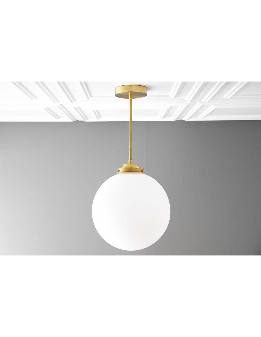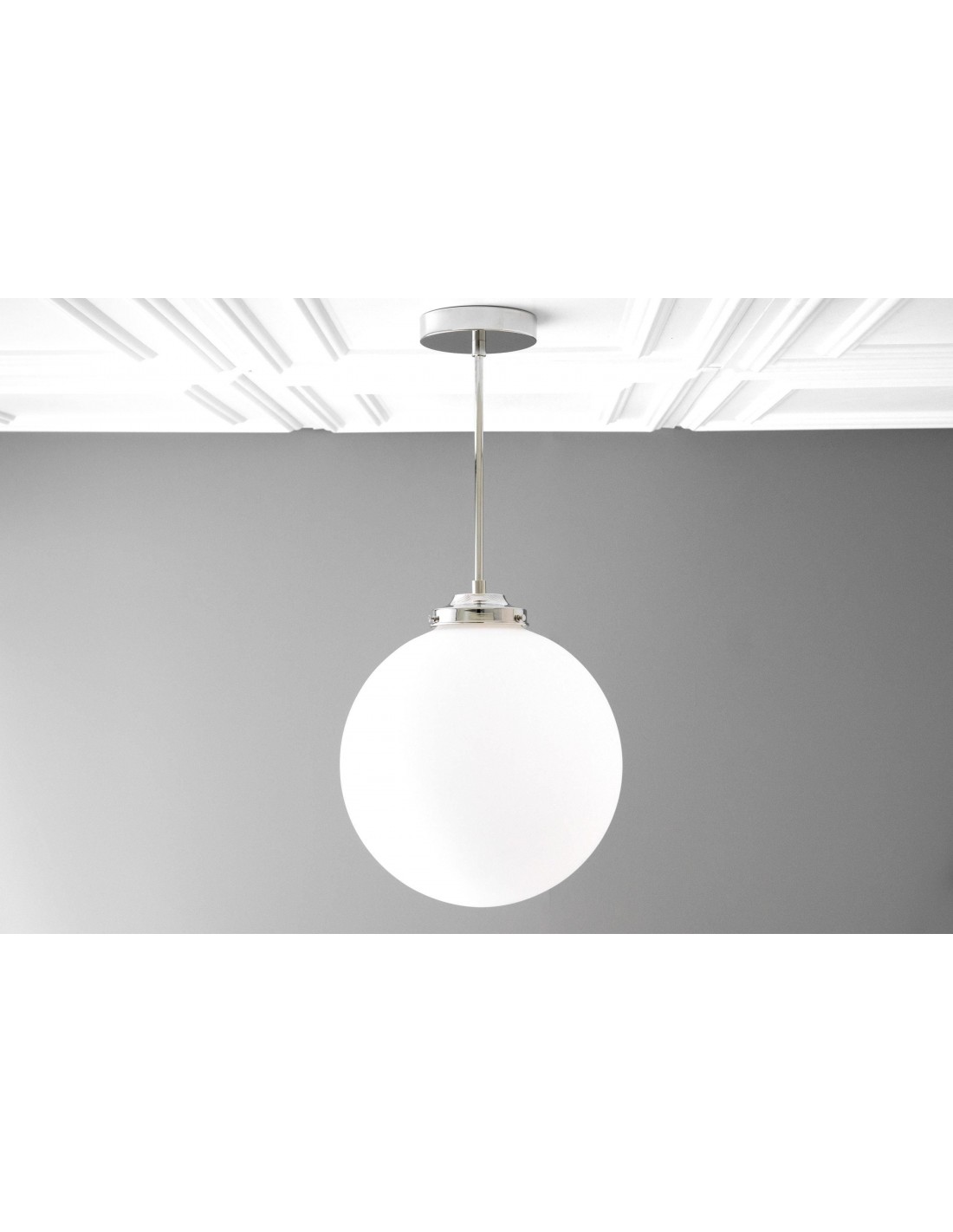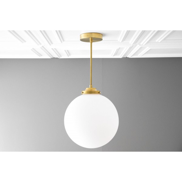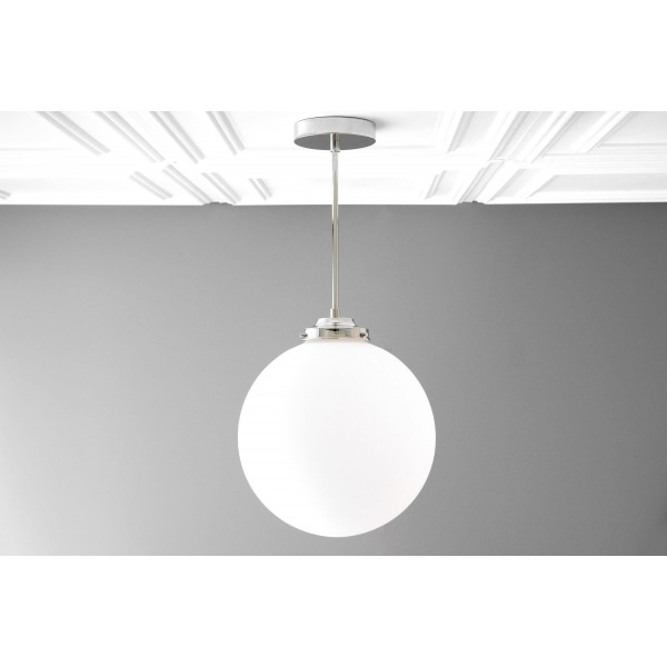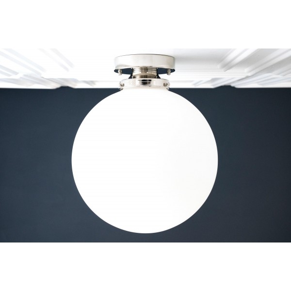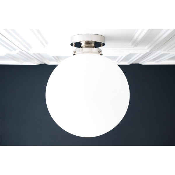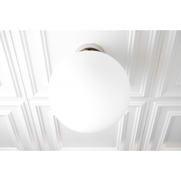 Deze bolvormige armatuur van mat glas is een moderne interpretatie van art-decoverlichting en is ontworpen in een veelzijdig formaat van 30 cm. Verkrijgbaar als plafondlamp of hanglamp, de zachte afwerking voegt warmte en verfijning toe aan interieurs en past gemakkelijk in zowel moderne als klassieke ruimtes.