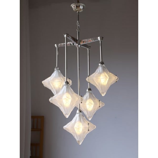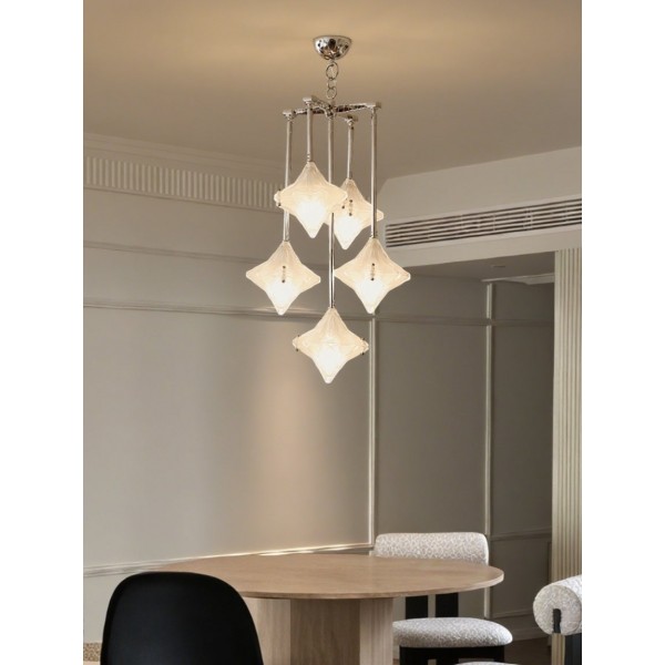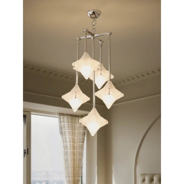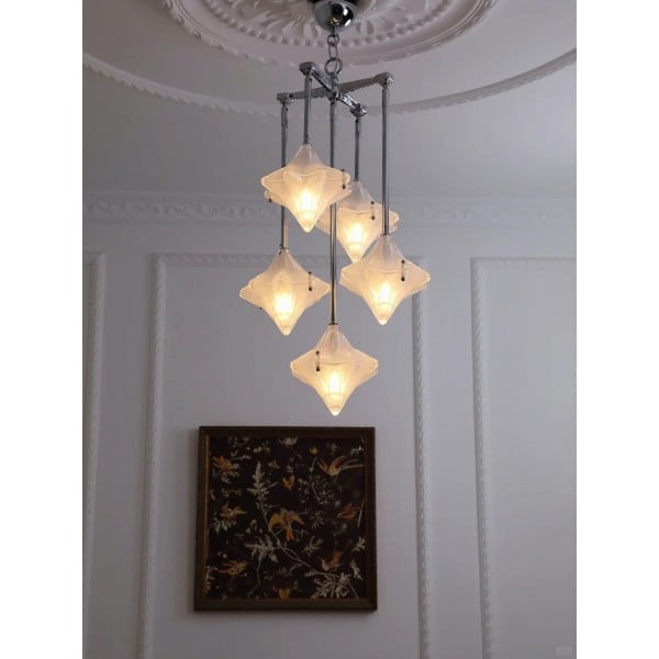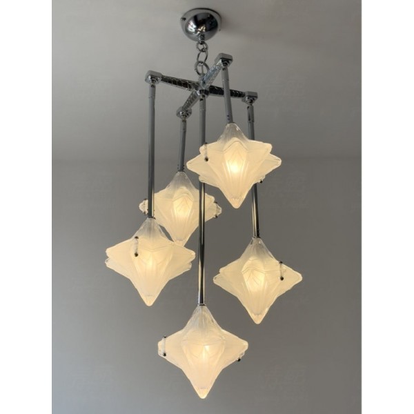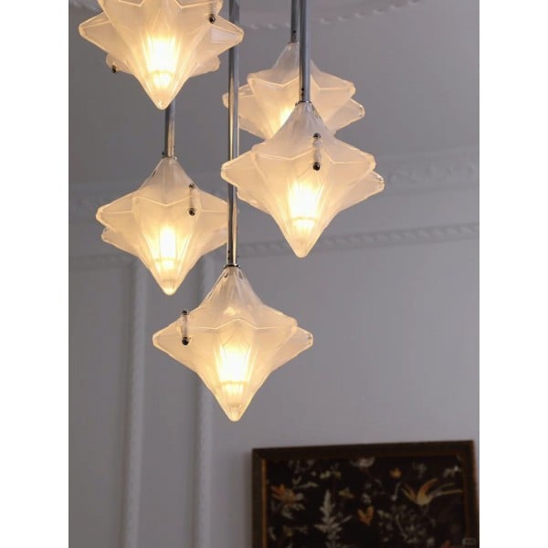 Art Deco Astris Star Kroonluchter – Decoratief armatuur van gematteerd glas voor eetkamer KL1545