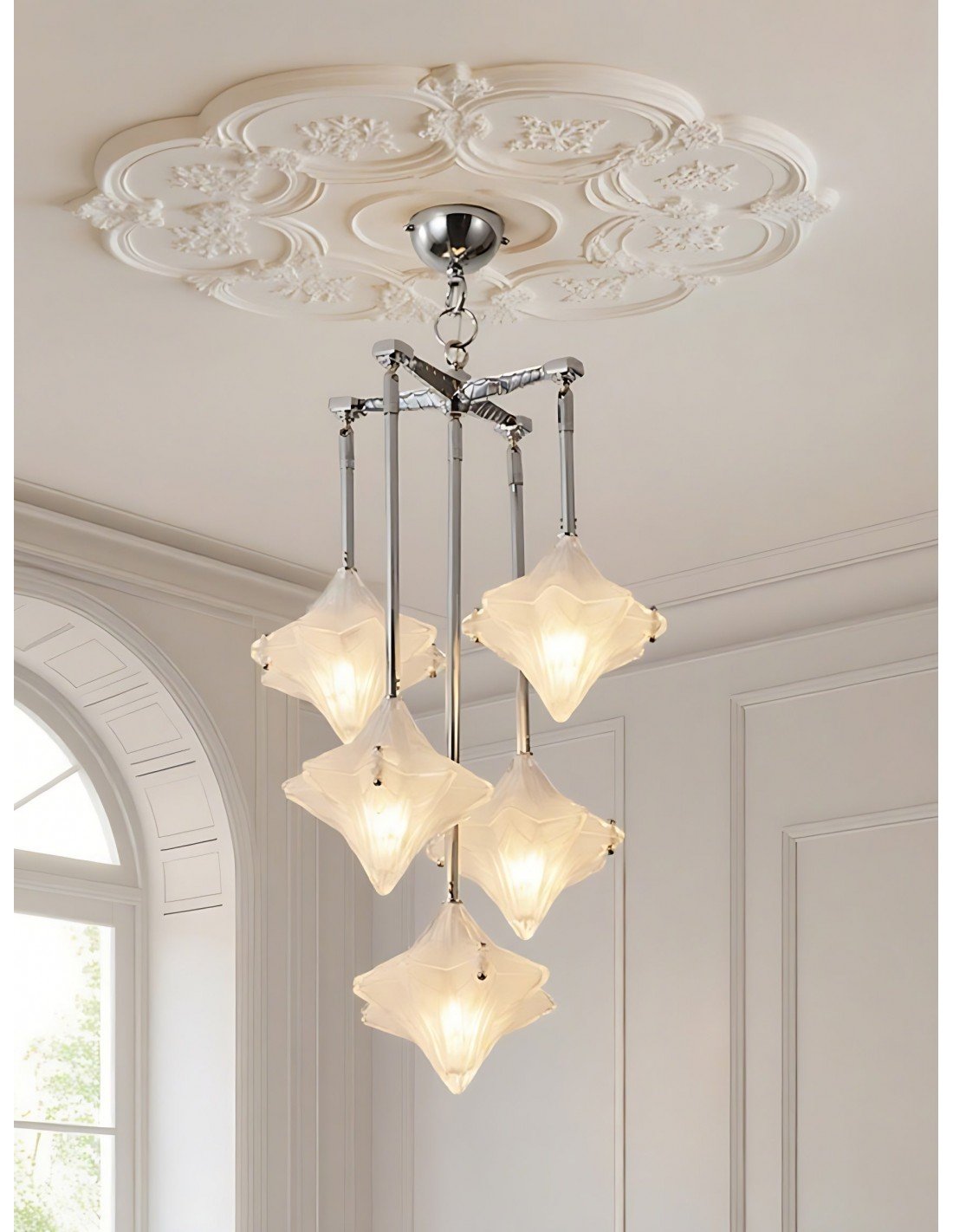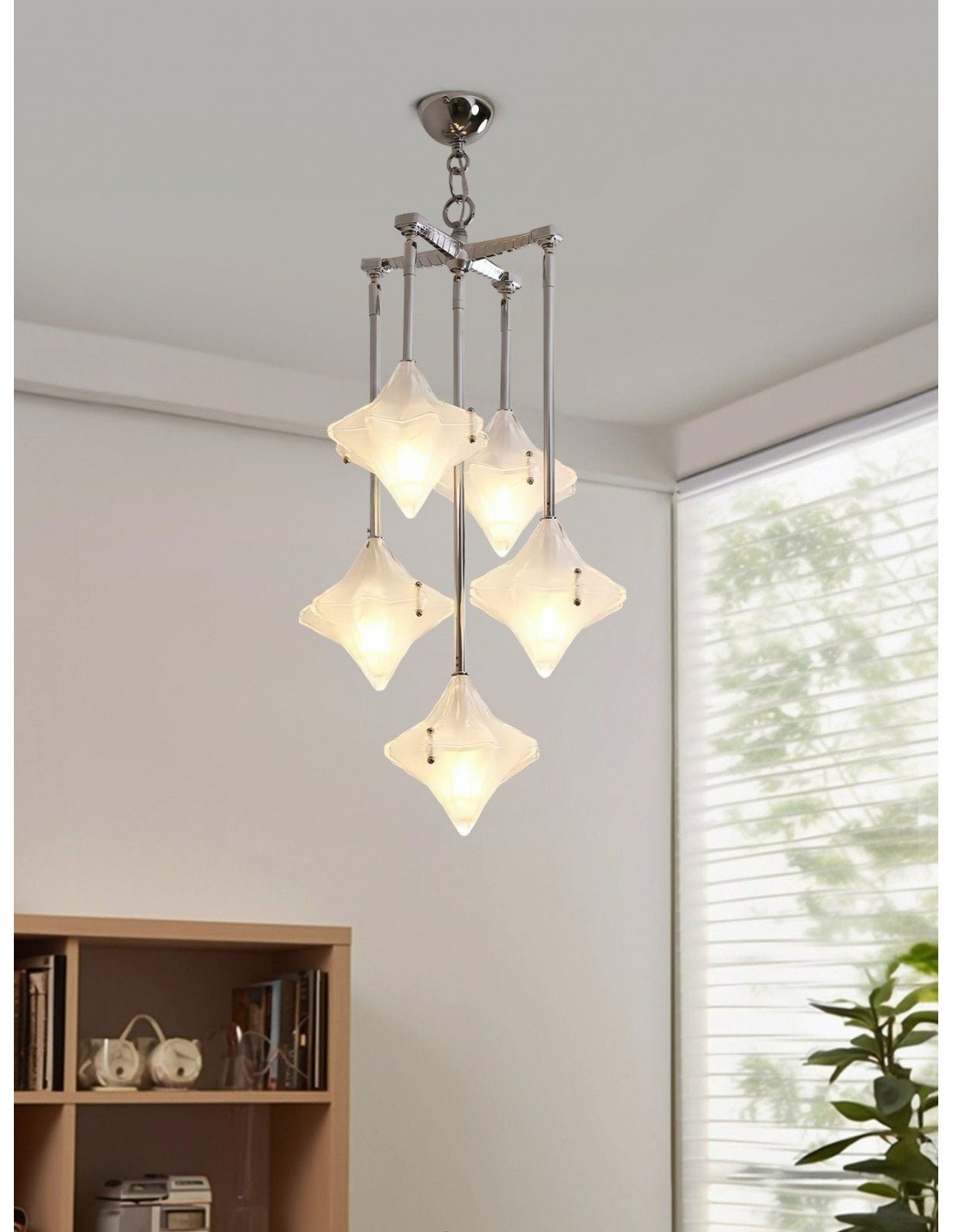Art Deco Astris Star Kroonluchter – Decoratief armatuur van gematteerd glas voor eetkamer KL1545