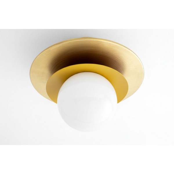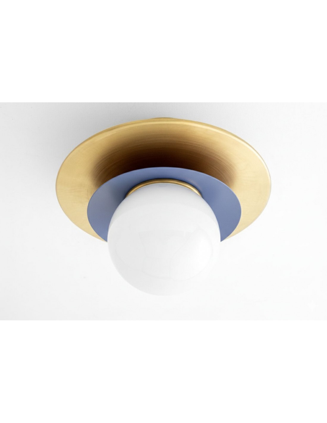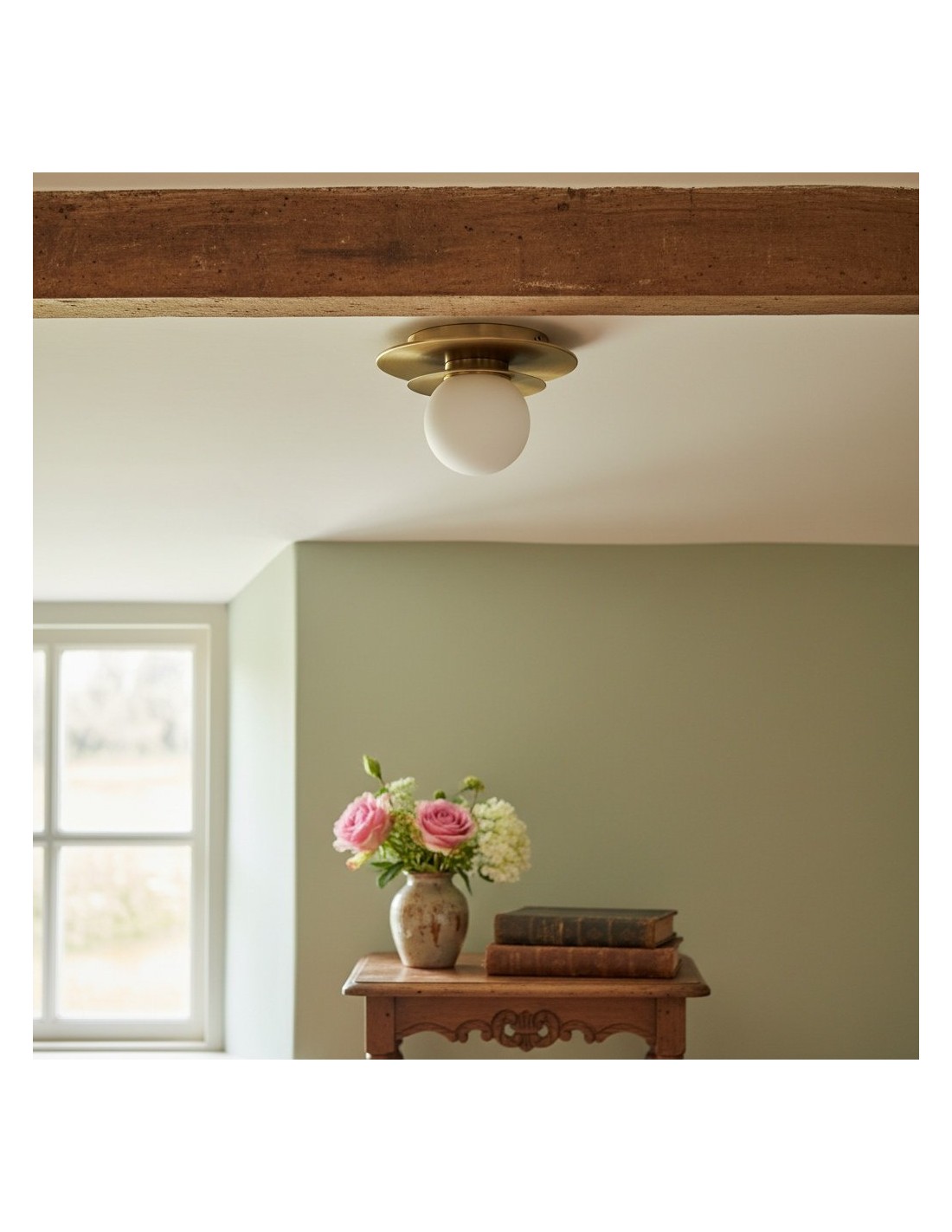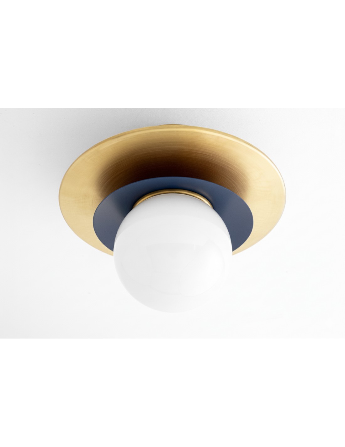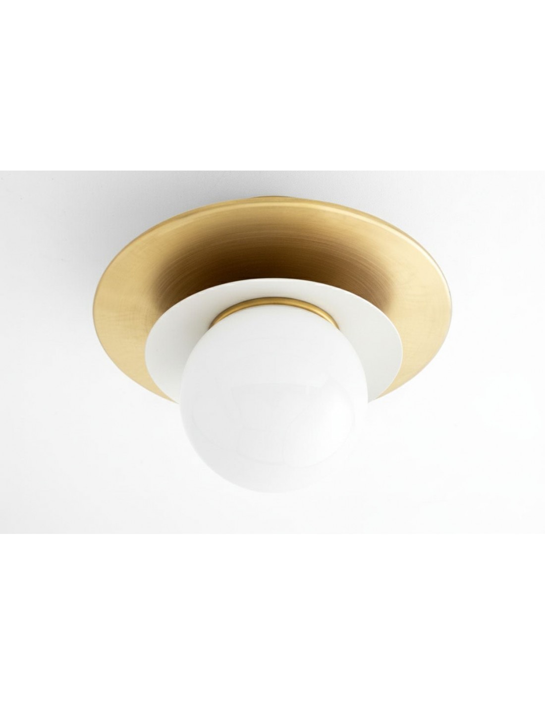 Verfraai uw ruimte met deze moderne plafondlamp van messing. Met zijn strakke design met een messing afwerking en subtiele accentring voegt hij een vleugje elegantie toe aan elke kamer. Perfect om de sfeer in uw huis te verbeteren met een mix van eigentijdse stijl en tijdloze charme.