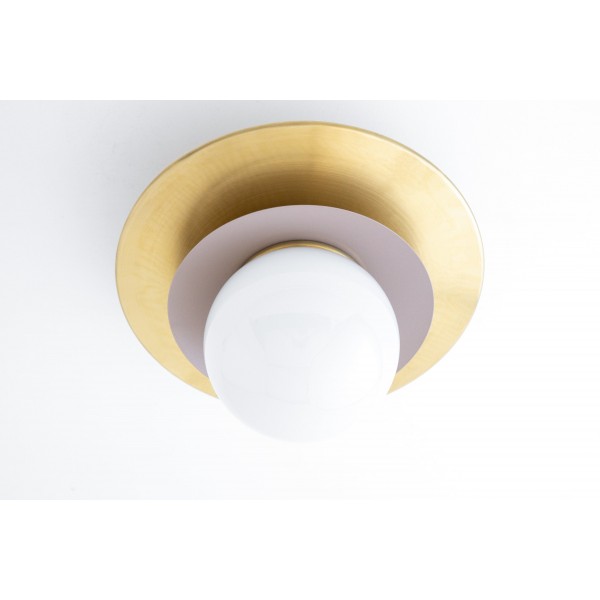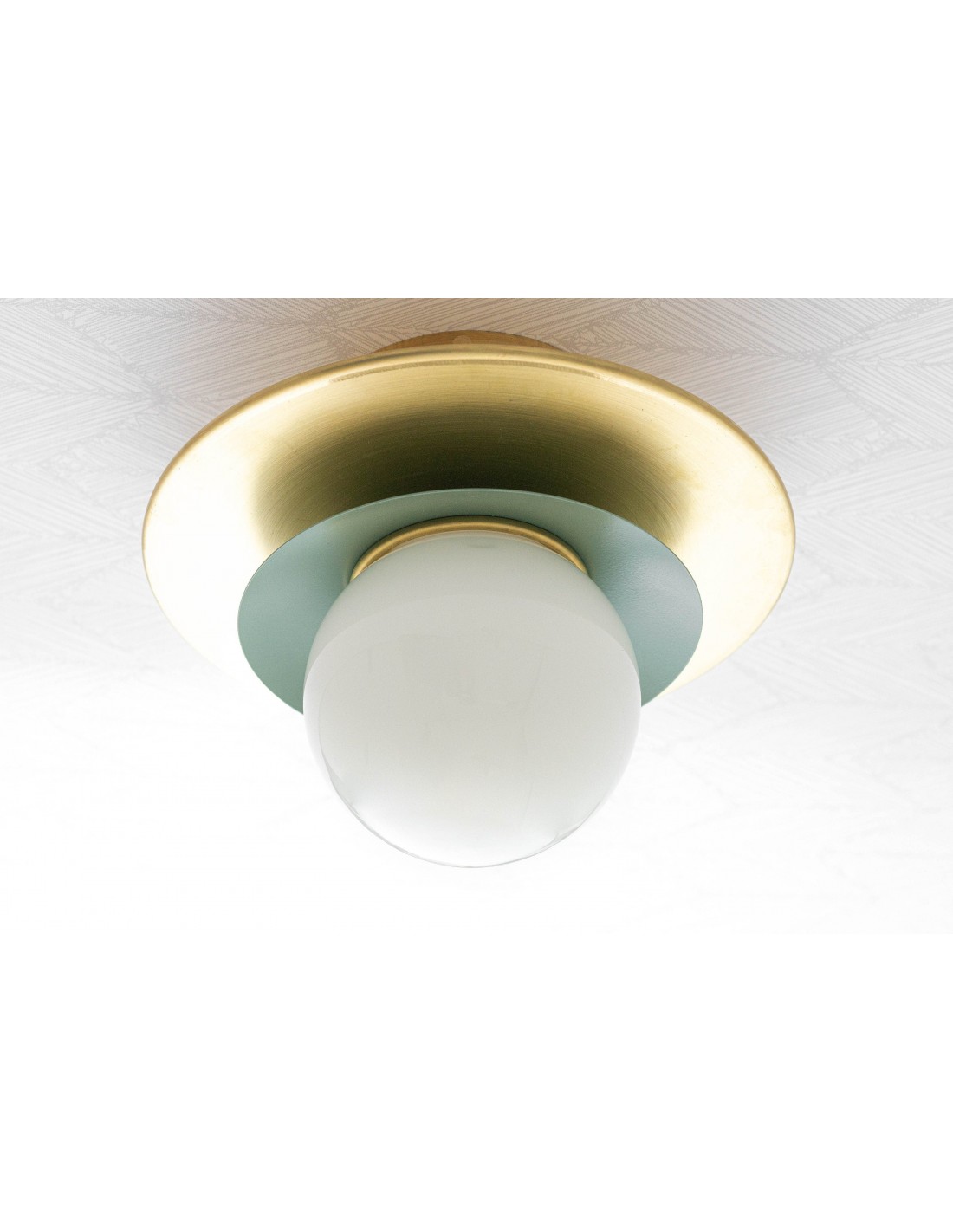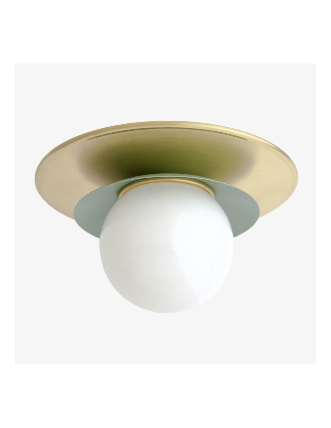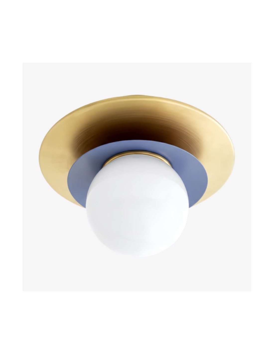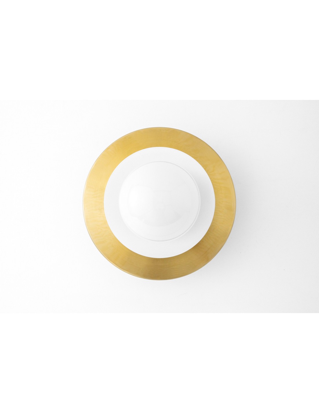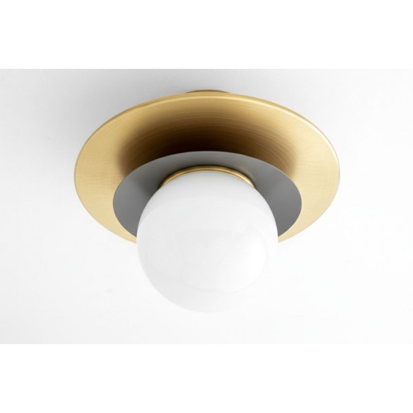 Verfraai uw ruimte met deze moderne plafondlamp van messing. Met zijn strakke design met een messing afwerking en subtiele accentring voegt hij een vleugje elegantie toe aan elke kamer. Perfect om de sfeer in uw huis te verbeteren met een mix van eigentijdse stijl en tijdloze charme.