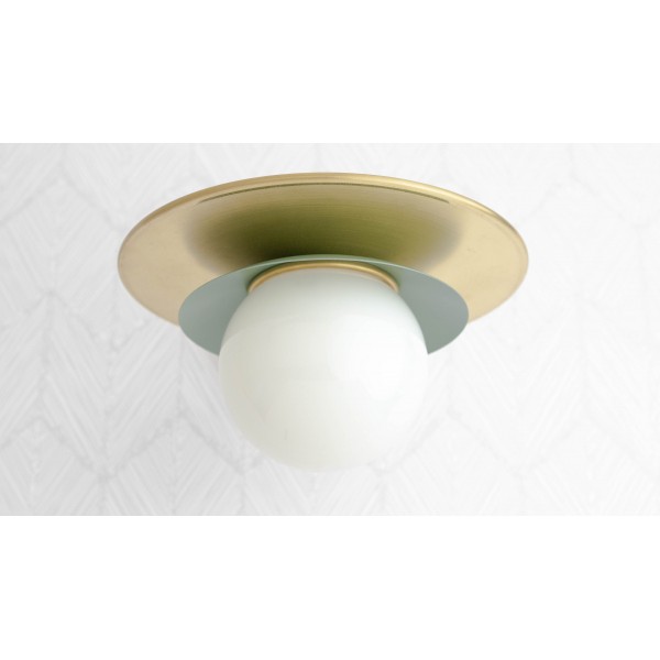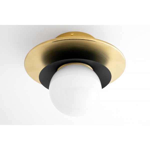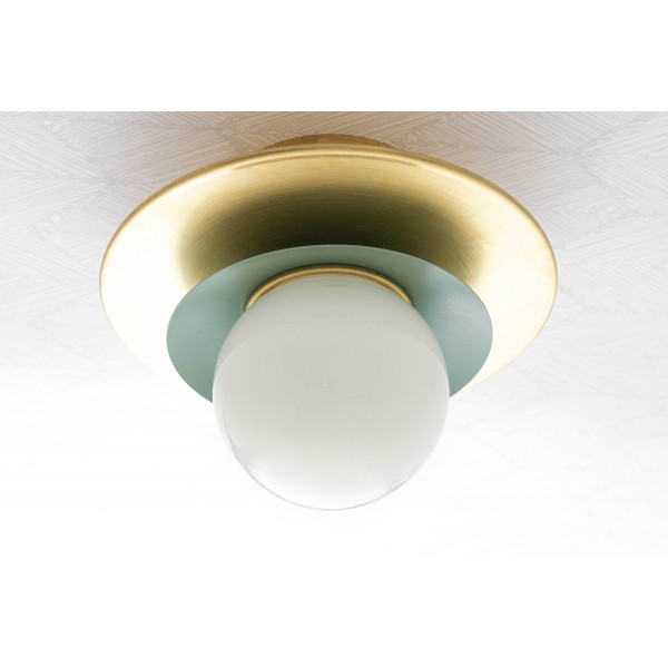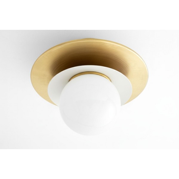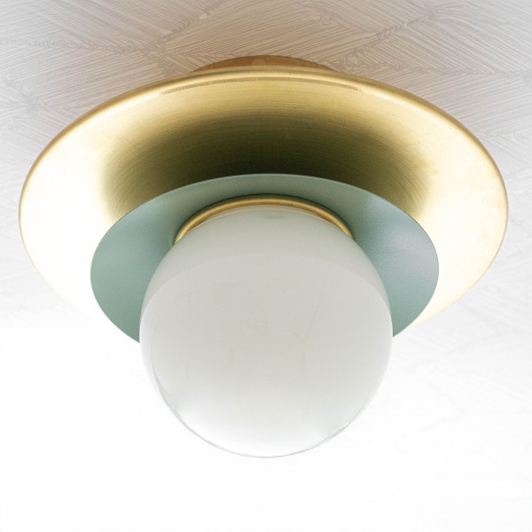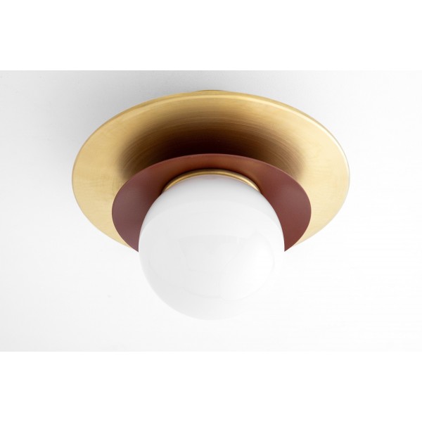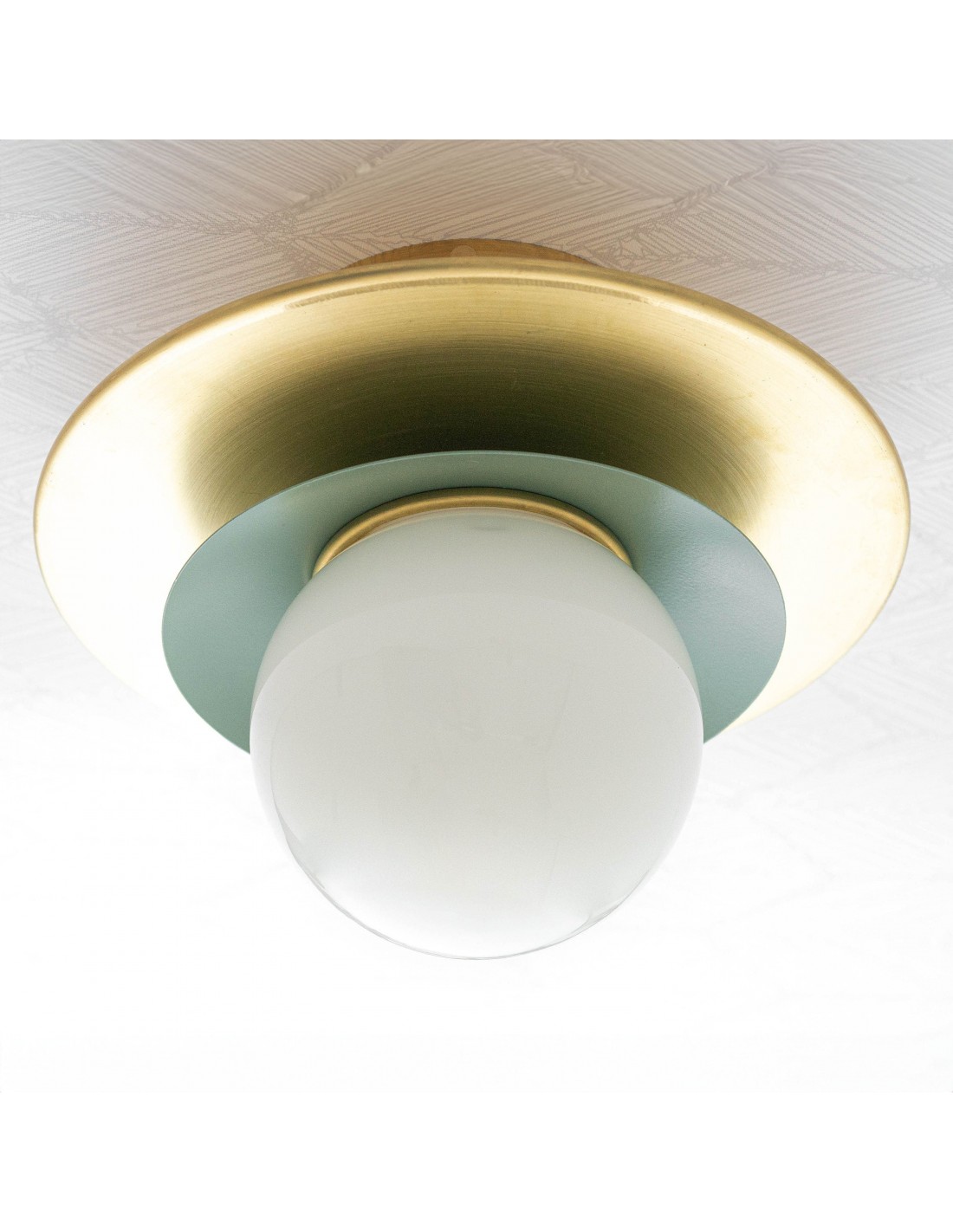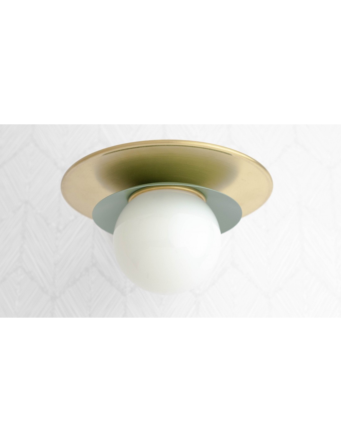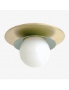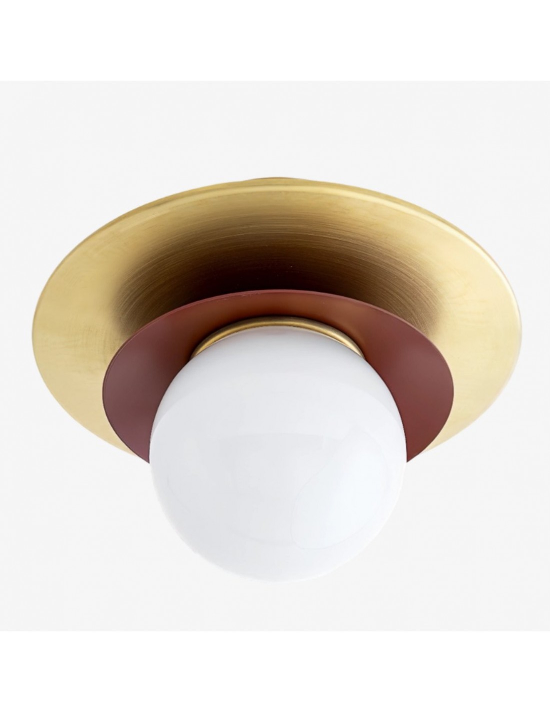 Verfraai uw ruimte met deze moderne plafondlamp van messing. Met zijn strakke design met een messing afwerking en subtiele accentring voegt hij een vleugje elegantie toe aan elke kamer. Perfect om de sfeer in uw huis te verbeteren met een mix van eigentijdse stijl en tijdloze charme.