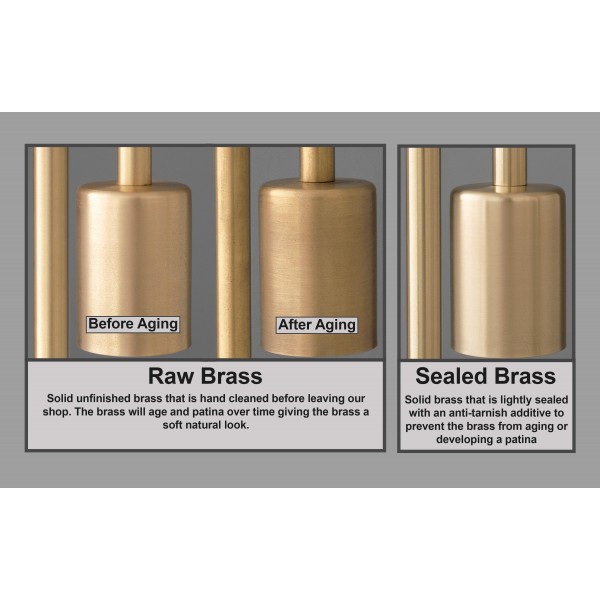 - Onze Raw Brass-afwerking bestaat uit massief, onafgewerkt messing dat met de hand wordt gereinigd voordat het onze werkplaats verlaat. Het messing zal na verloop van tijd verouderen en patineren, waardoor de afwerking een zachte, natuurlijke uitstraling krijgt. Draag handschoenen tijdens het installeren van alle armaturen. Het aanraken van ruw messing met blote handen zal het messing aantasten.