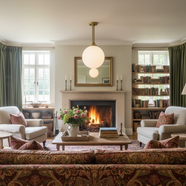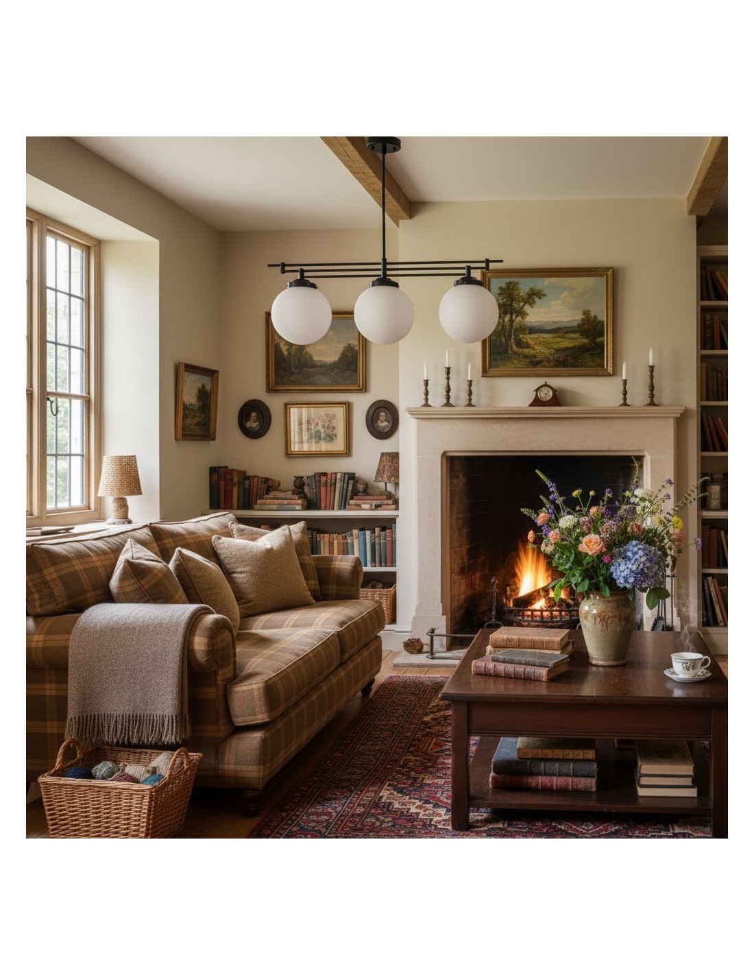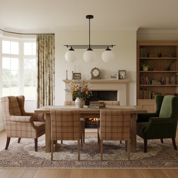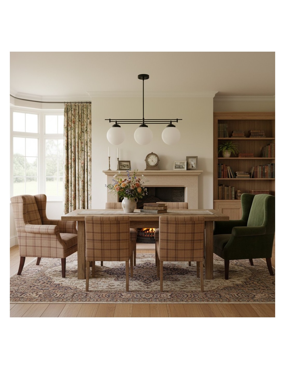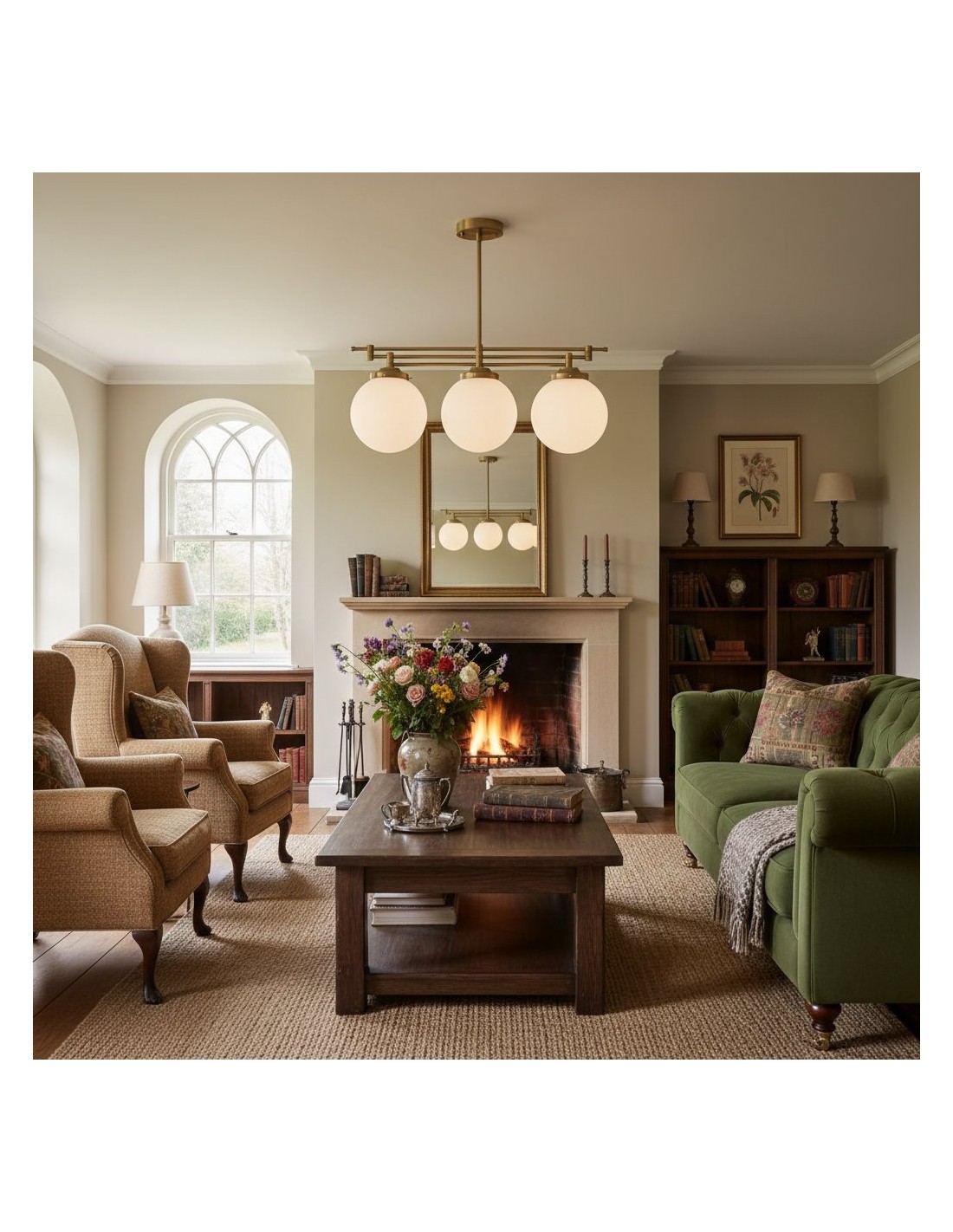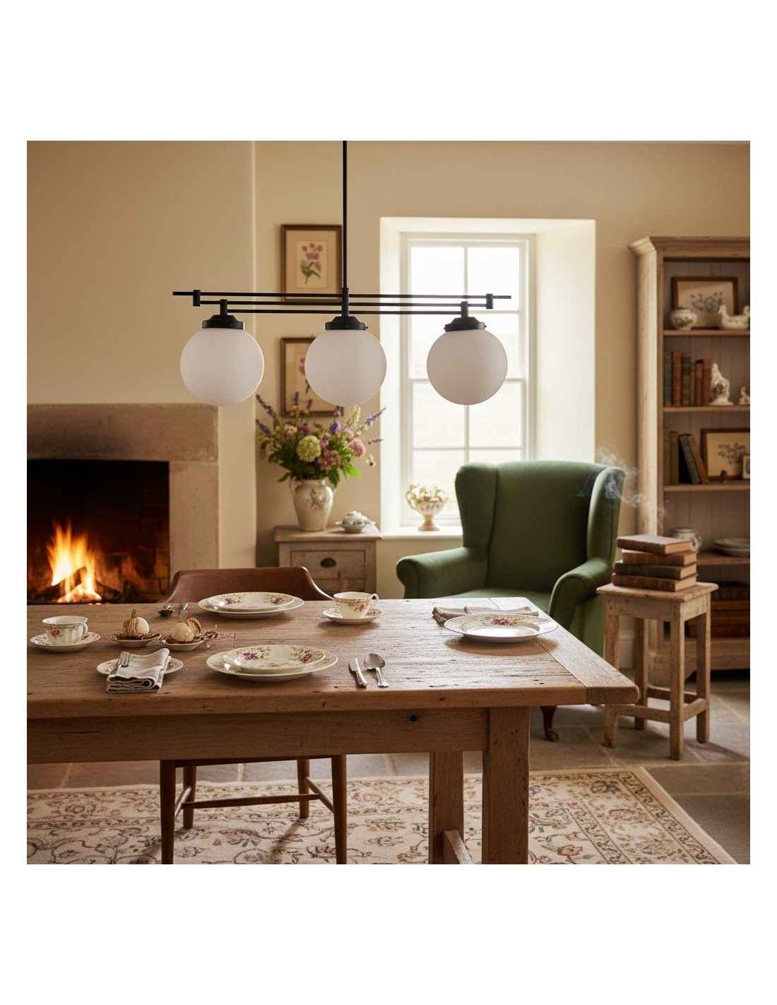 Een verfijnde hanglamp met een grote bol van mat glas en decoratieve messing staven, geïnspireerd op art-decostijl. De bol van 30 cm verspreidt het licht zacht en voegt warmte en elegantie toe. Ideaal voor keukens, gangen en woonkamers, combineert dit opvallende stuk vintage details met een moderne uitstraling.