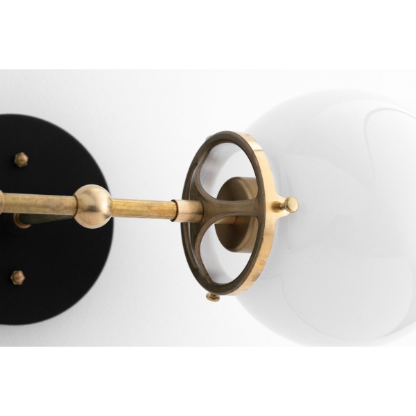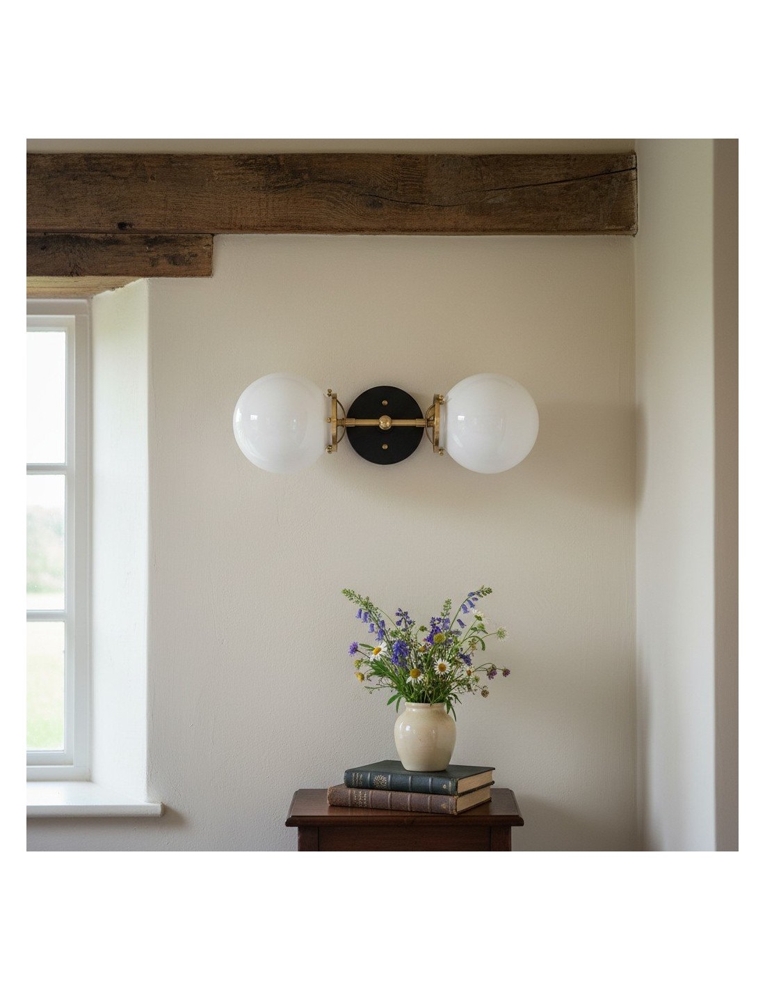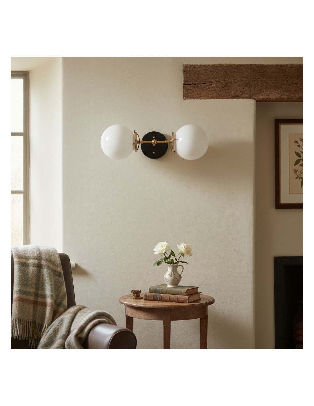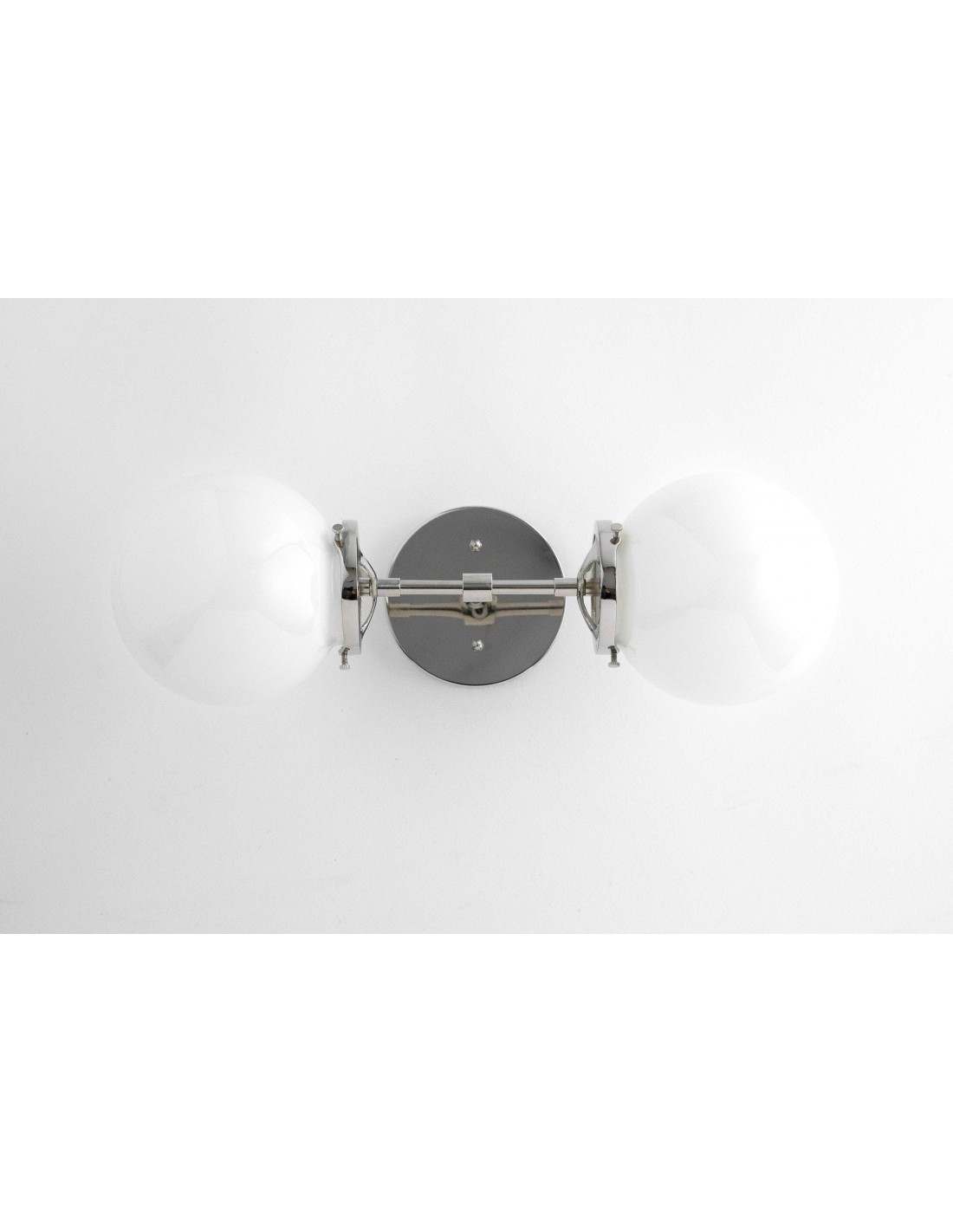 Verfraai uw interieur met deze Mid Century Vanity Light. Ontworpen met strakke lijnen en een opaalglazen bol, biedt hij perfecte verlichting voor functionele taken en sfeer. Een veelzijdig item dat zowel art deco als moderne minimalistische stijlen aanvult.