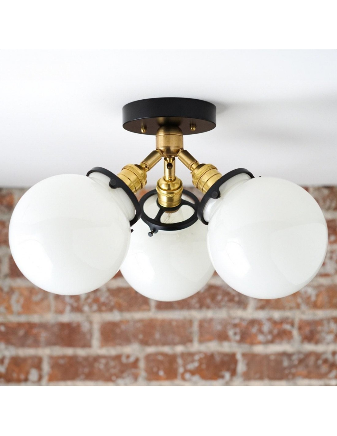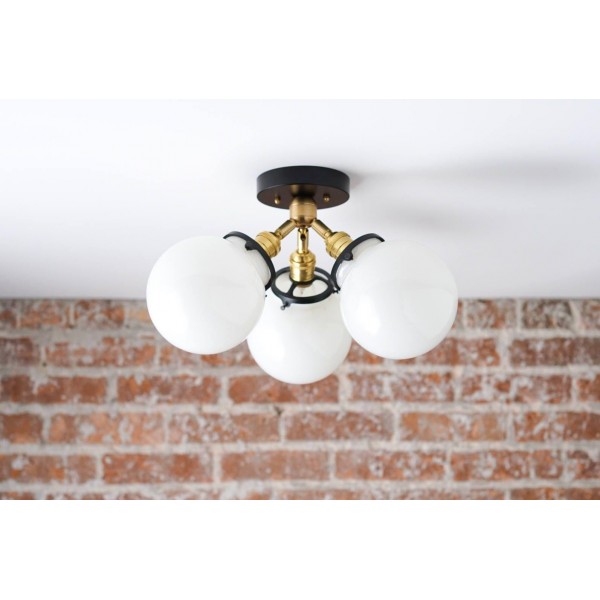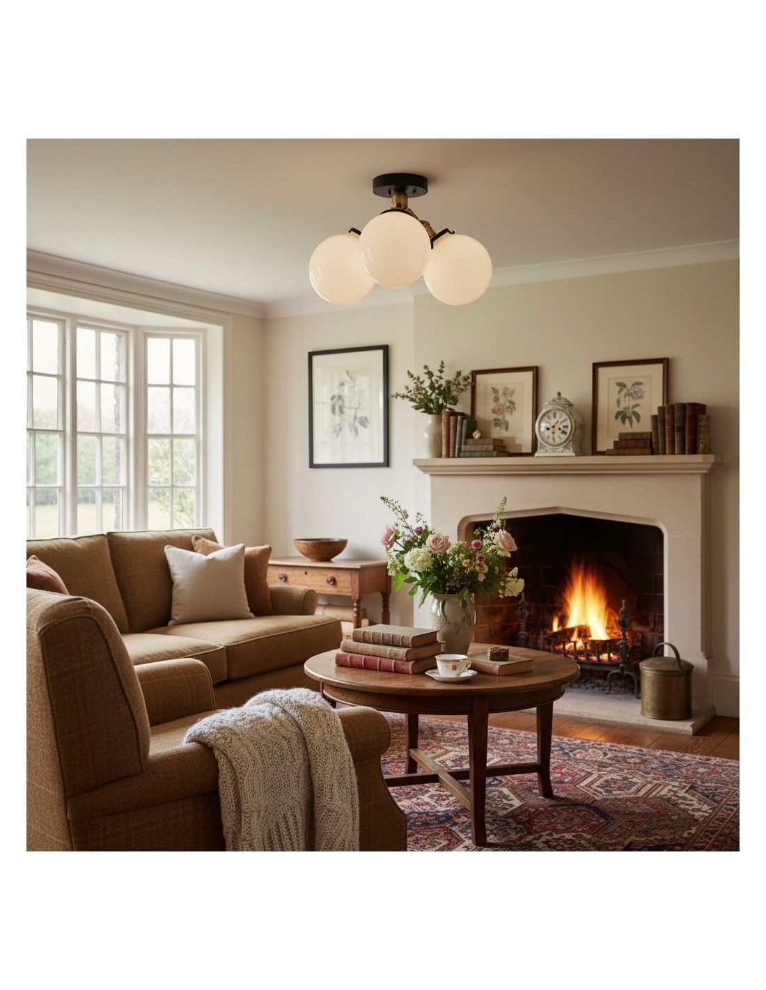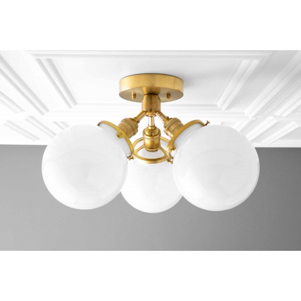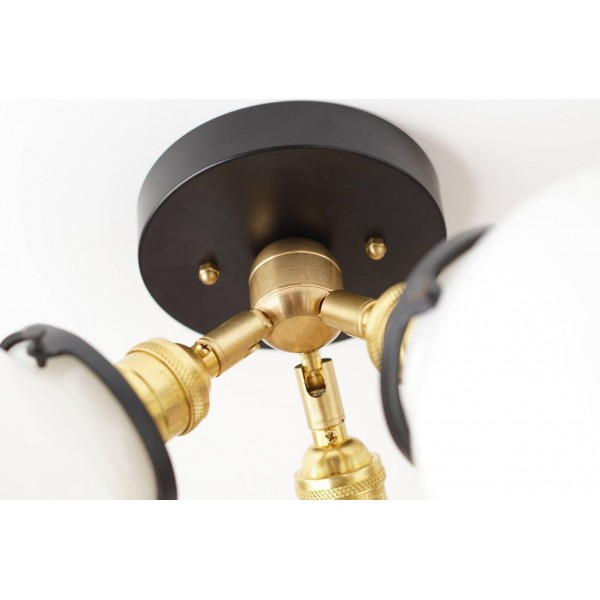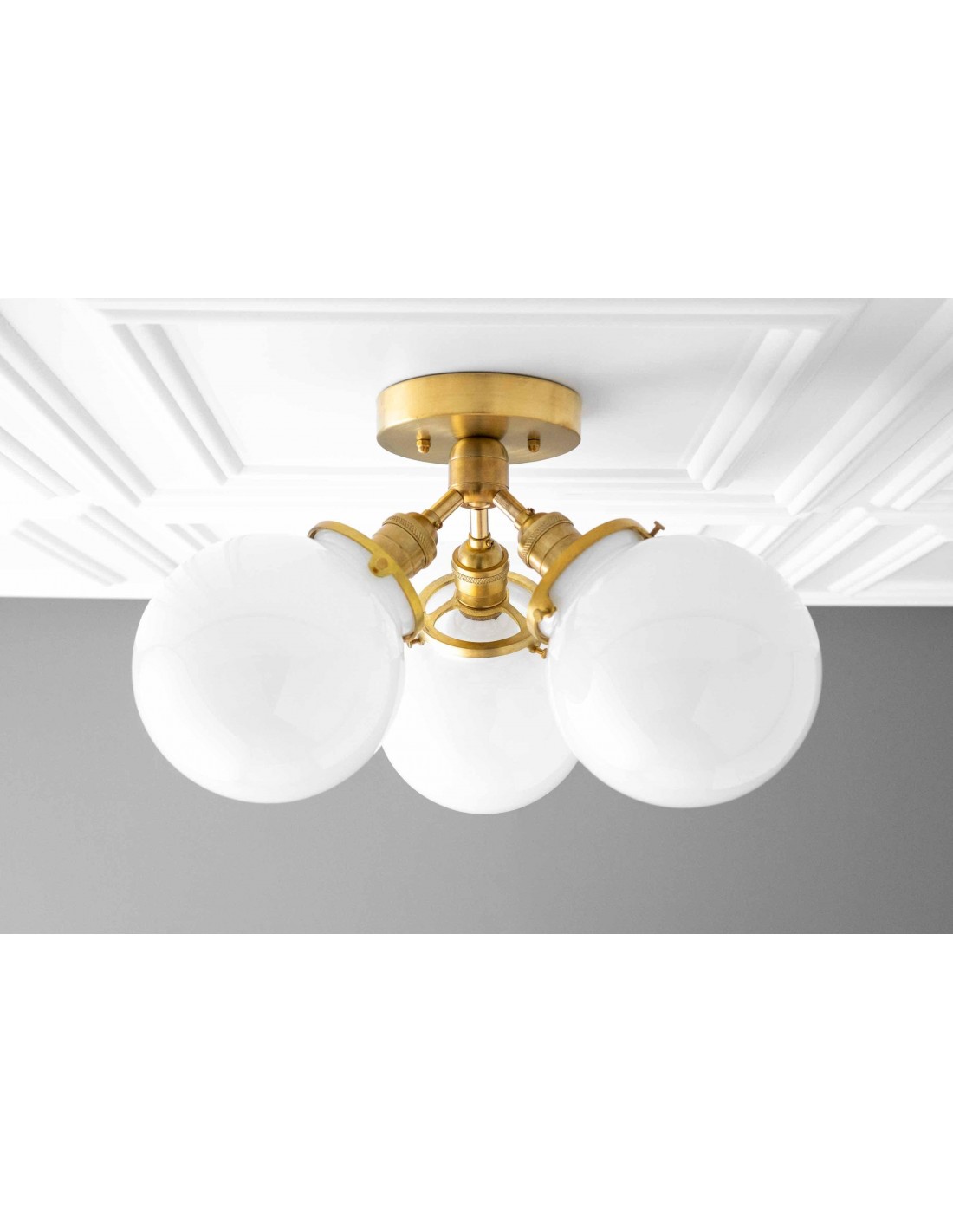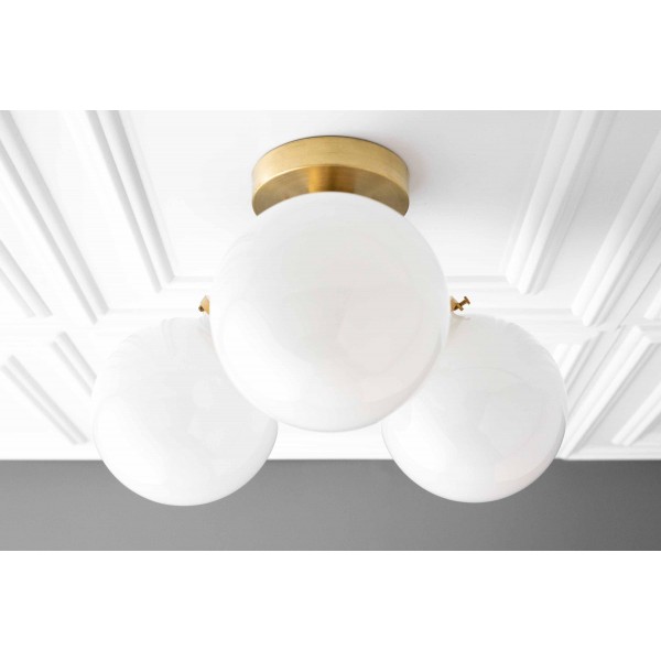 De Glorica glazen bollamp brengt een mid-century moderne charme in uw ruimte. Gemaakt van massief messing met een zachte, natuurlijke patina en gecombineerd met een lichtgevende bolvormige lampenkap, biedt deze semi-flush plafondlamp een warme gloed en een tijdloos design. Perfect voor eetkamers, woonkamers en entrees.