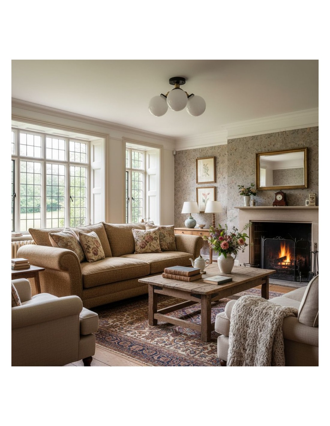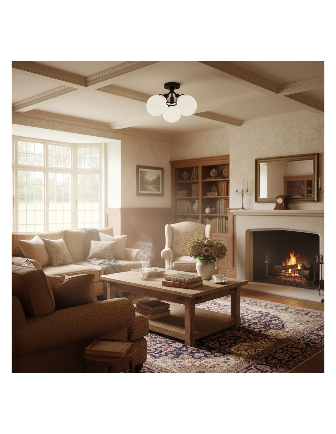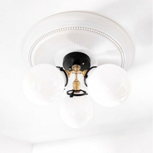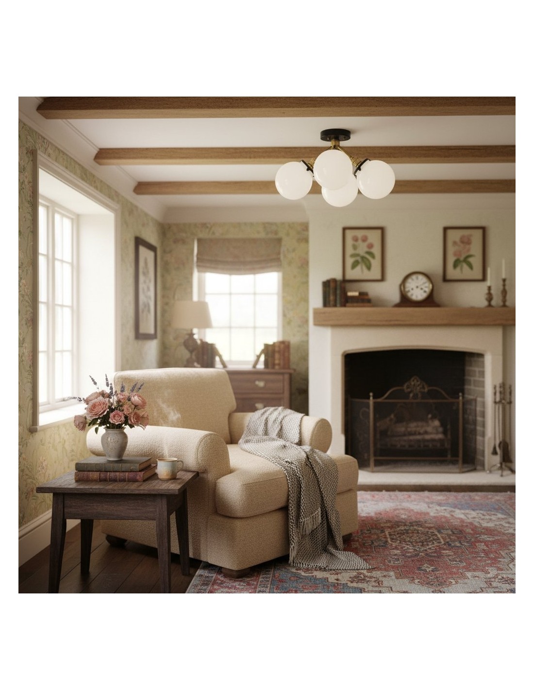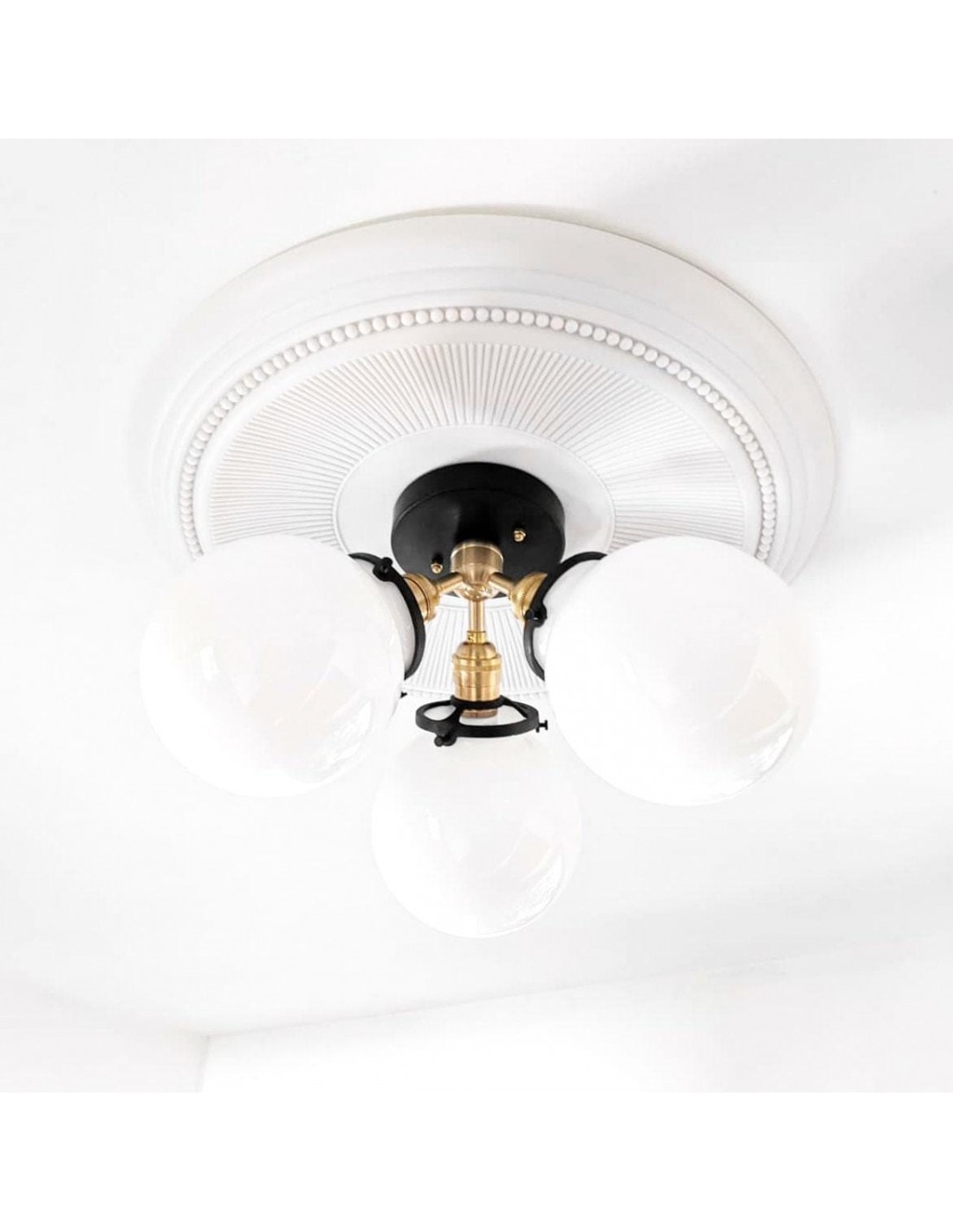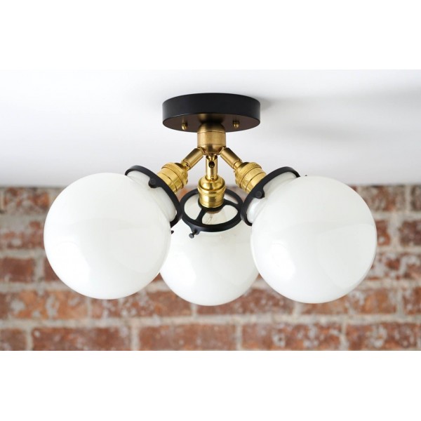 De Glorica glazen bollamp brengt een mid-century moderne charme in uw ruimte. Gemaakt van massief messing met een zachte, natuurlijke patina en gecombineerd met een lichtgevende bolvormige lampenkap, biedt deze semi-flush plafondlamp een warme gloed en een tijdloos design. Perfect voor eetkamers, woonkamers en entrees.