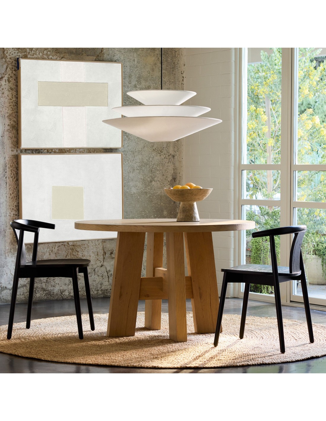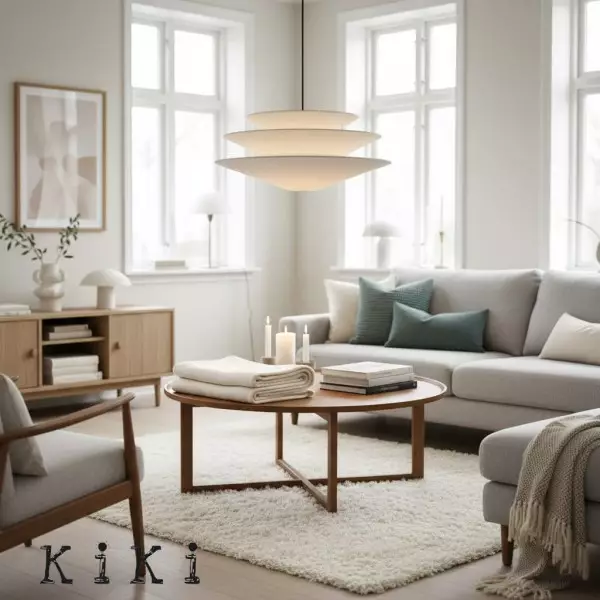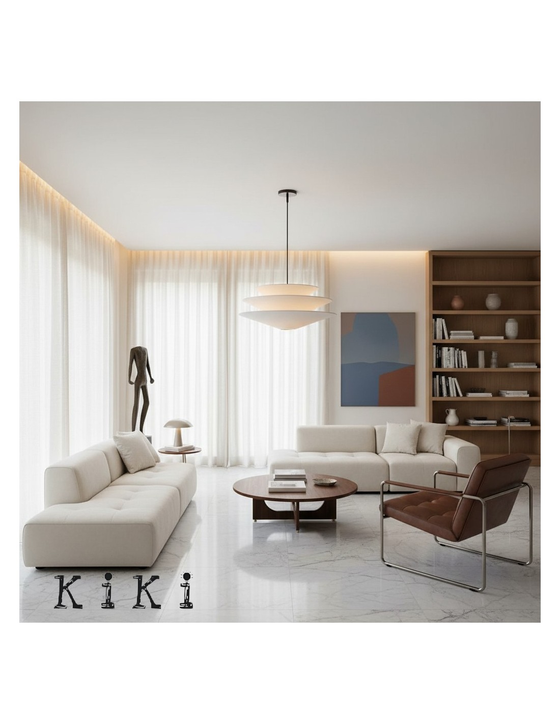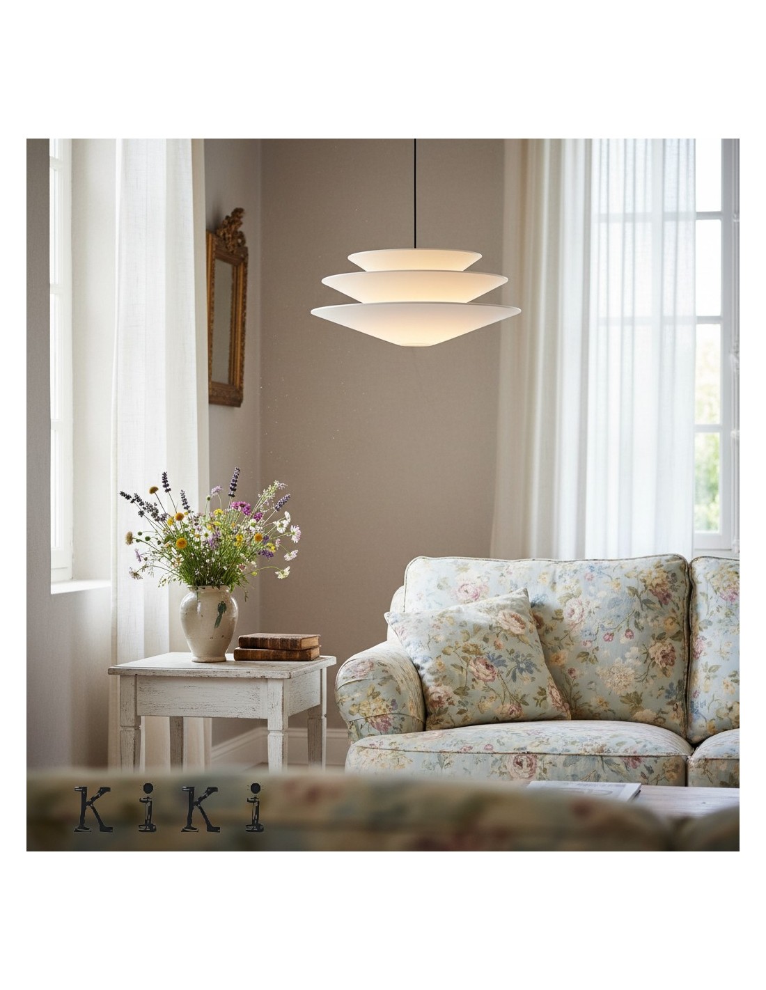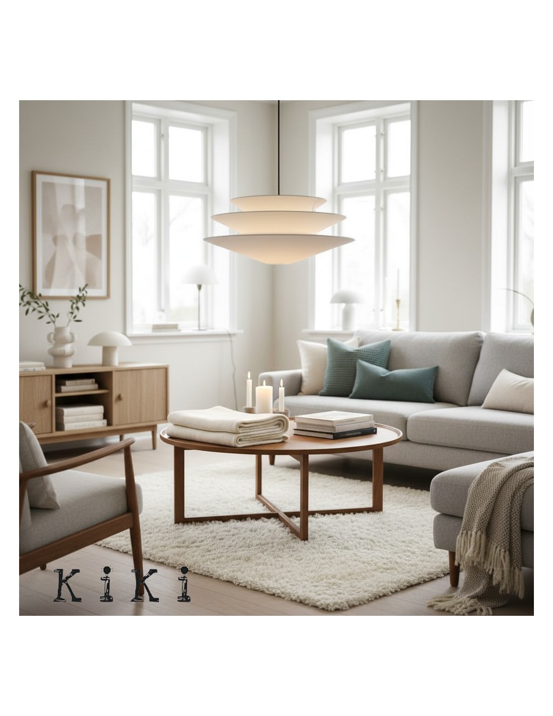 De Solivara Tiered hanglamp combineert verfijnde linnenlook kappen met een verfijnde gelaagdheid, waardoor een sculpturale, licht gestructureerde hanglamp ontstaat die zowel visuele elegantie als een sfeervolle zachtheid uitstraalt. Het gelaagde stoffen ontwerp verspreidt het licht subtiel en vult ruimtes met een warme, uitnodigende gloed zonder schittering.
