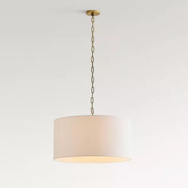 De Dumora Drum hanglamp combineert zachte stoffen texturen met een strakke architectonische vorm. Ontworpen met een cilindrische lampenkap en een strak ijzeren frame, verspreidt hij een diffuus, warm licht, ideaal voor slaapkamers, eetkamers of entrees. De minimalistische structuur past perfect bij moderne, mid-century en transitionele interieurs.