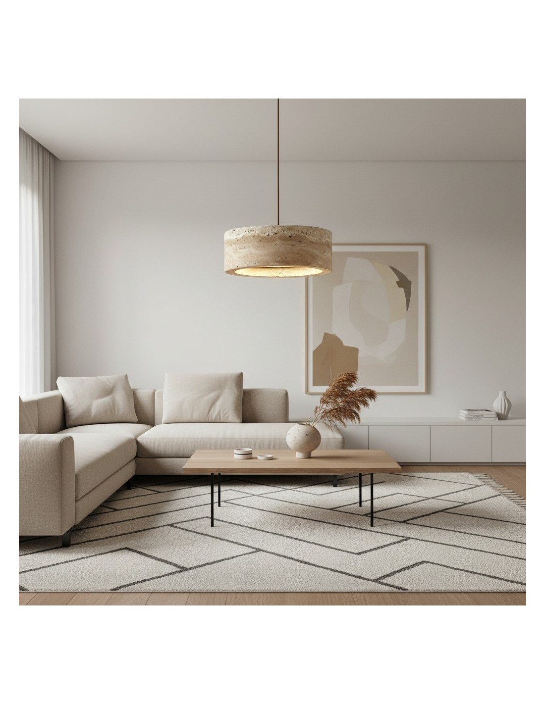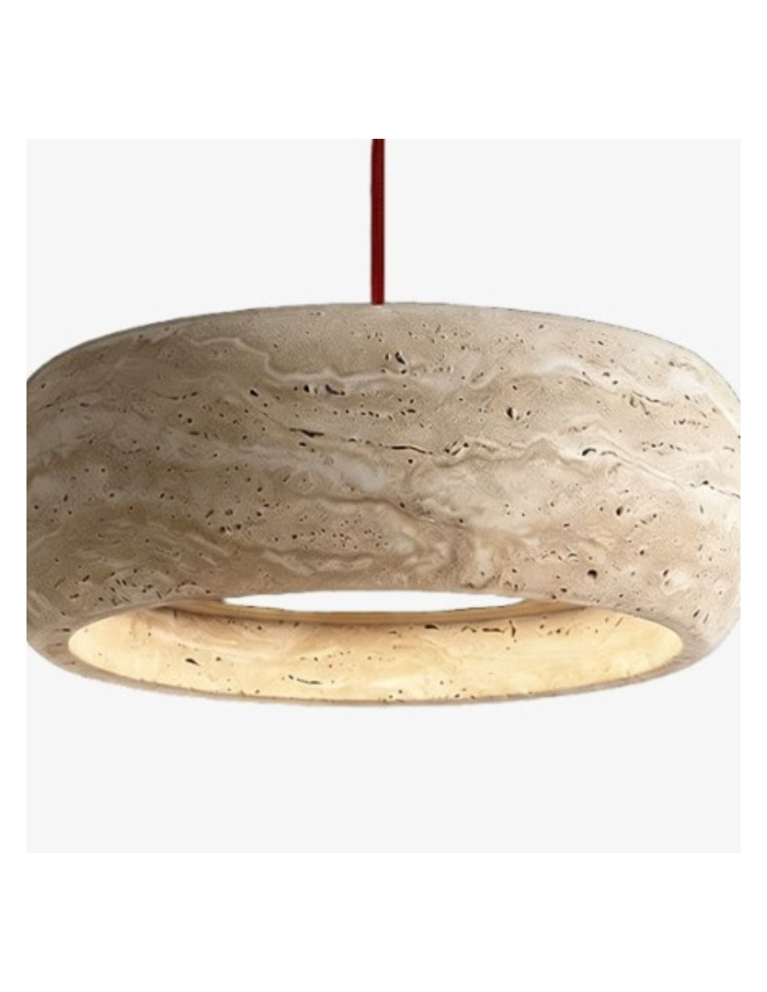 De Kairis hanglamp is vervaardigd uit natuurlijk travertijnsteen en combineert de organische Wabi Sabi-esthetiek met vintage elegantie. De zachte, neutrale tinten en het tijdloze ontwerp maken de lamp ideaal voor eetkamers, woonkamers, slaapkamers en hallen, en voegen rust en verfijning toe aan elke ruimte.