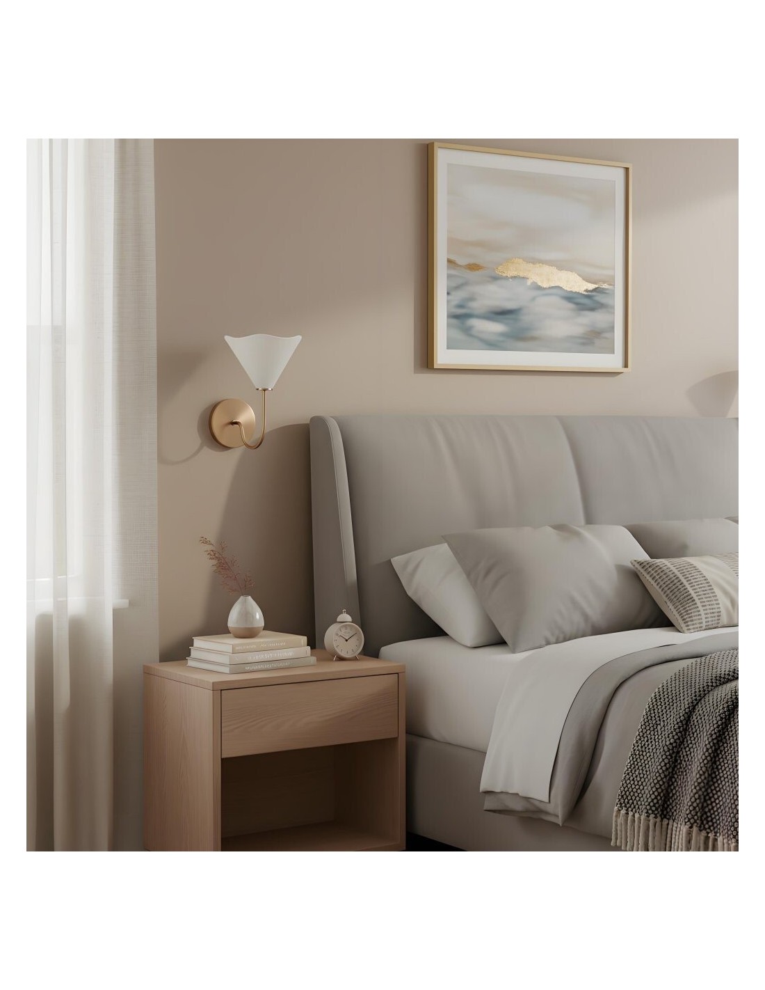 De elegante gebogen arm en de zachte linnen kap van de wandlamp creëren een sculpturaal wanddecor en een bloemachtig silhouet. De lamp kan de stijl van een knusse hoek, nachtkastje of badkamer verhogen en combineert klassieke elegantie met modern minimalisme.