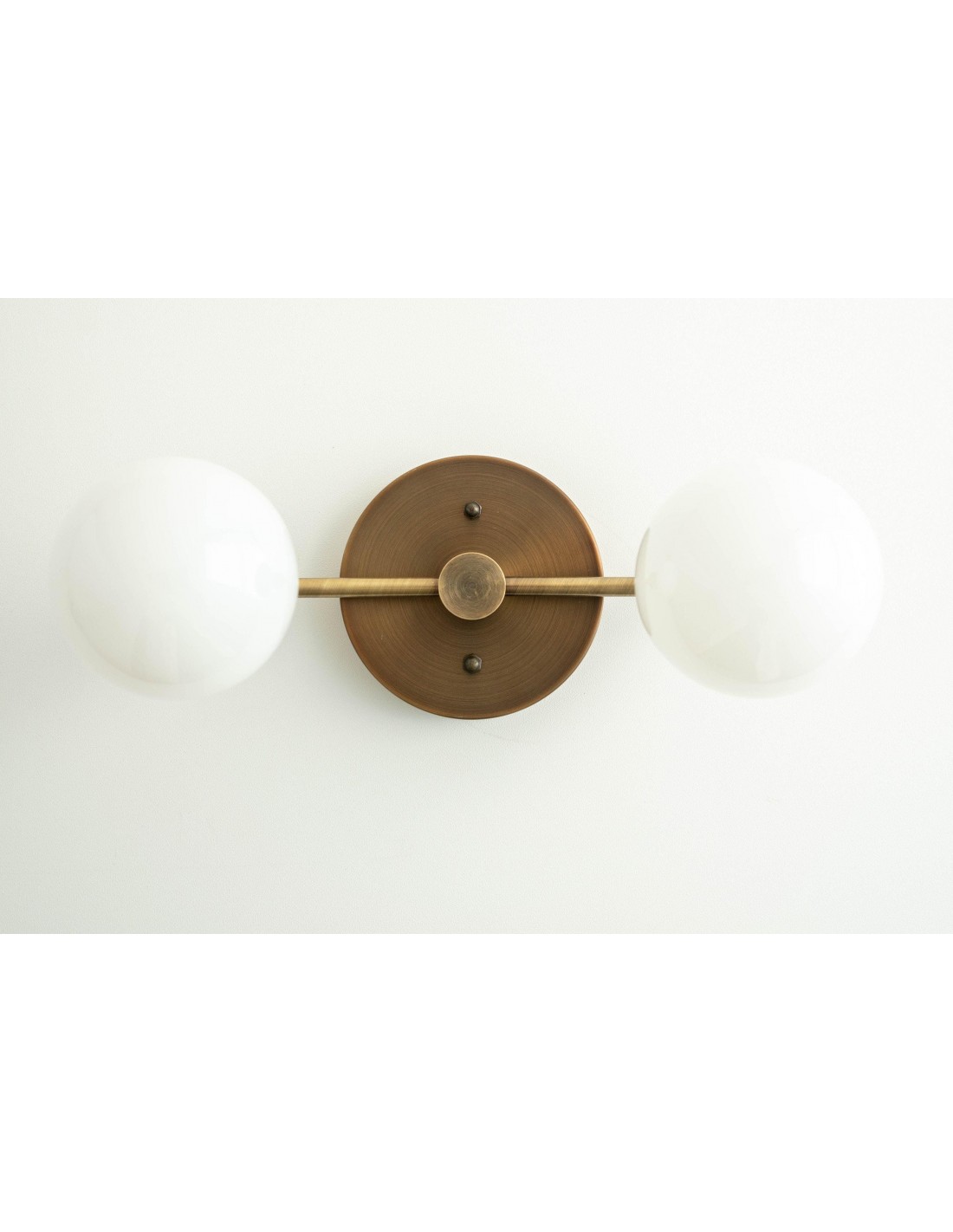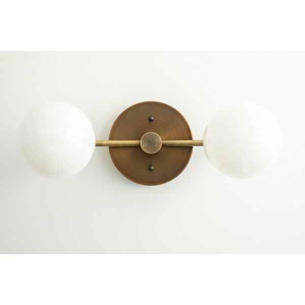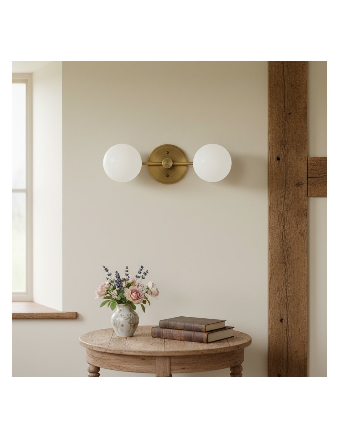De Glorica Glass badkamerlamp combineert de charme van het midden van de vorige eeuw met moderne eenvoud. Ontworpen voor veelzijdig gebruik, kan hij horizontaal boven een spiegel of verticaal als wandlamp worden gemonteerd. Vervaardigd met duurzame afwerkingen zoals ruw messing, verzegeld messing, zwart en antiek messing, tilt hij elke ruimte naar een hoger niveau.