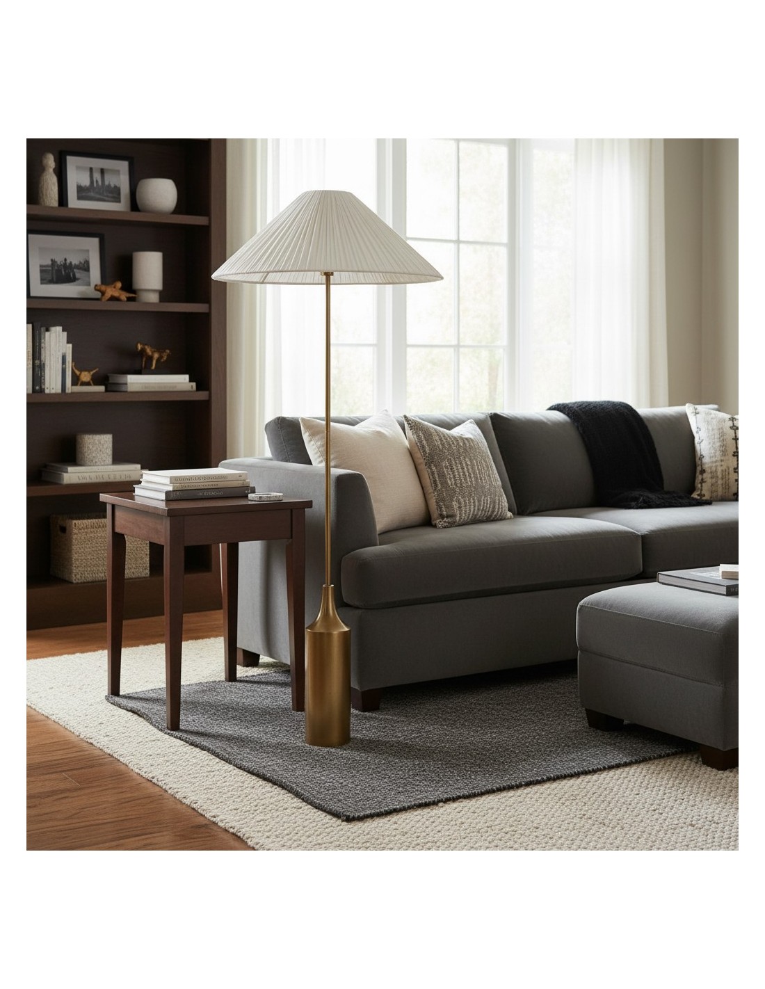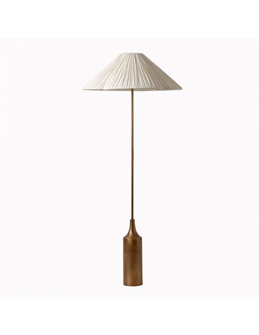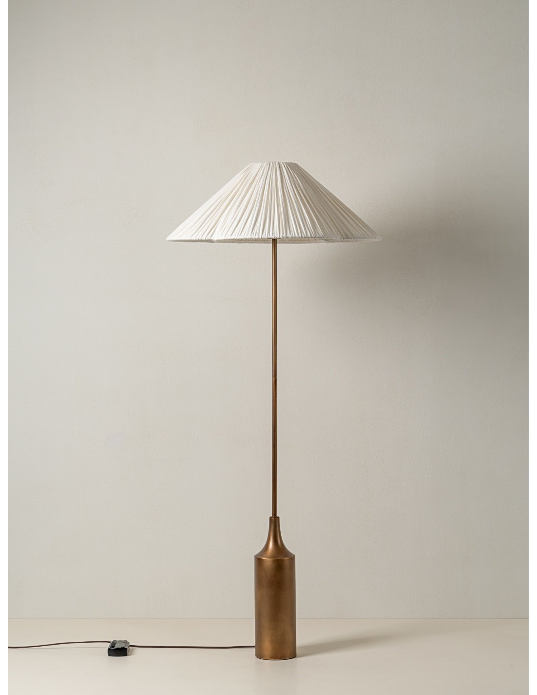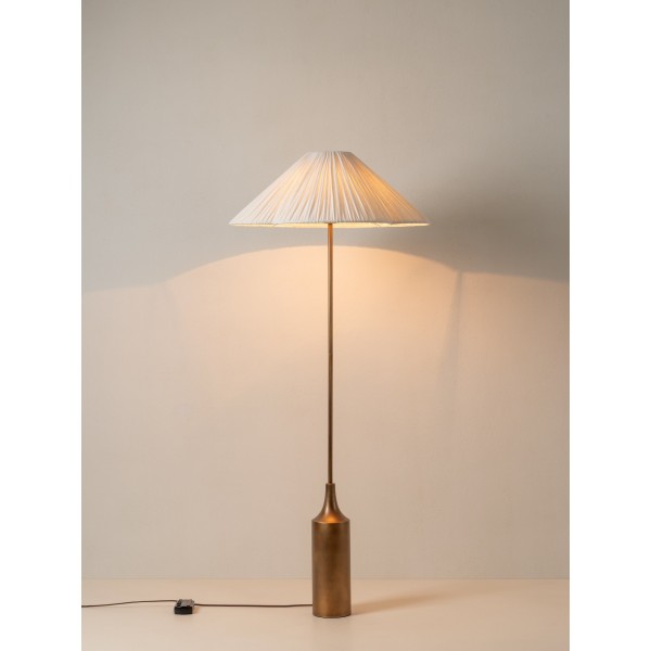 Lindi - Vloerlamp van verouderd messing en linnen met geschulpte rand KL1535