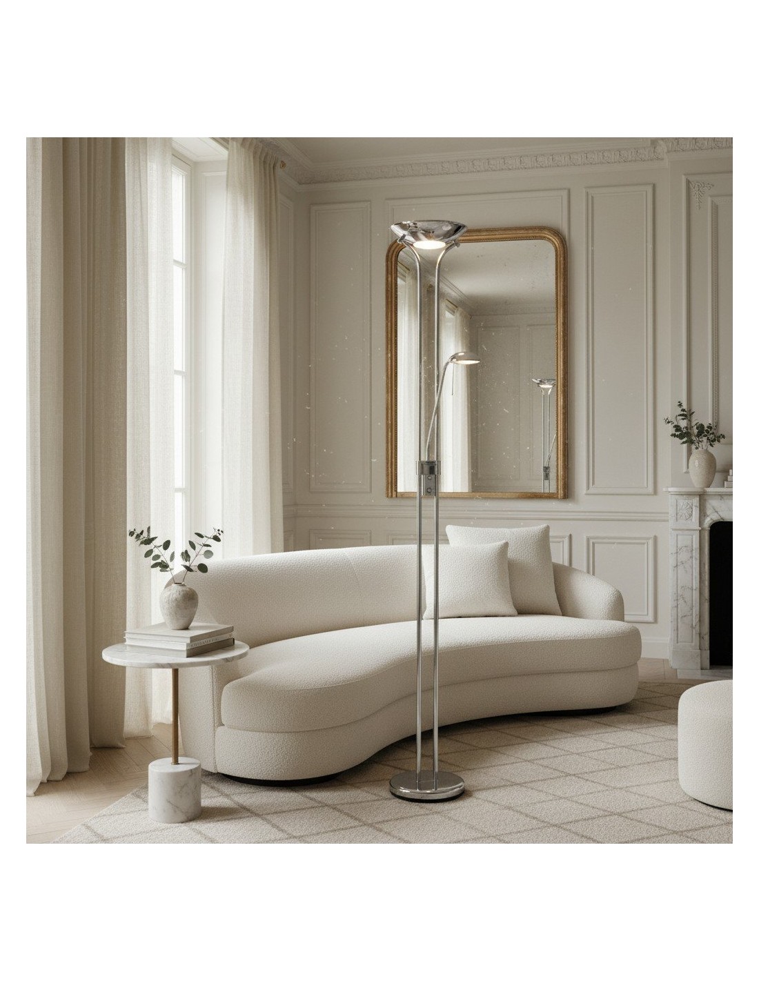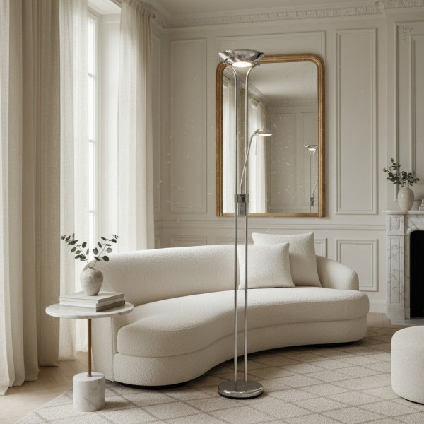 Deze staande lamp combineert een elegant metalen frame met een gladde opalen glazen kap voor een warme, verfijnde gloed. De verstelbare arm zorgt voor gericht licht om te lezen of te werken, waardoor de lamp ideaal is voor woonkamers, slaapkamers of thuiskantoren. Verkrijgbaar in verschillende afwerkingen, combineert de lamp decoratieve stijl met dagelijkse functionaliteit en biedt comfortabele, verstelbare verlichting.