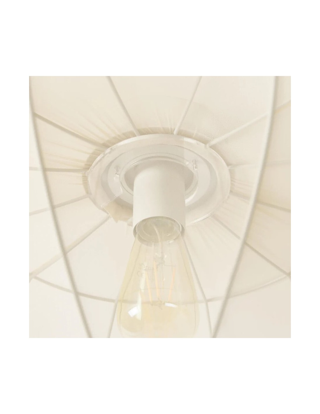 De Lumifil plafondlamp is een luchtige plafondlamp met een zachte, gedrapeerde textielen kap die het licht subtiel verspreidt. De gelaagde netstof met subtiele ruches creëert een ontspannen, boho-moderne uitstraling. Hij is perfect geschikt voor woonkamers, slaapkamers, hallen en gezellige eethoekjes.