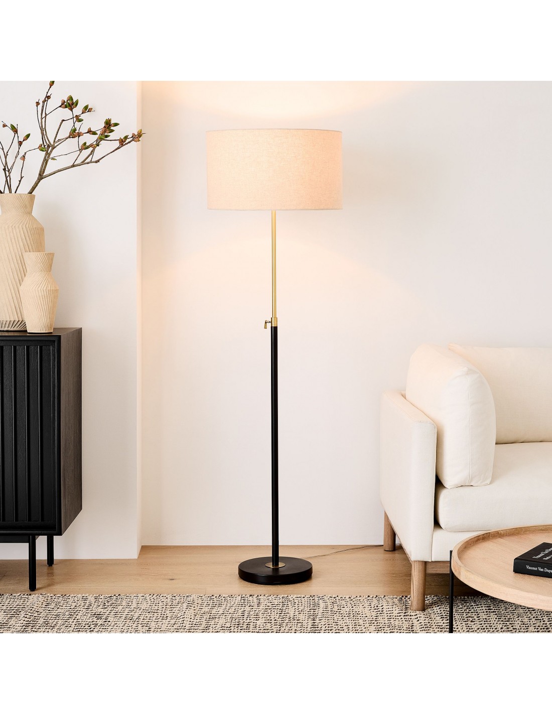 Deze telescopische vloerlamp is ideaal voor kleine ruimtes en heeft een minimalistische metalen voet en een verstelbare hoogte voor gerichte verlichting. De antieke messing details en linnen kap creëren een warme, uitnodigende sfeer. Plaats hem naast je favoriete fauteuil of bank om te lezen of als accentverlichting. Met zijn robuuste constructie en draaiknop is hij geschikt voor zowel thuis als op kantoor.
