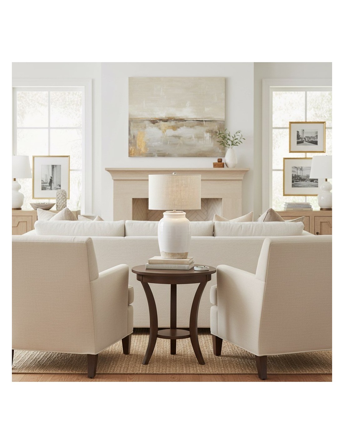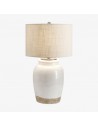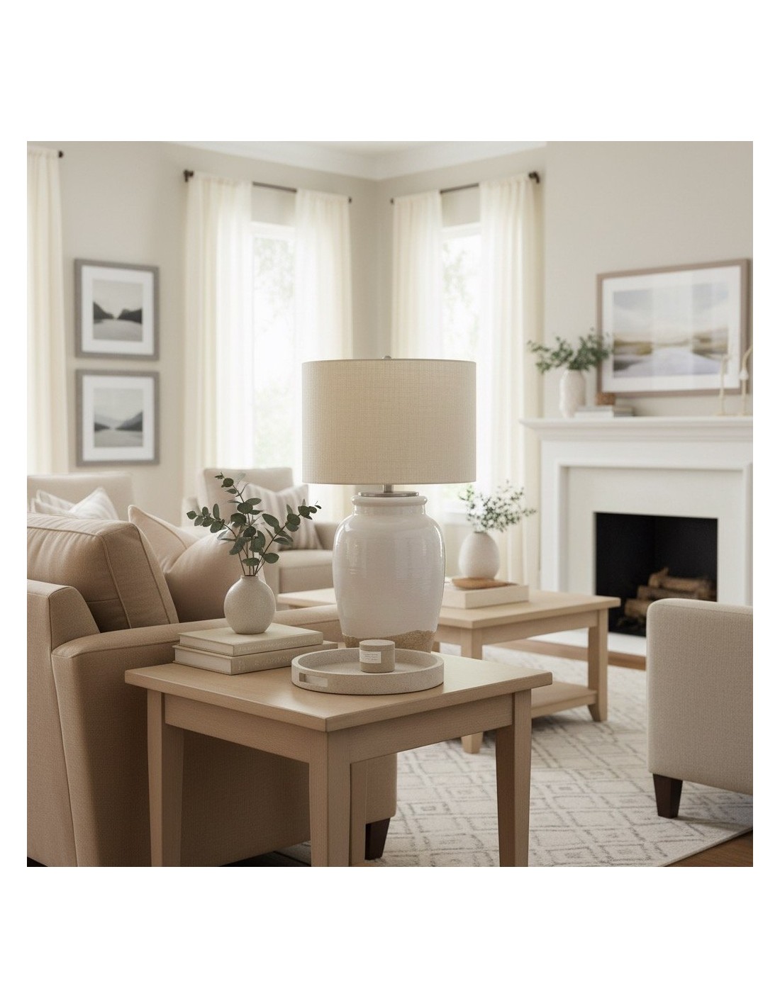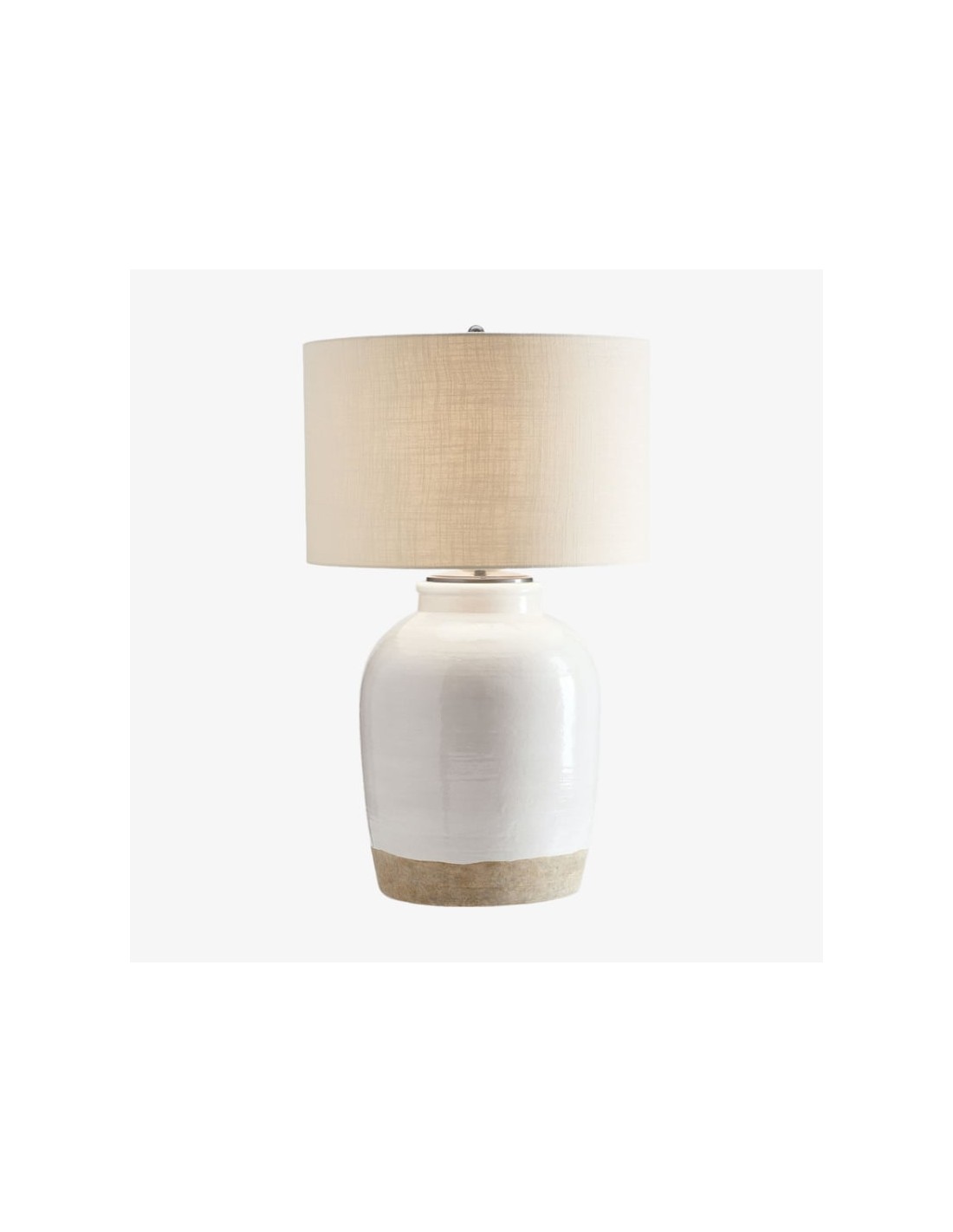 De Mello tafellamp heeft een handgemaakte keramische voet met een zachte, cilindervormige lampenkap. Deze veelzijdige lamp voegt een organische, moderne elegantie toe aan nachtkastjes, bureaus en woonkamers.