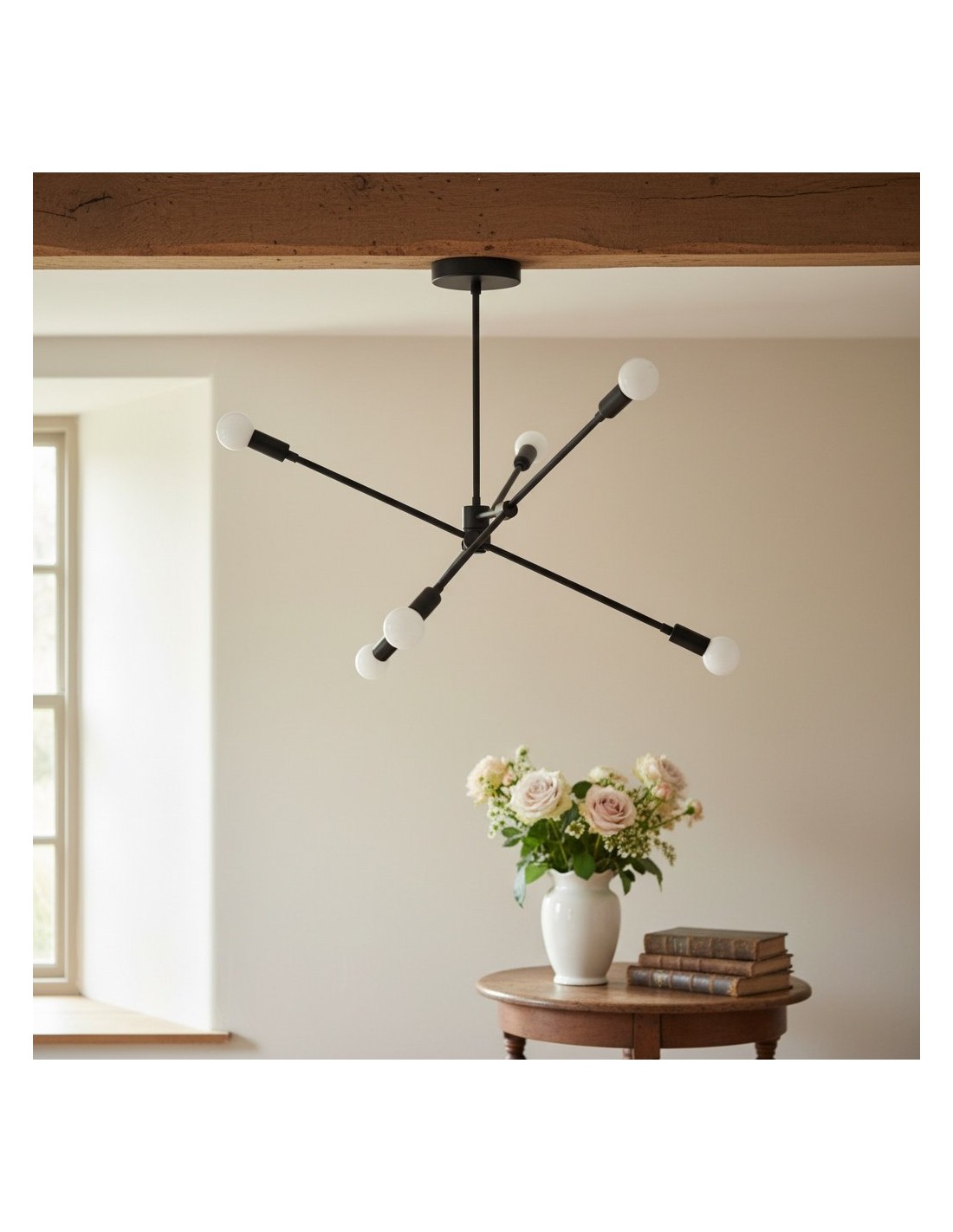 Verrijk uw dinerervaring met onze prachtige moderne mobiele kroonluchter. Het minimalistische ontwerp, gemaakt van strak metaal en strakke lijnen, creëert een betoverend middelpunt. Perfect ontworpen om boven uw eettafel te hangen, transformeert hij maaltijden in momenten van artistieke ambiance.