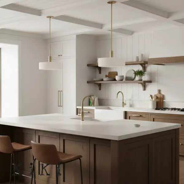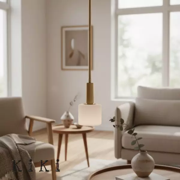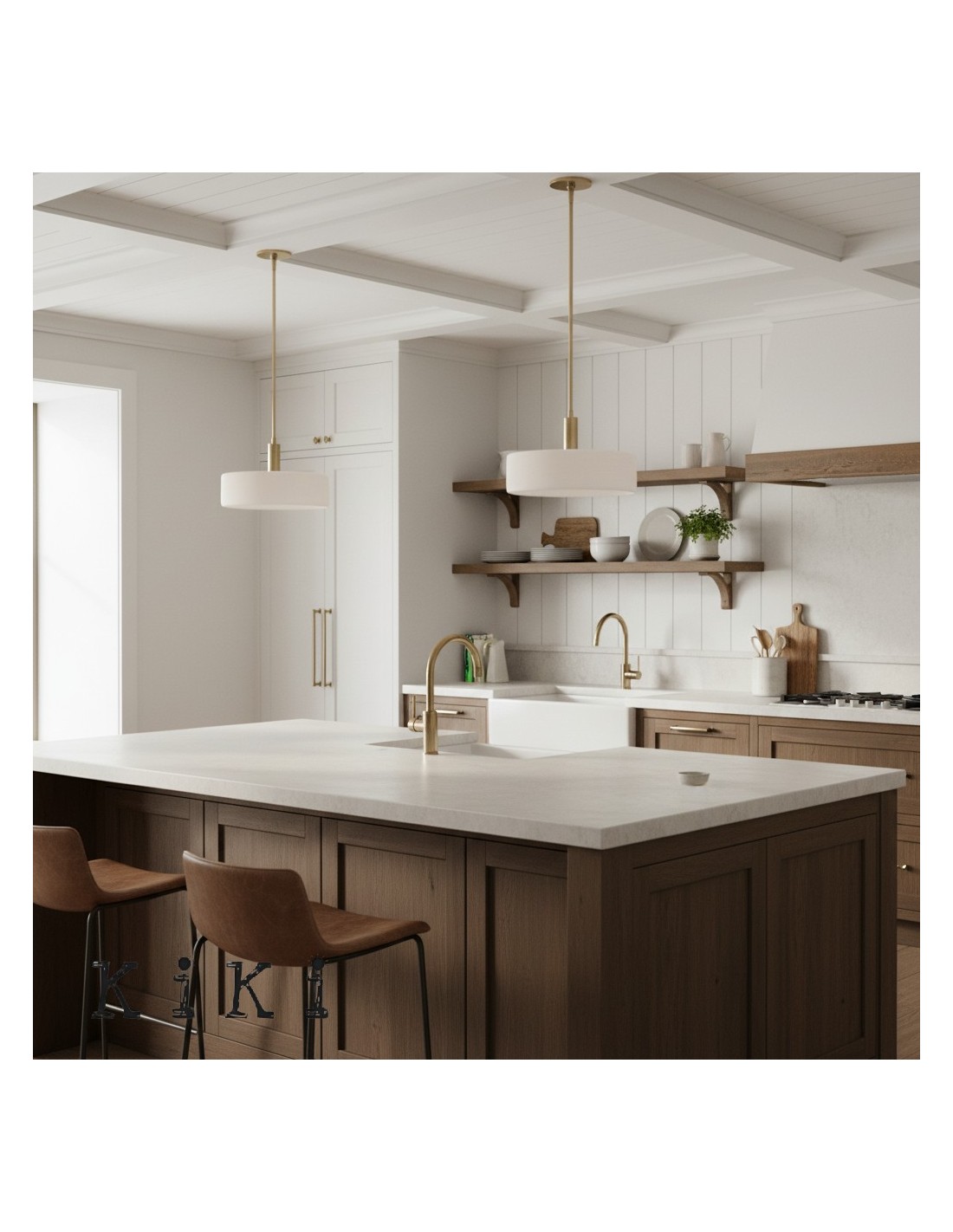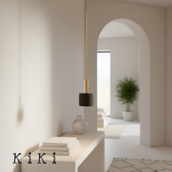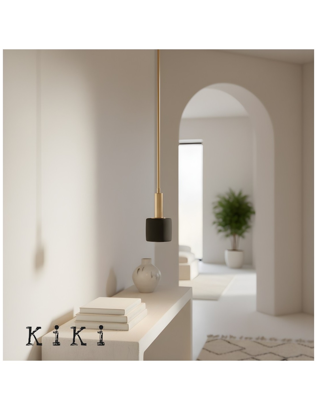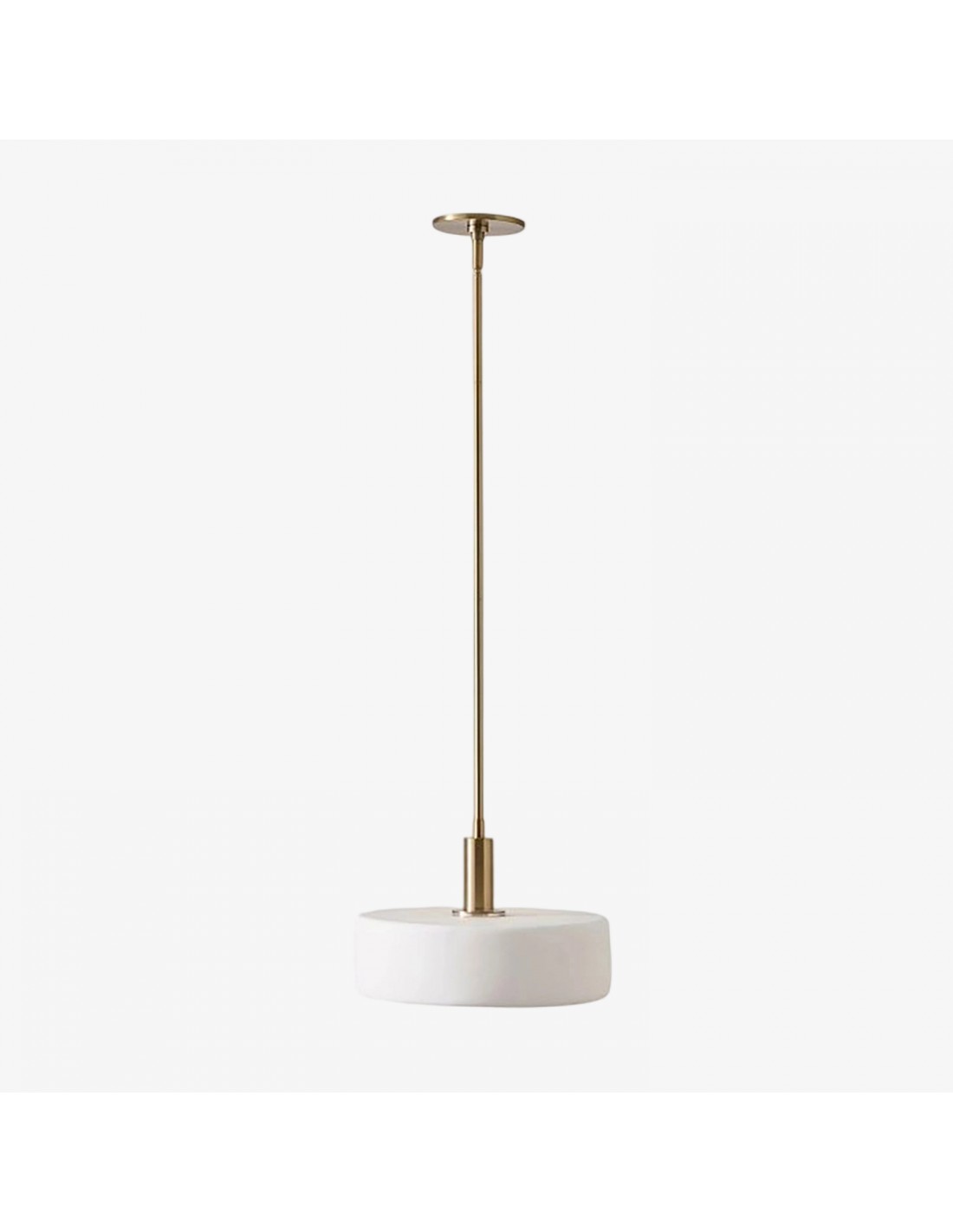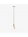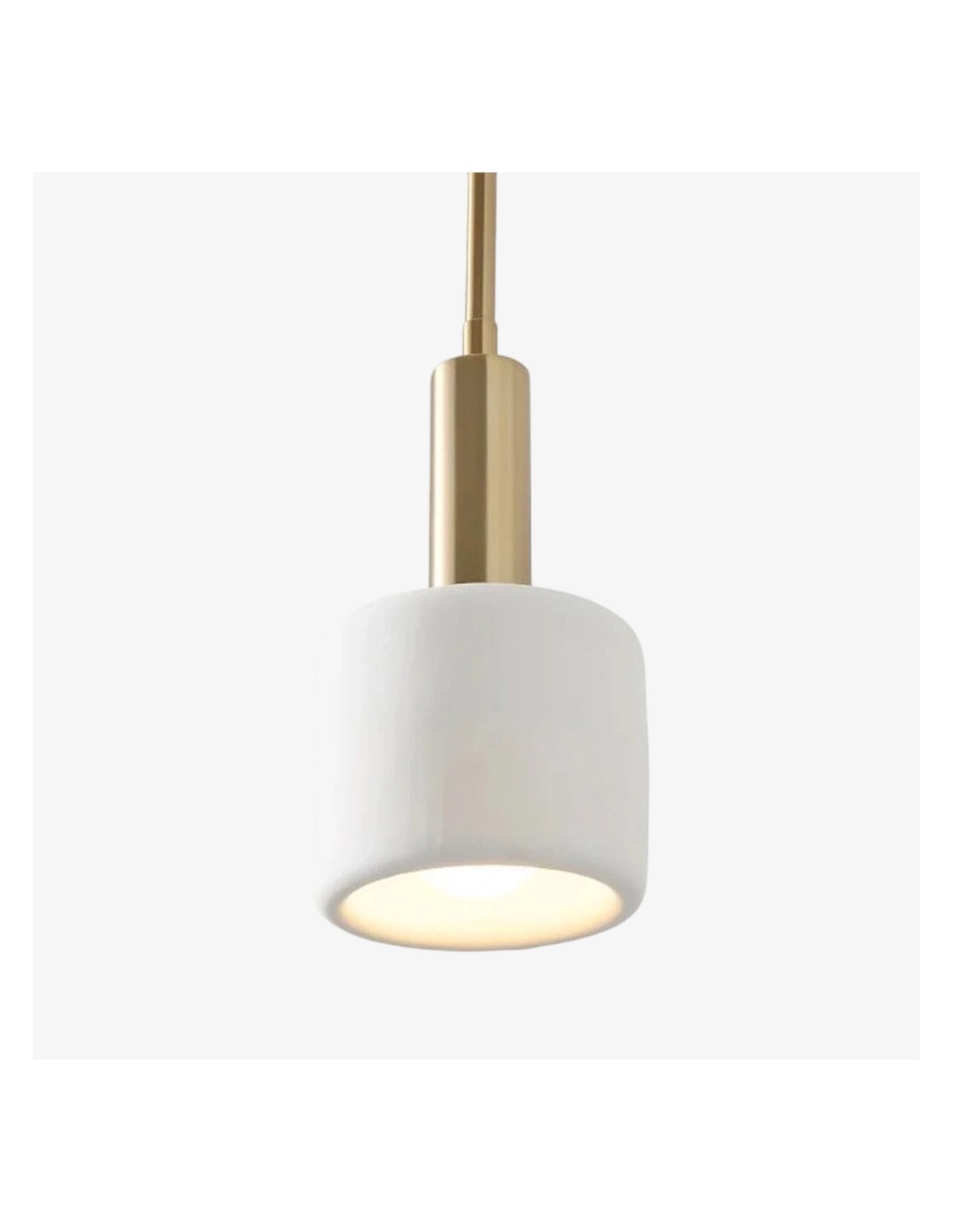 Deze porseleinen hanglamp combineert op elegante wijze een zachte porseleinen kap met een verfijnde champagnebronzen metalen kap, wat resulteert in een ingetogen maar toch verfijnd statement piece. De gladde keramische body zorgt voor een organische en tijdloze uitstraling, terwijl het metalen accent warmte en structuur toevoegt.