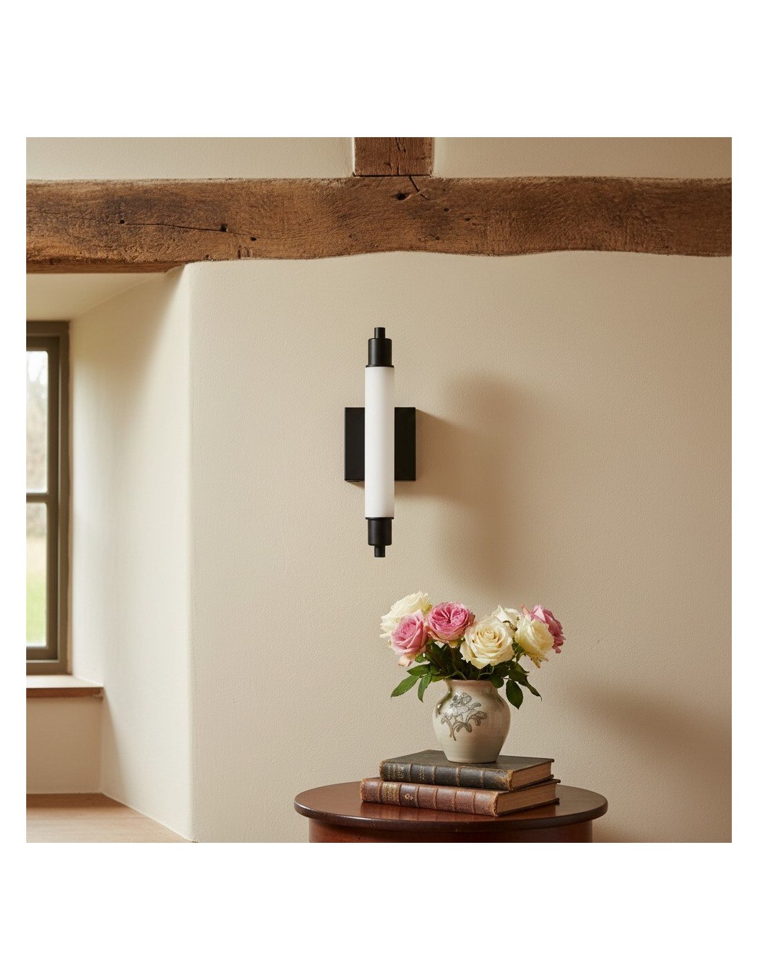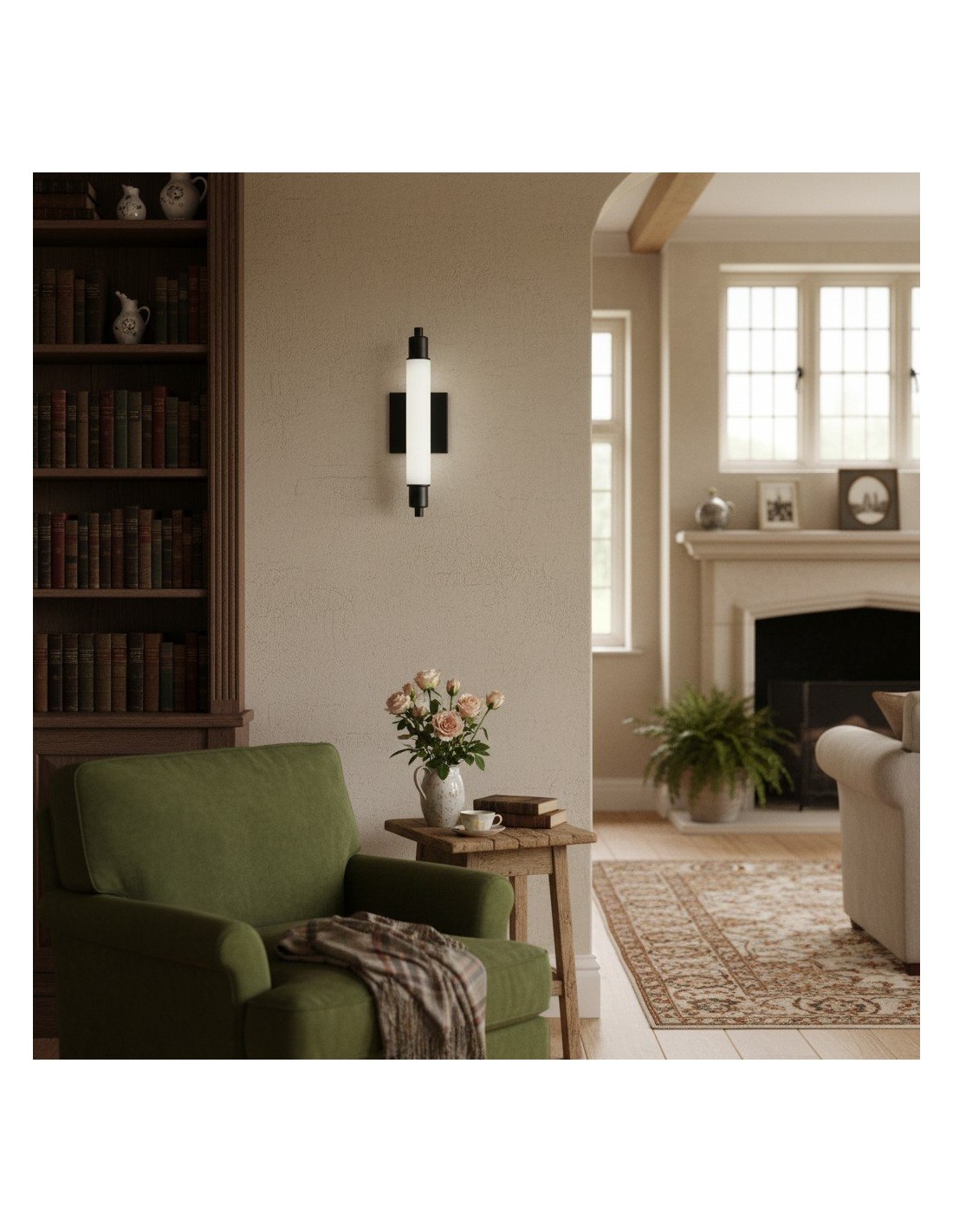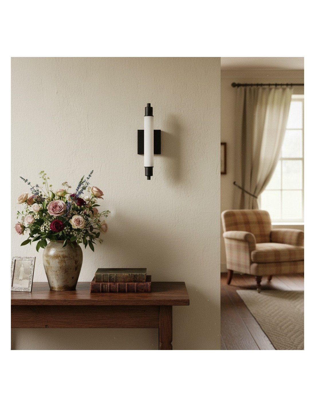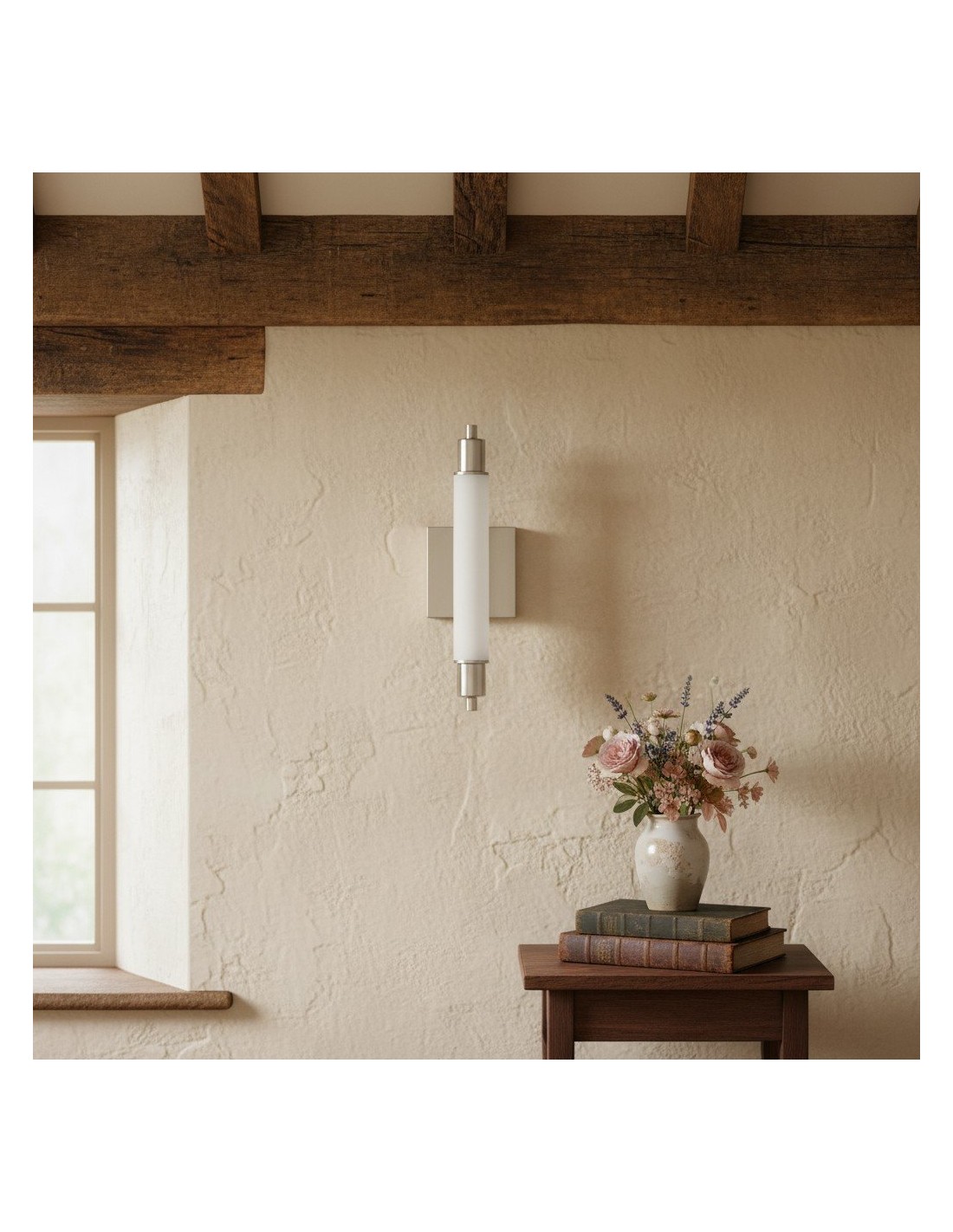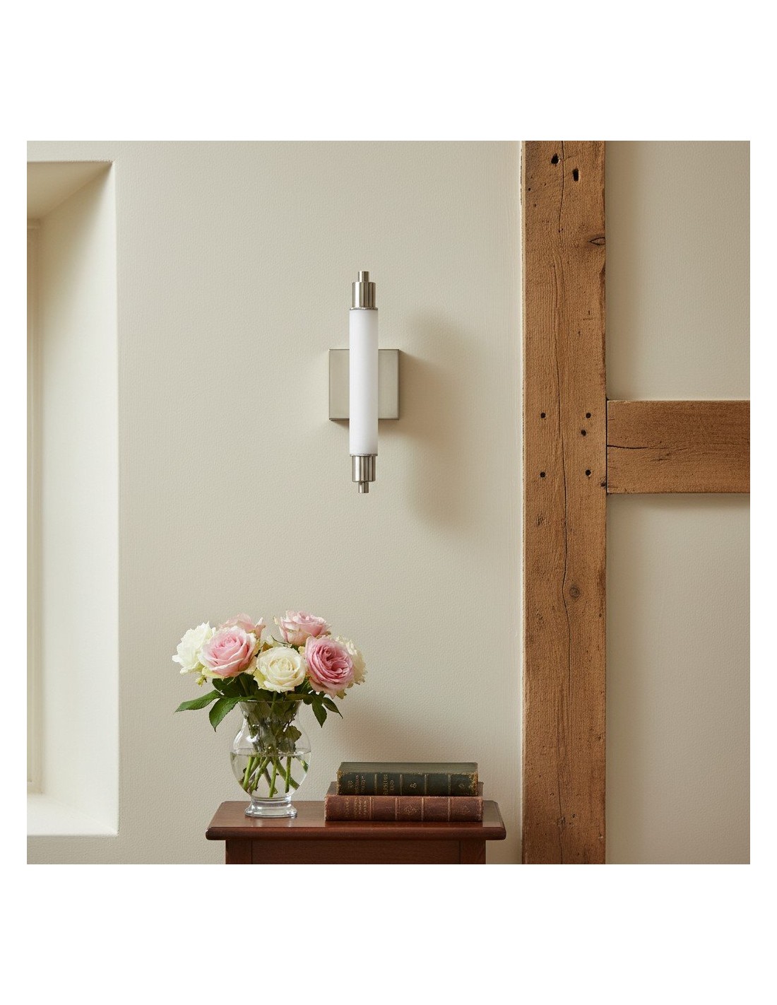 Verfraai uw badkamer met deze moderne wastafellamp met een hoogglans witte cilinder van acryl. Geïnspireerd door art-decodesign, maken de strakke lijnen en veelzijdige montagemogelijkheden hem perfect voor moderne of moderne ruimtes. Verkrijgbaar in diverse premium afwerkingen voor een persoonlijke touch.