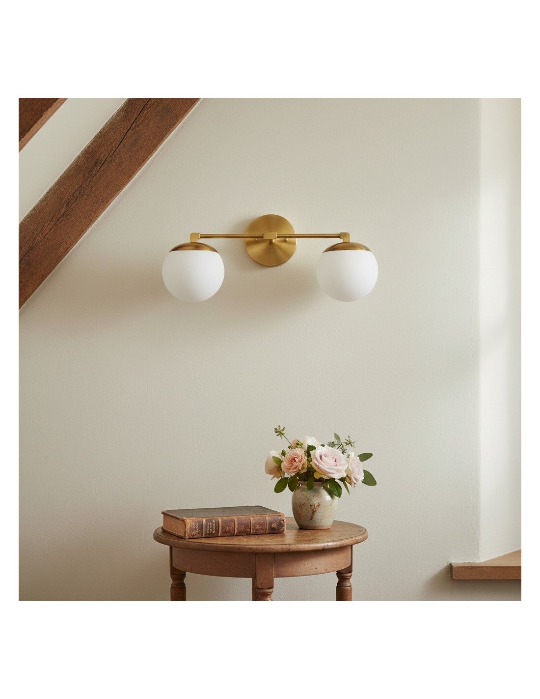 Glorica Glazen Badkamerlamp - Art Deco Messing Wandlamp met Bolvormige Armatuur, Modern KL1500