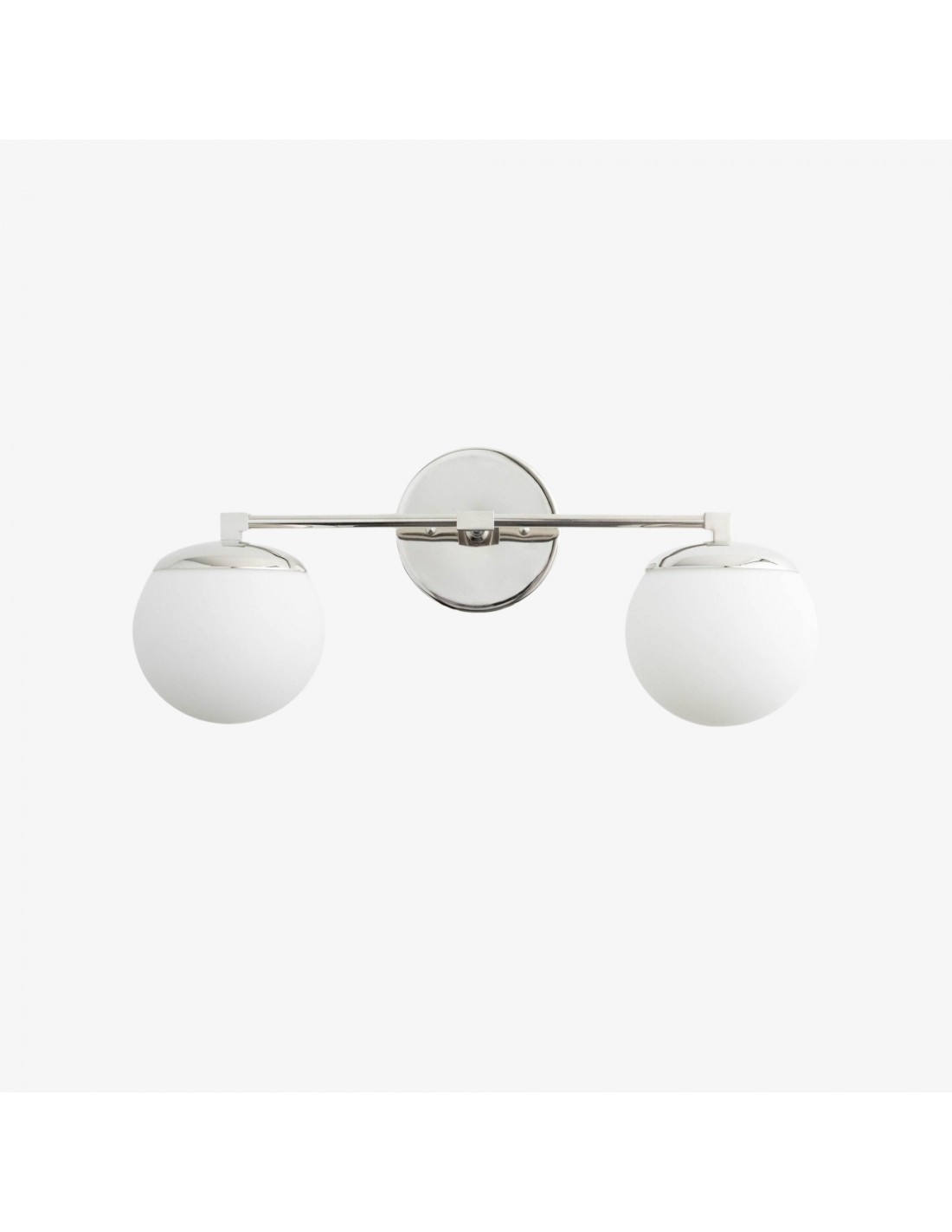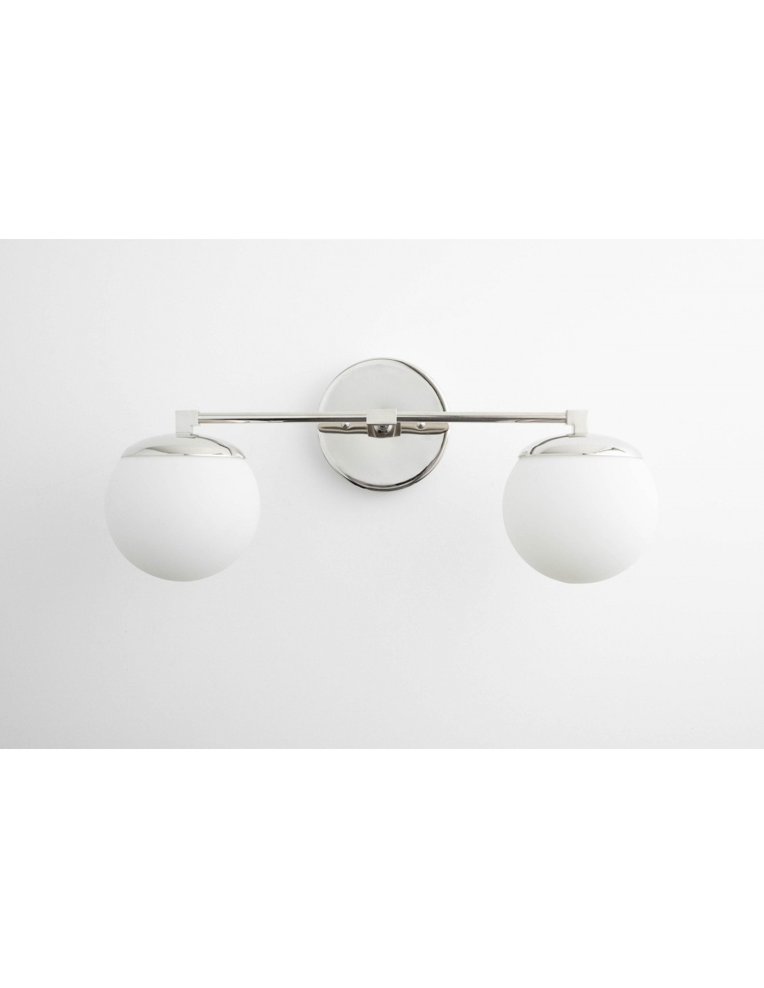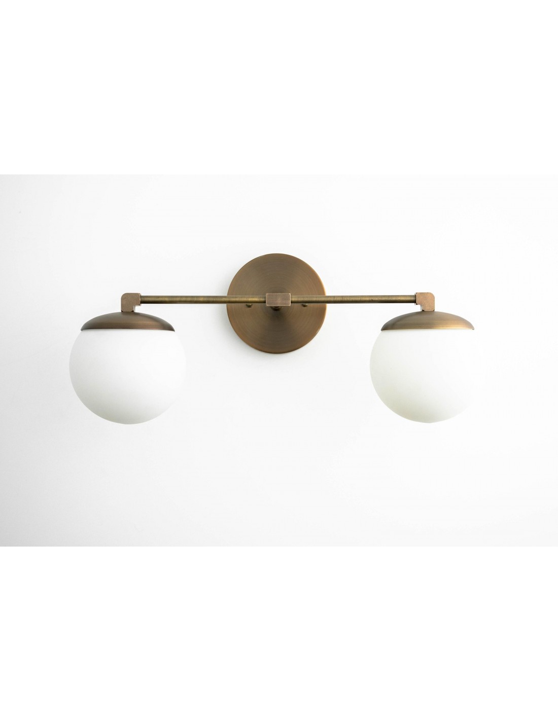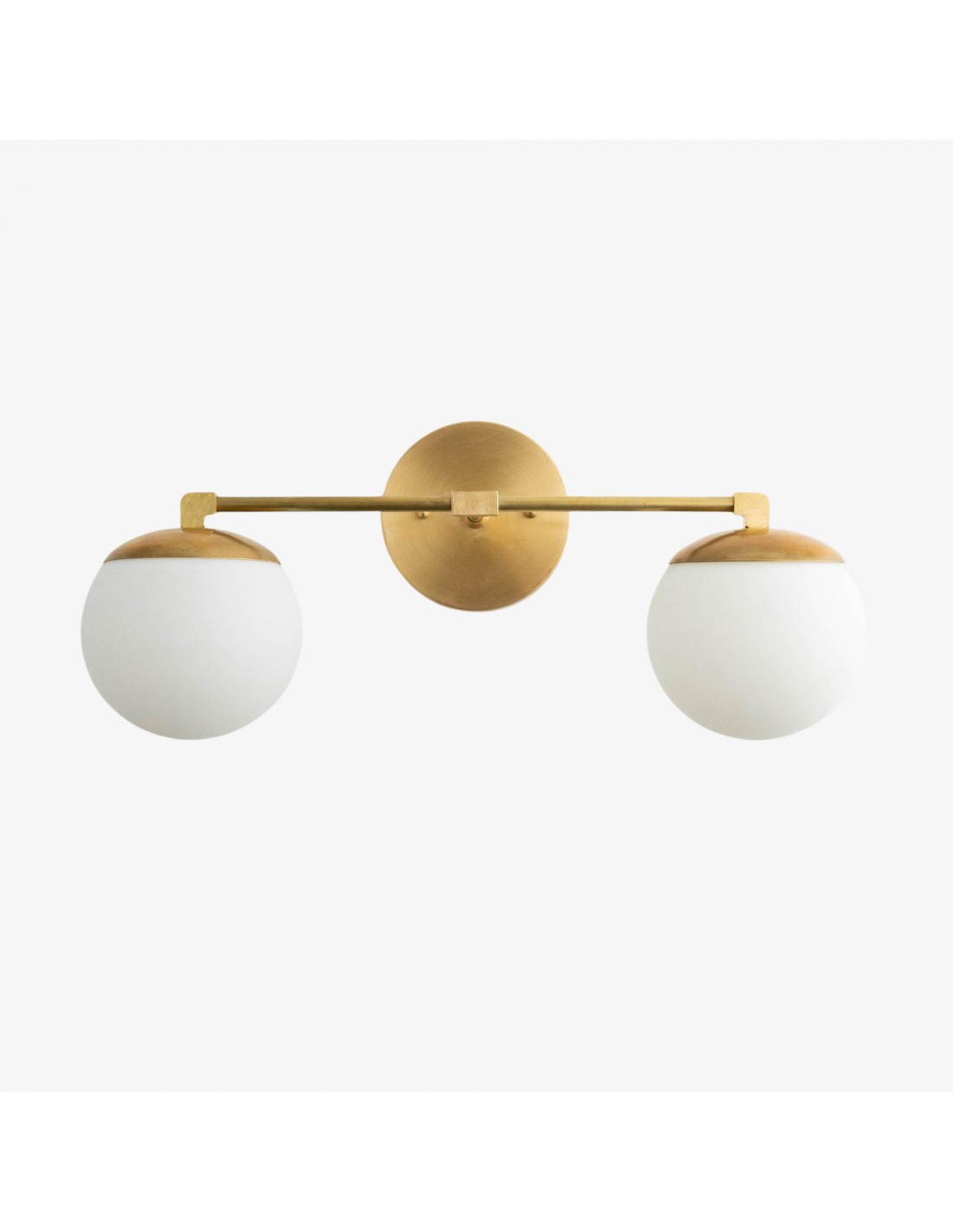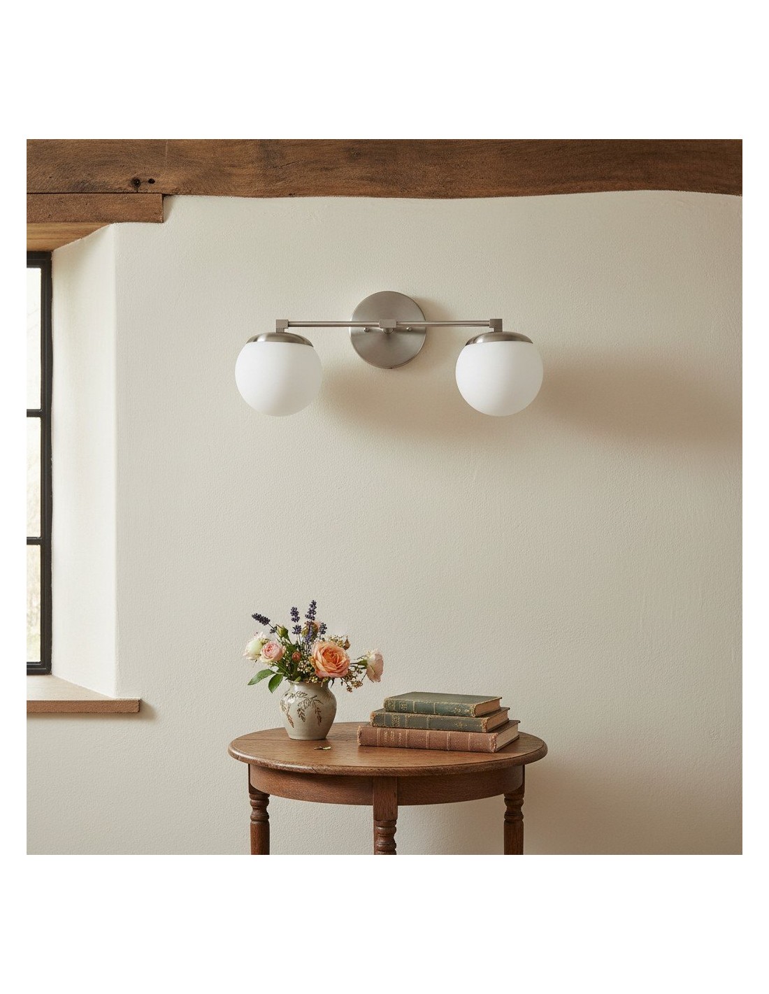 De Glorica glazen kaptafellamp voegt een verfijnde art-decostijl toe aan elke ruimte. Deze veelzijdige wandlamp met een satijnen opalen bol en een armatuur van massief messing kan horizontaal of verticaal worden gemonteerd. De strakke lijnen en warme afwerking zorgen voor een zachte, sfeervolle verlichting in badkamers, gangen of slaapkamers.