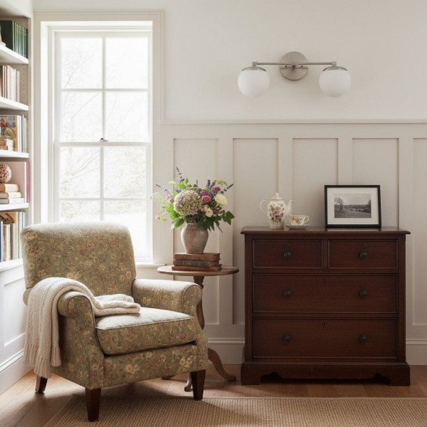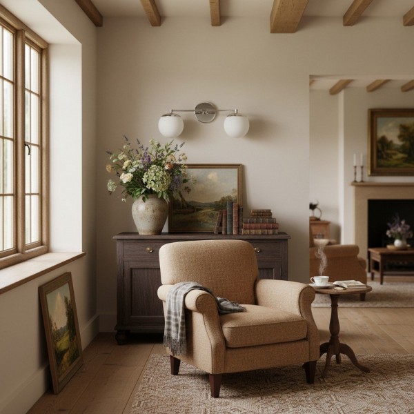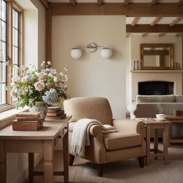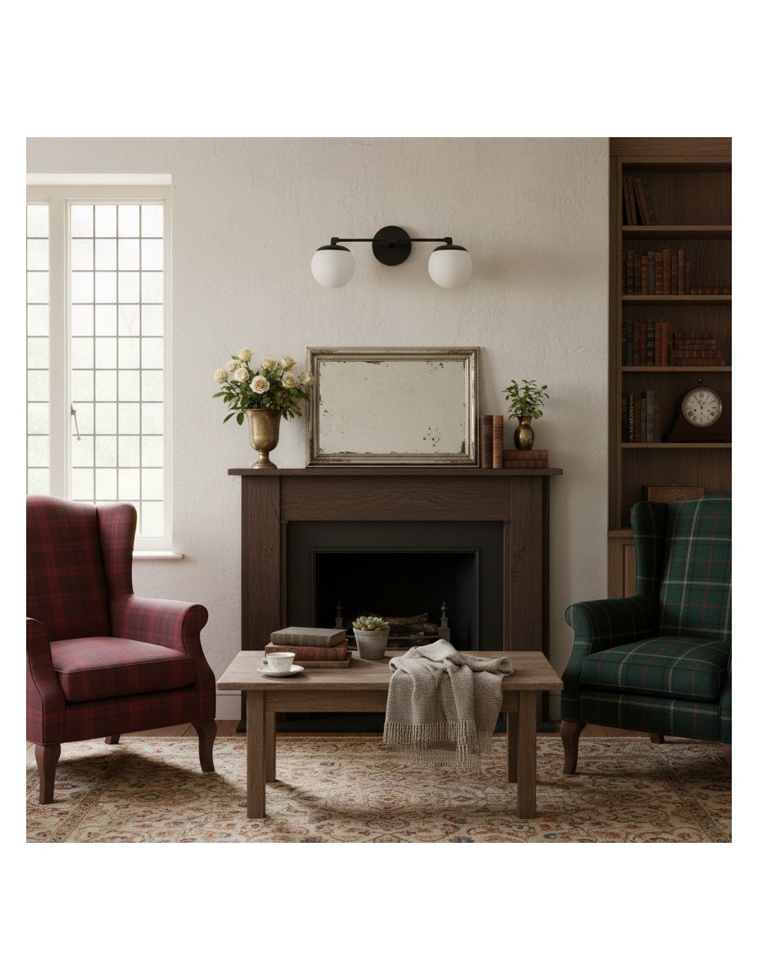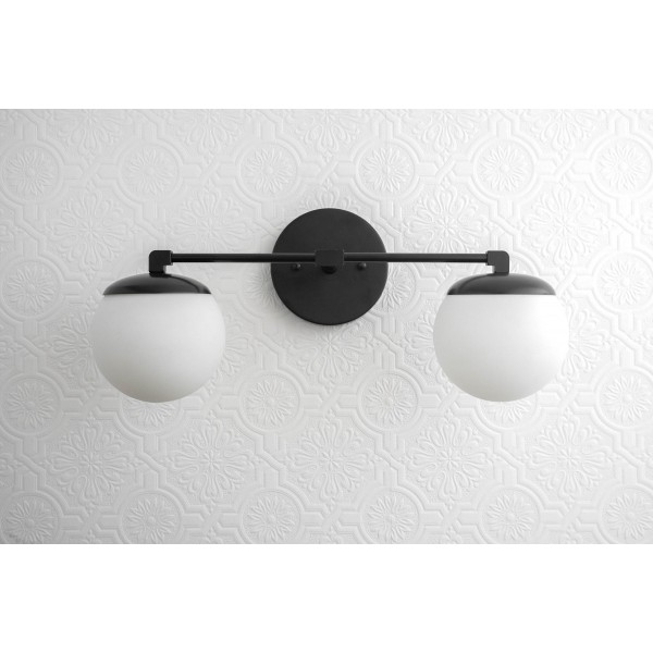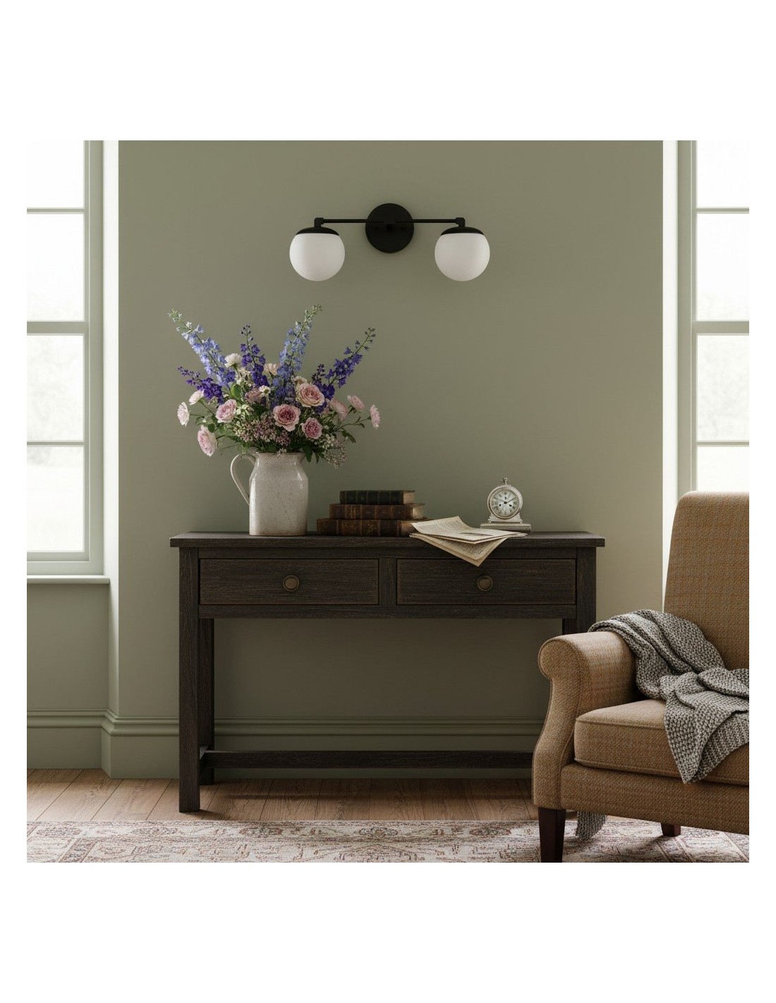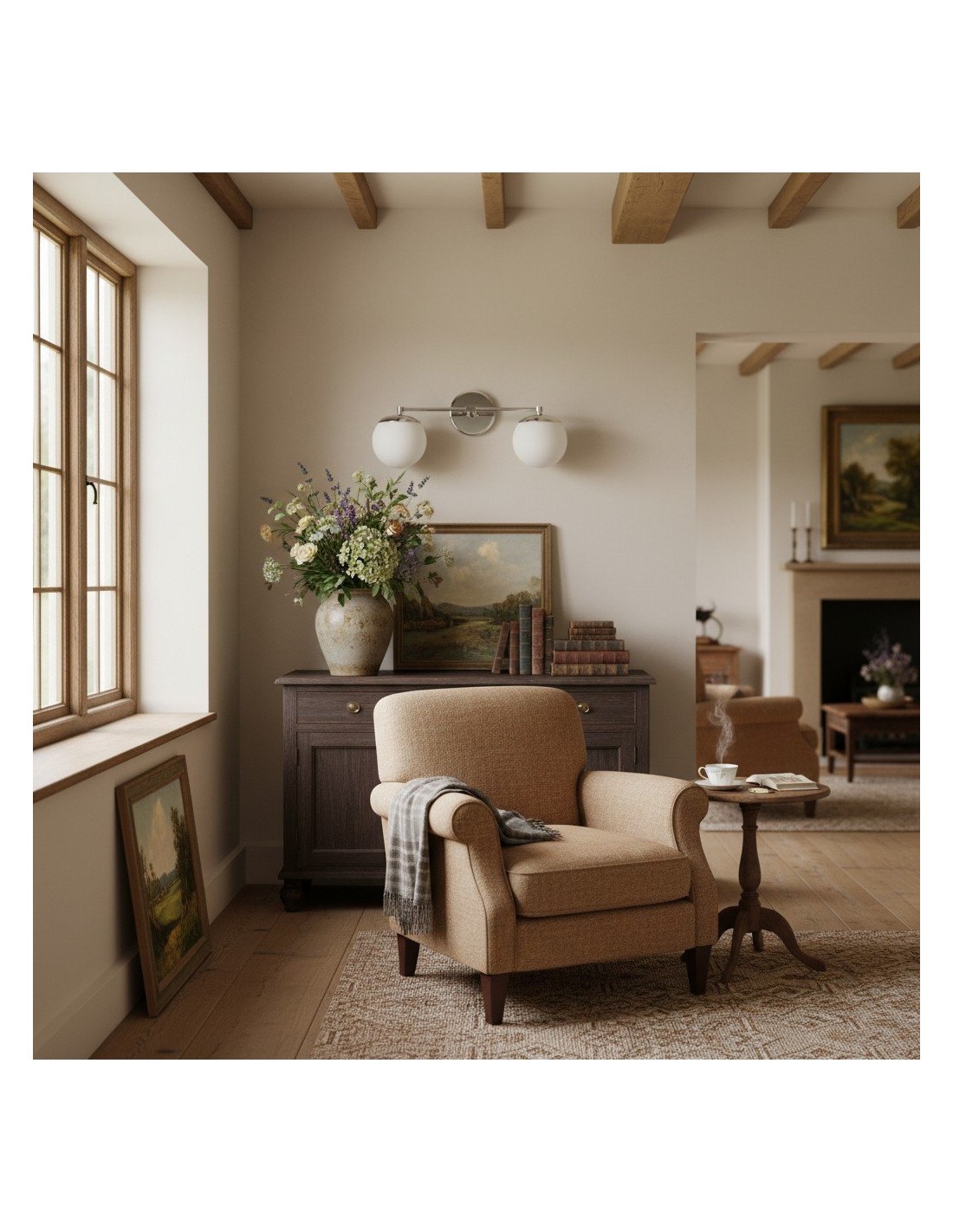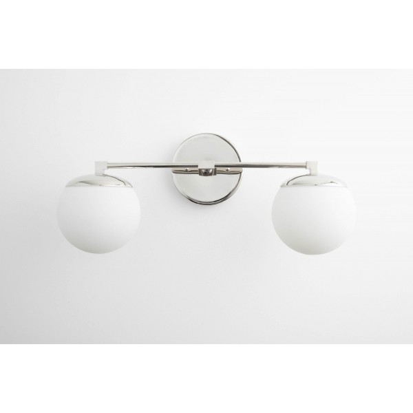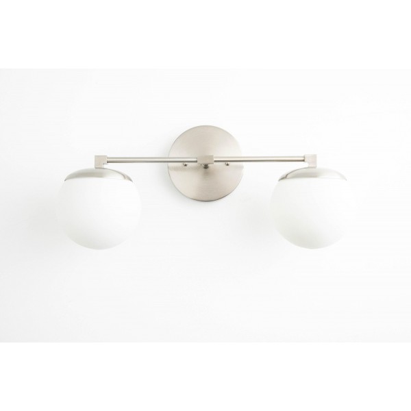 De Glorica glazen kaptafellamp voegt een verfijnde art-decostijl toe aan elke ruimte. Deze veelzijdige wandlamp met een satijnen opalen bol en een armatuur van massief messing kan horizontaal of verticaal worden gemonteerd. De strakke lijnen en warme afwerking zorgen voor een zachte, sfeervolle verlichting in badkamers, gangen of slaapkamers.