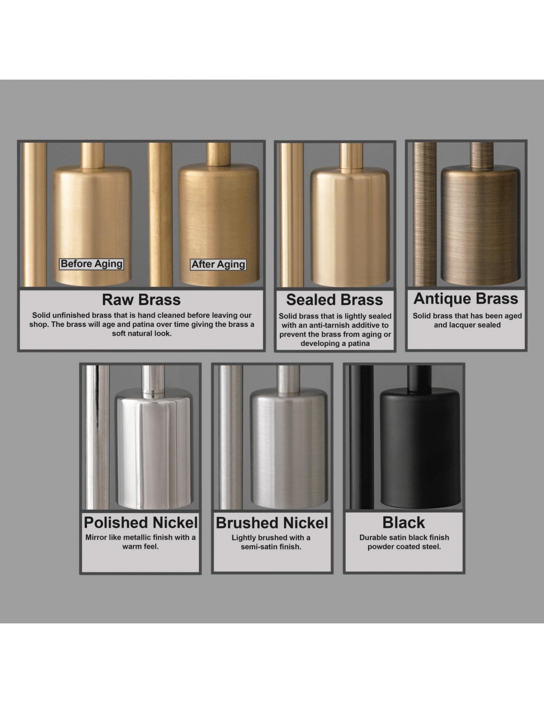 - Onze Raw Brass-afwerking bestaat uit massief, onafgewerkt messing dat met de hand wordt gereinigd voordat het onze werkplaats verlaat. Het messing zal na verloop van tijd verouderen en patineren, waardoor de afwerking een zachte, natuurlijke uitstraling krijgt.