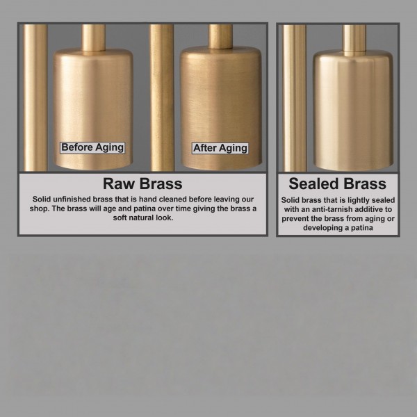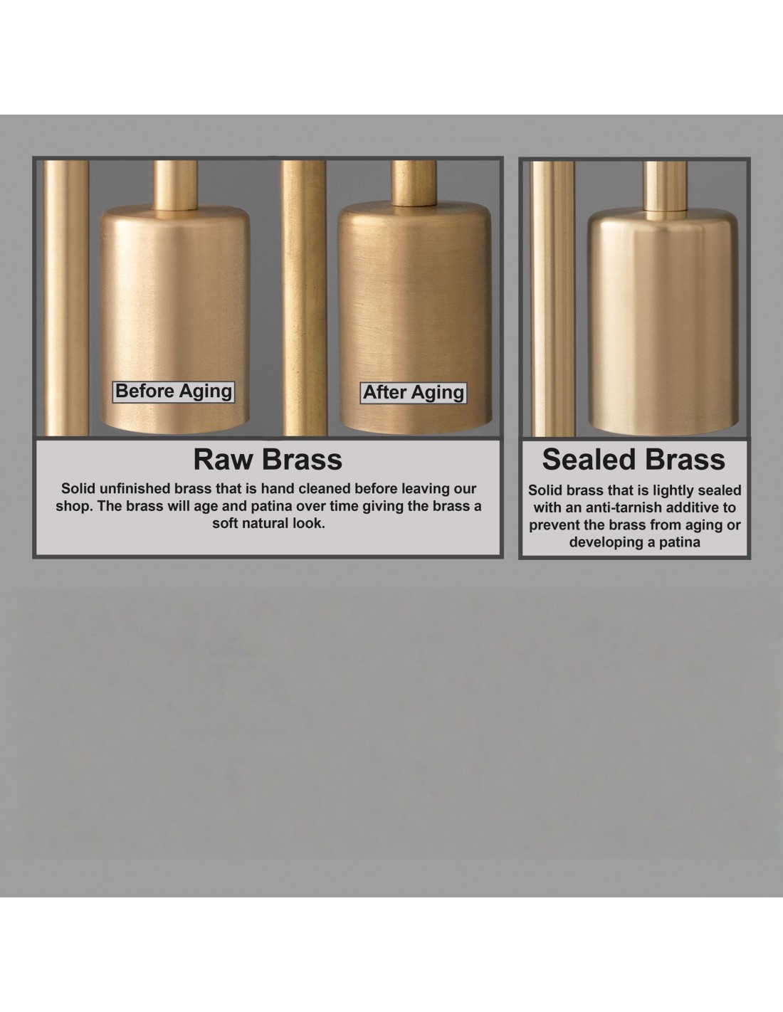 - Onze Raw Brass-afwerking bestaat uit massief, onafgewerkt messing dat met de hand wordt gereinigd voordat het onze werkplaats verlaat. Het messing zal na verloop van tijd verouderen en patineren, waardoor de afwerking een zachte, natuurlijke uitstraling krijgt.