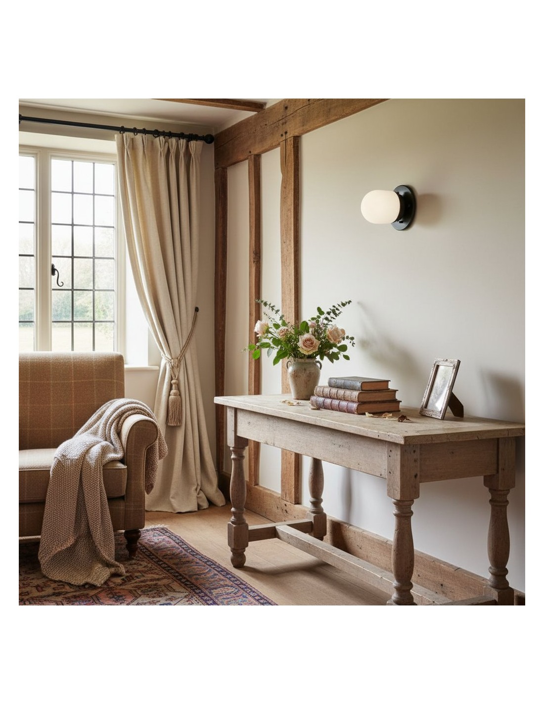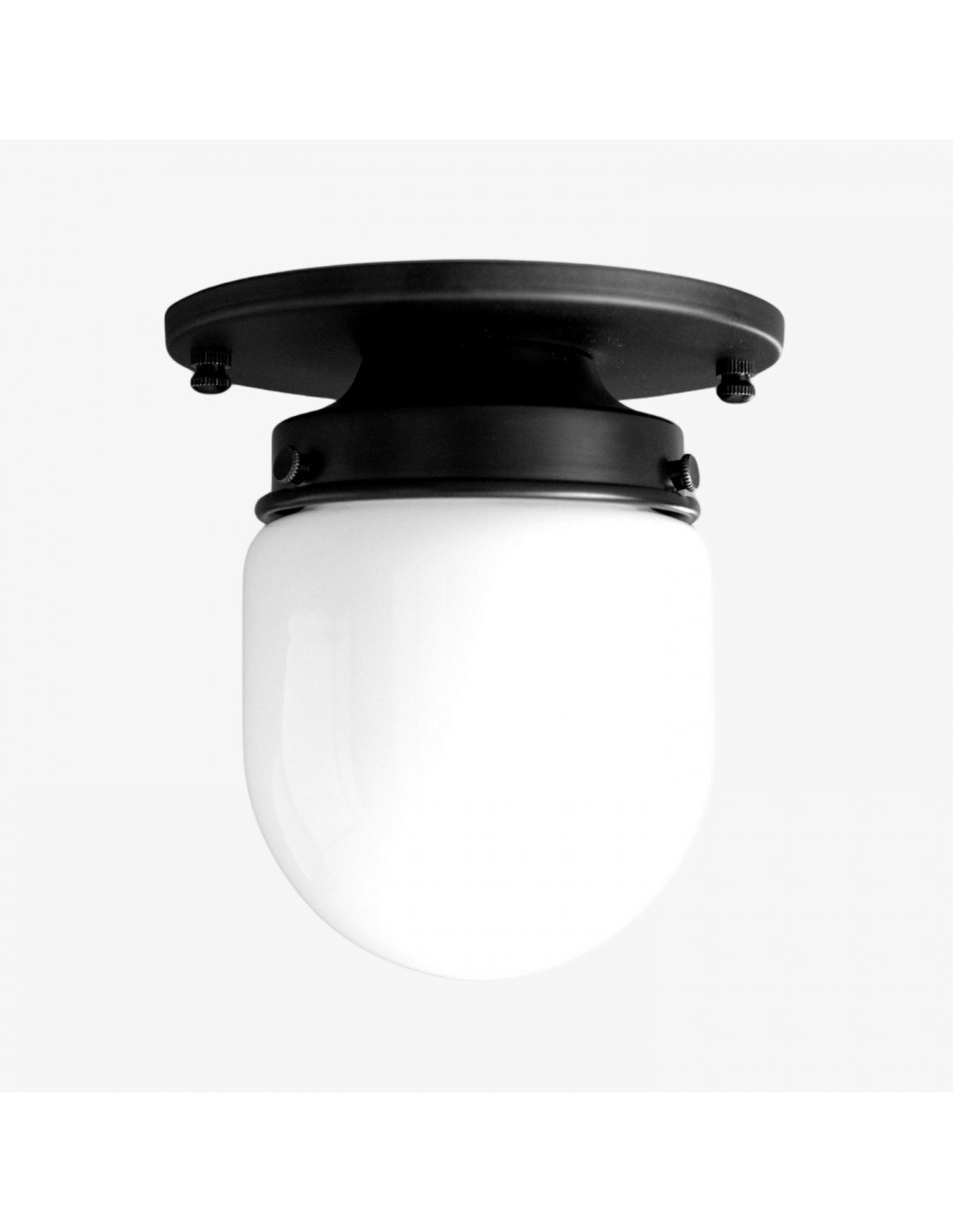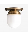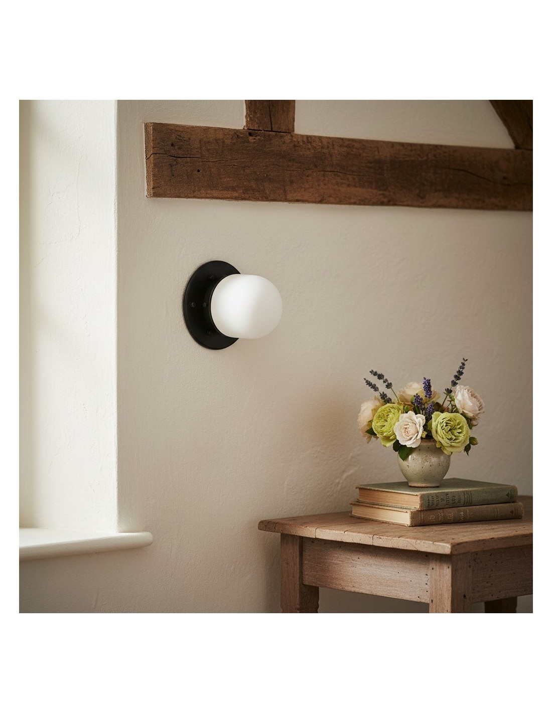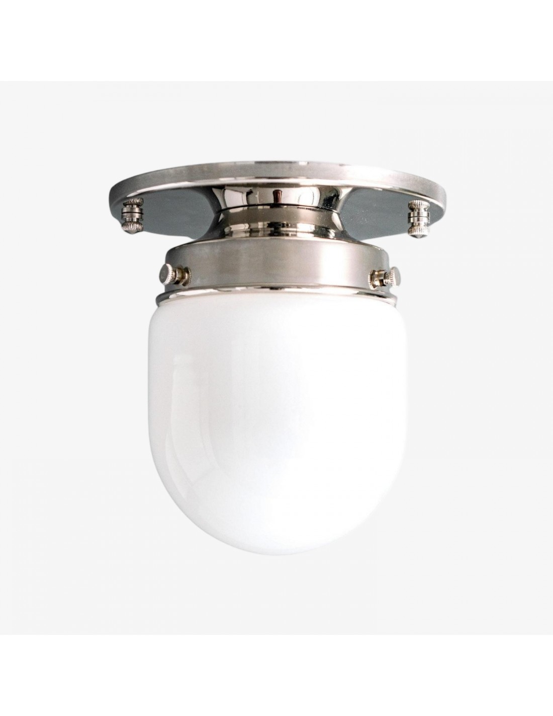 Verfraai compacte ruimtes met de Opalume Glass plafondlamp met een kogelvormige bol van opaalglas. Geïnspireerd door de Art Deco-stijl, zorgt deze armatuur voor een zachte, sfeervolle gloed en bespaart tegelijkertijd ruimte. Perfect voor gangen, entrees of ruimtes met een laag plafond die tijdloze elegantie zoeken.