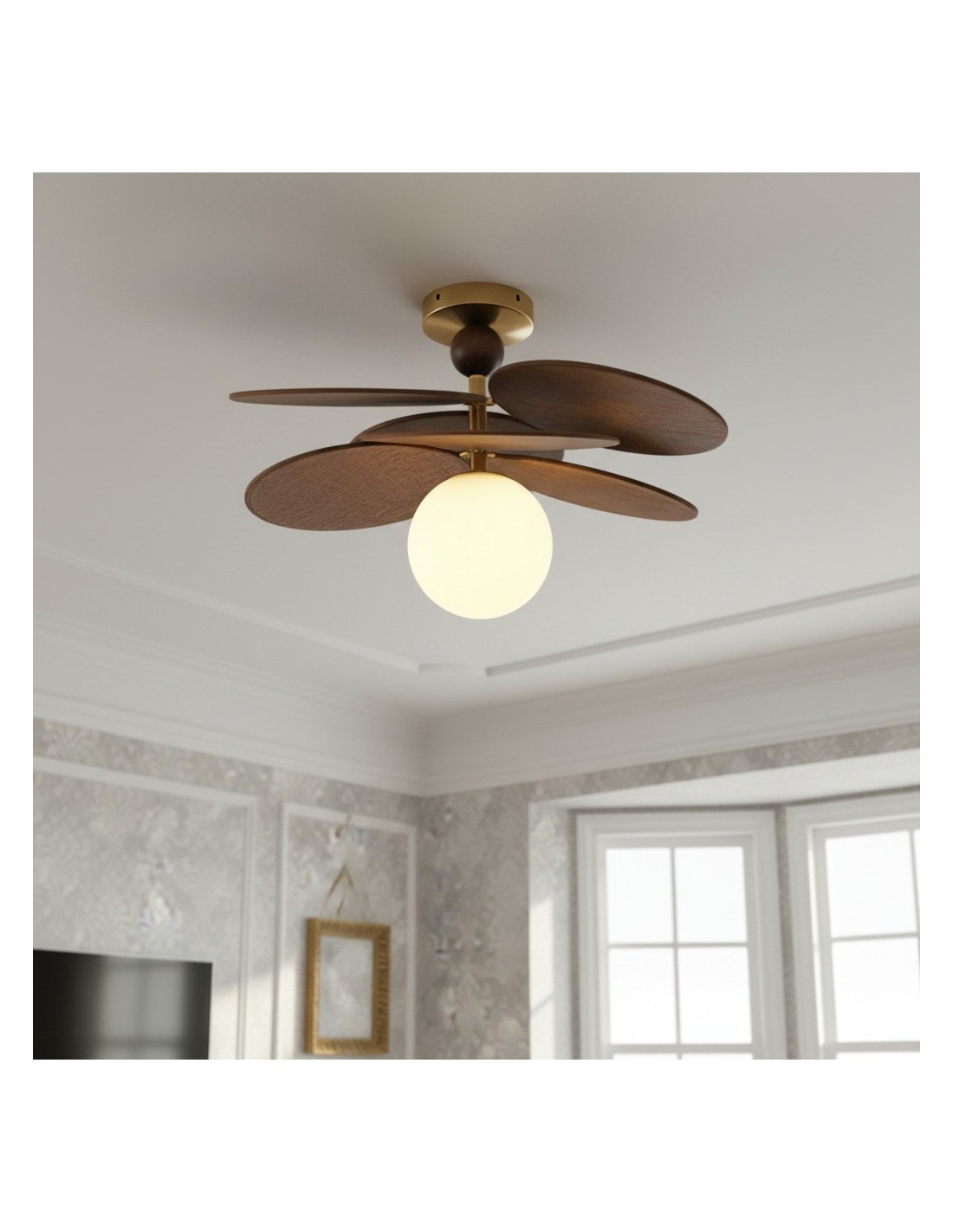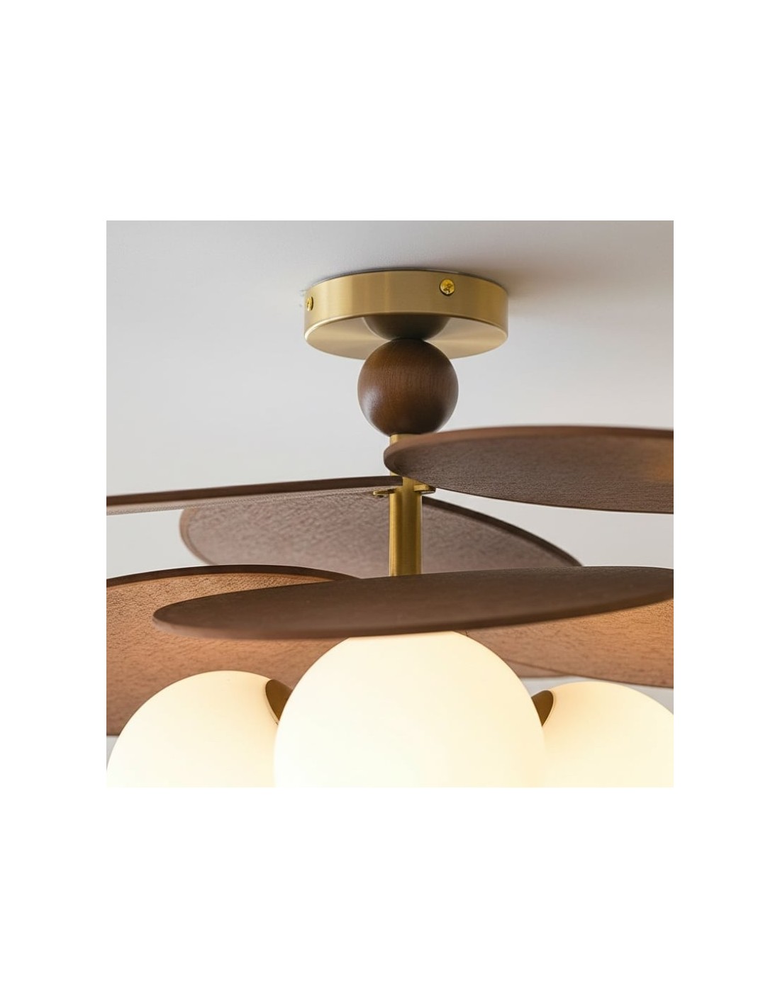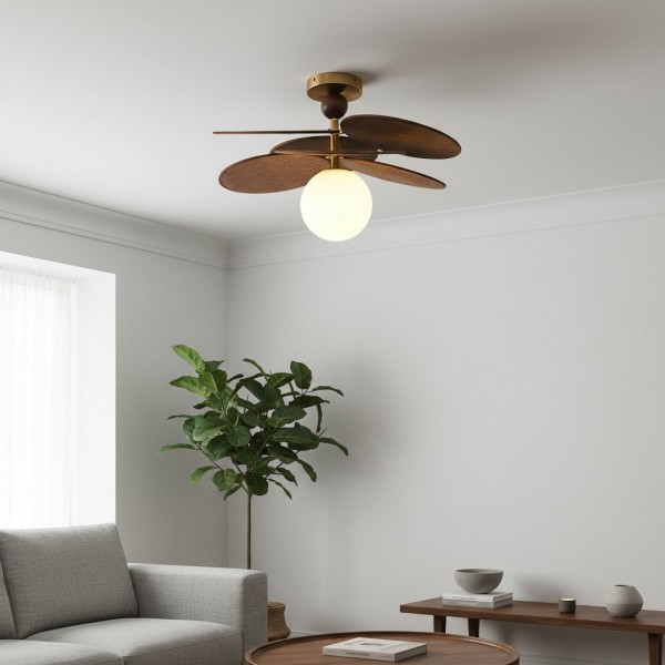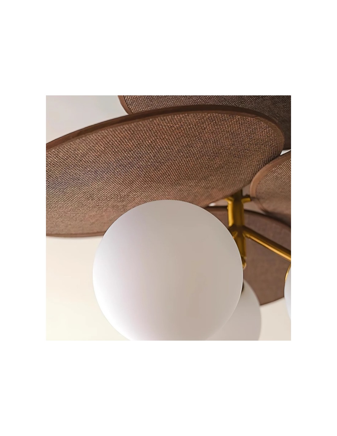 De Orrise plafondlamp is een sculpturale interpretatie van organisch design met gelaagde, op bladeren geïnspireerde panelen en zacht diffuus licht in de vorm van een bol. Deze decoratieve plafondlamp voegt diepte, dynamiek en sfeerverlichting toe aan interieurs.