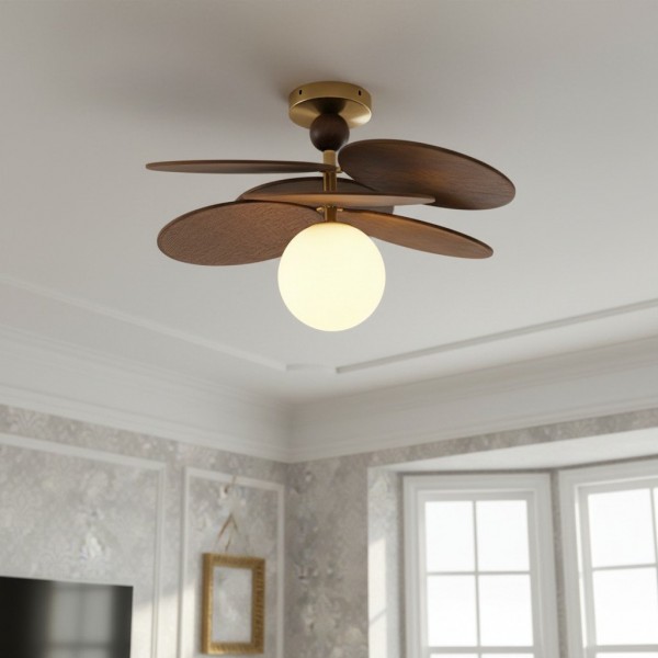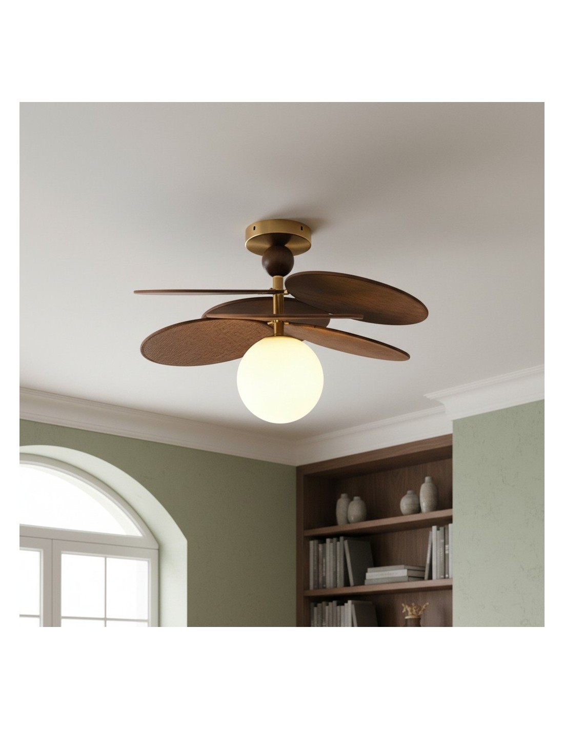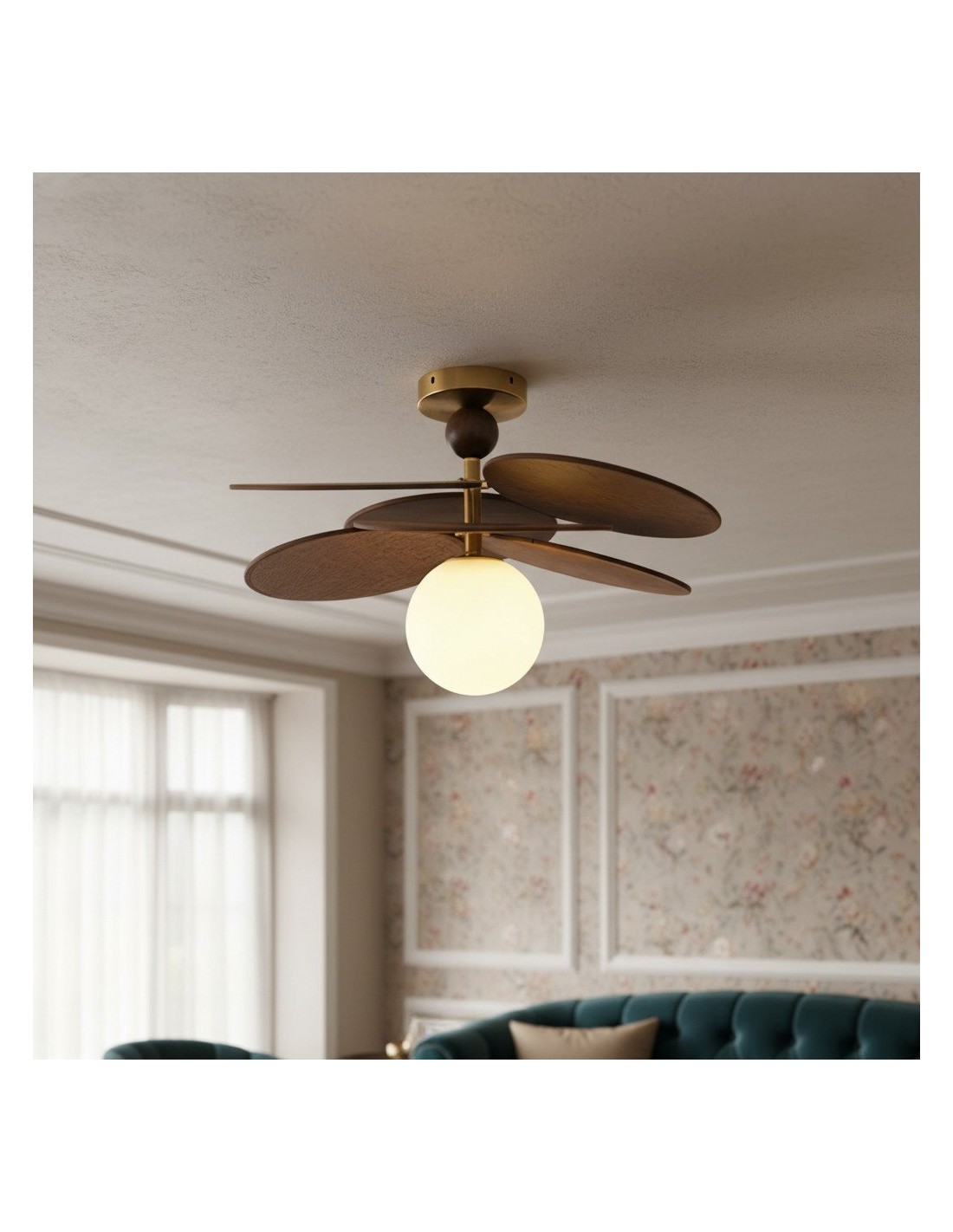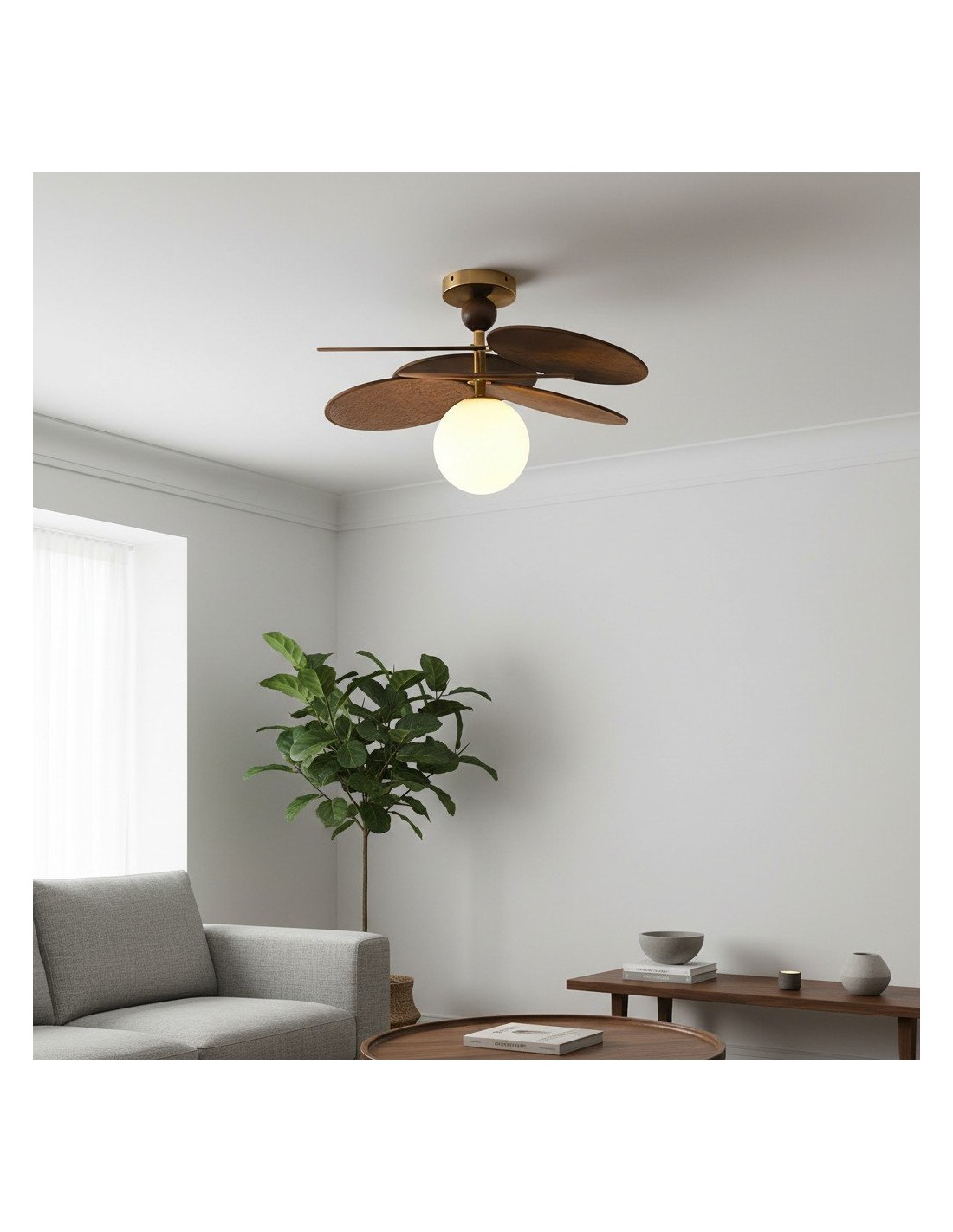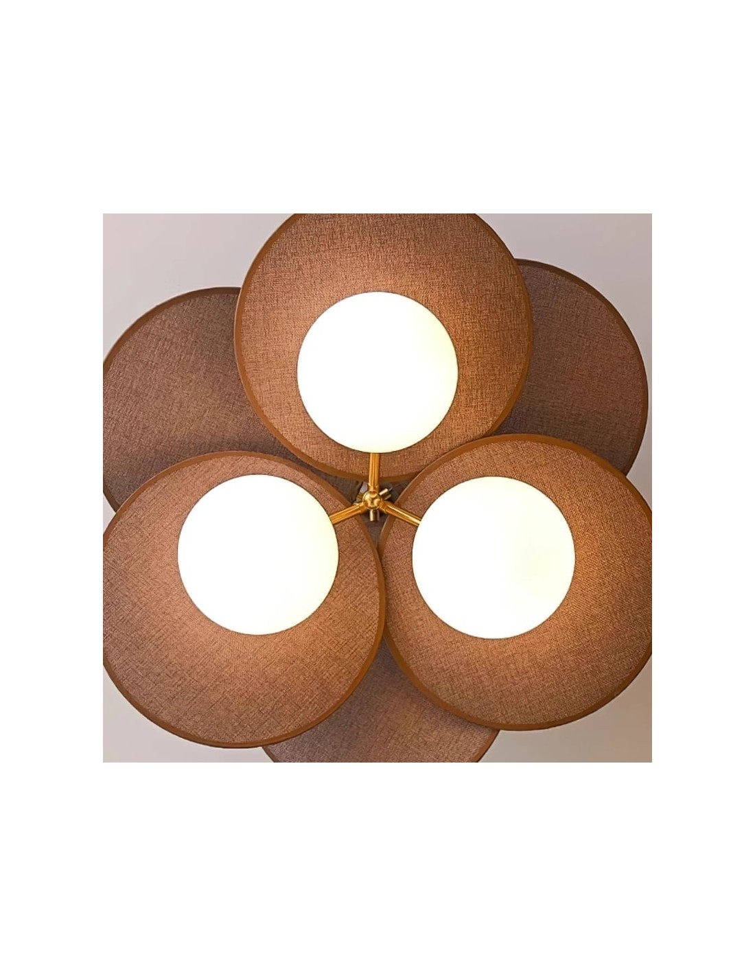 De Orrise plafondlamp is een sculpturale interpretatie van organisch design met gelaagde, op bladeren geïnspireerde panelen en zacht diffuus licht in de vorm van een bol. Deze decoratieve plafondlamp voegt diepte, dynamiek en sfeerverlichting toe aan interieurs.