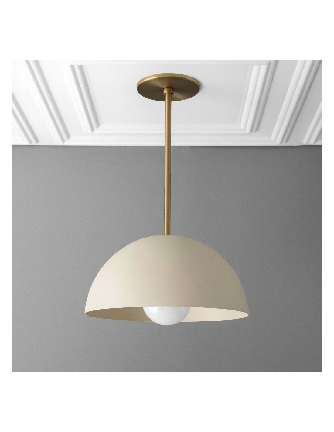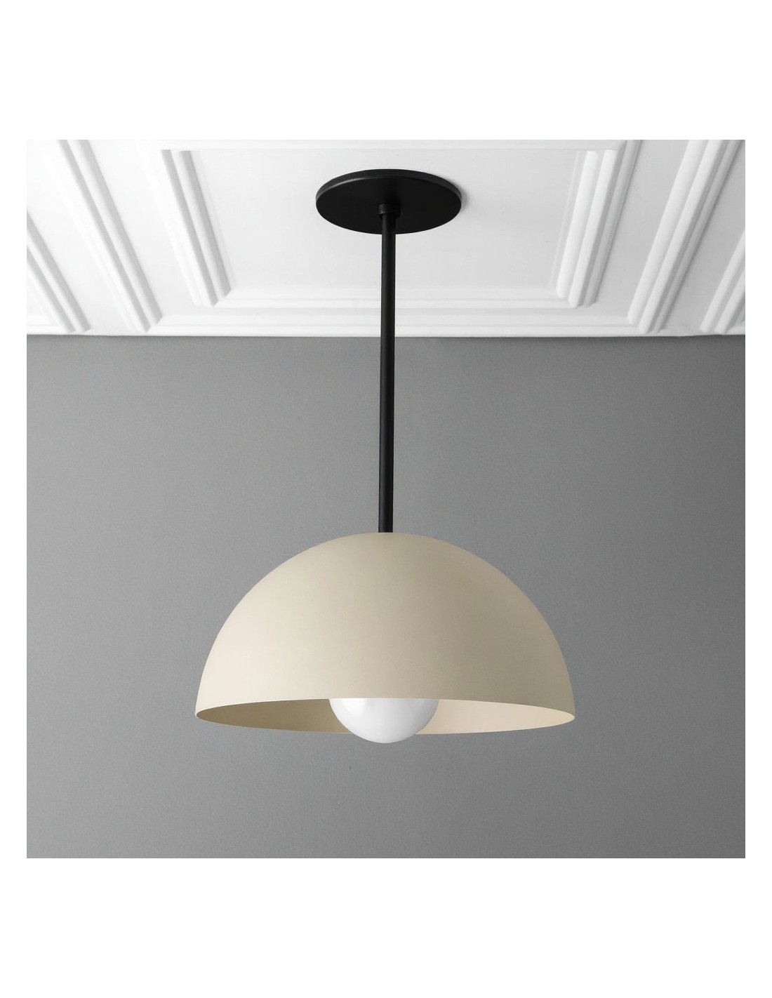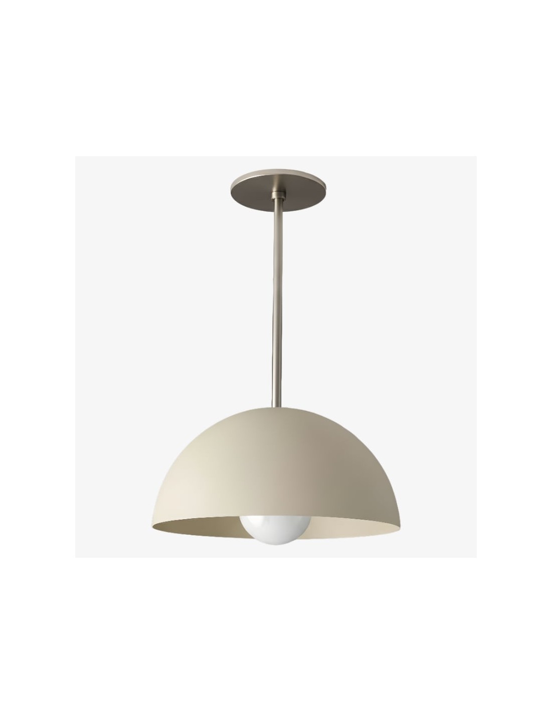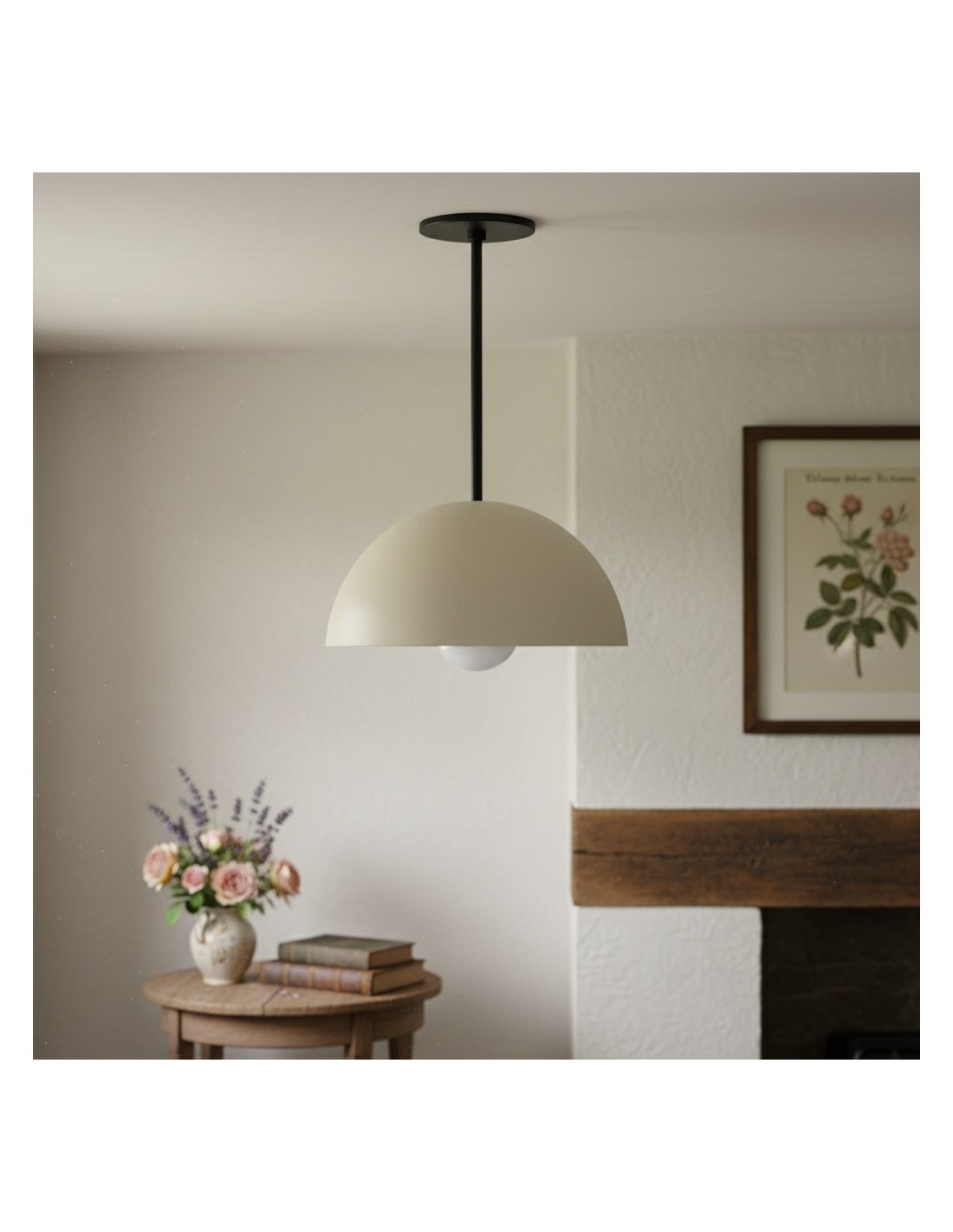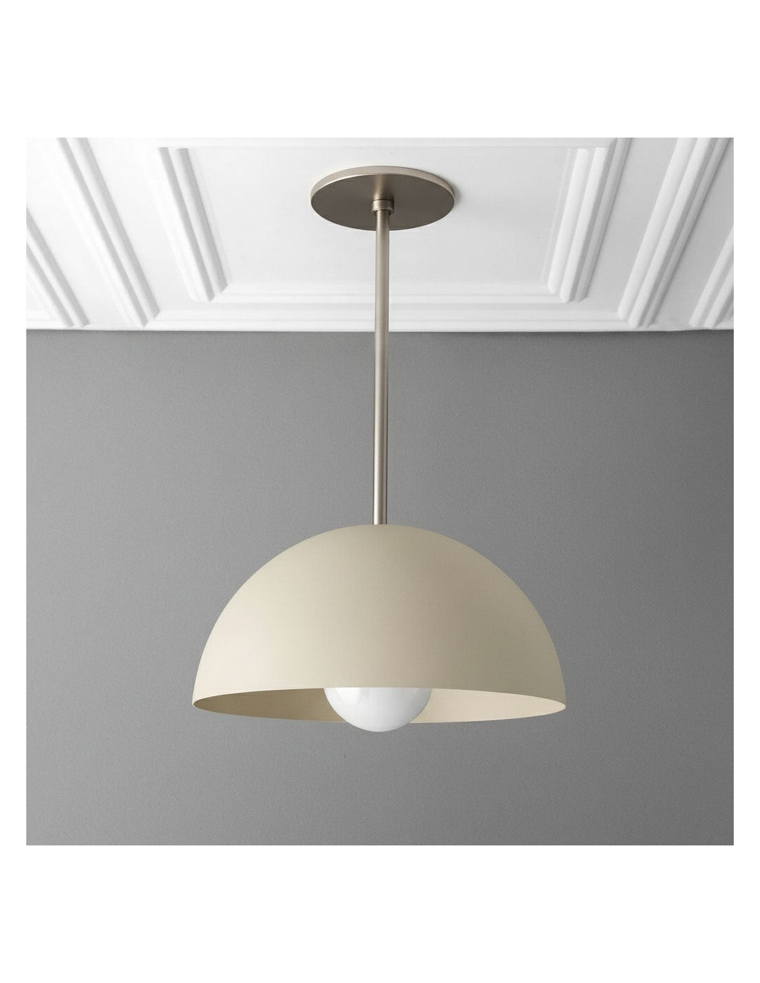 Een neutrale koepelvormige hanglamp die dienstdoet als moderne metalen accentverlichting. De combinatie van een zachte, koepelvormige kap en een metalen staaf/plafondplaat creëert een evenwichtige look die goed past in verschillende ruimtes. Of u hem nu gebruikt in een gezellige woonkamerhoek, een chique slaapkamer of een modern kantoor, deze hanglamp voegt een vleugje verfijning toe. Het veelzijdige ontwerp zorgt ervoor dat hij zich gemakkelijk aanpast aan verschillende kleurenschema's en designstijlen.
