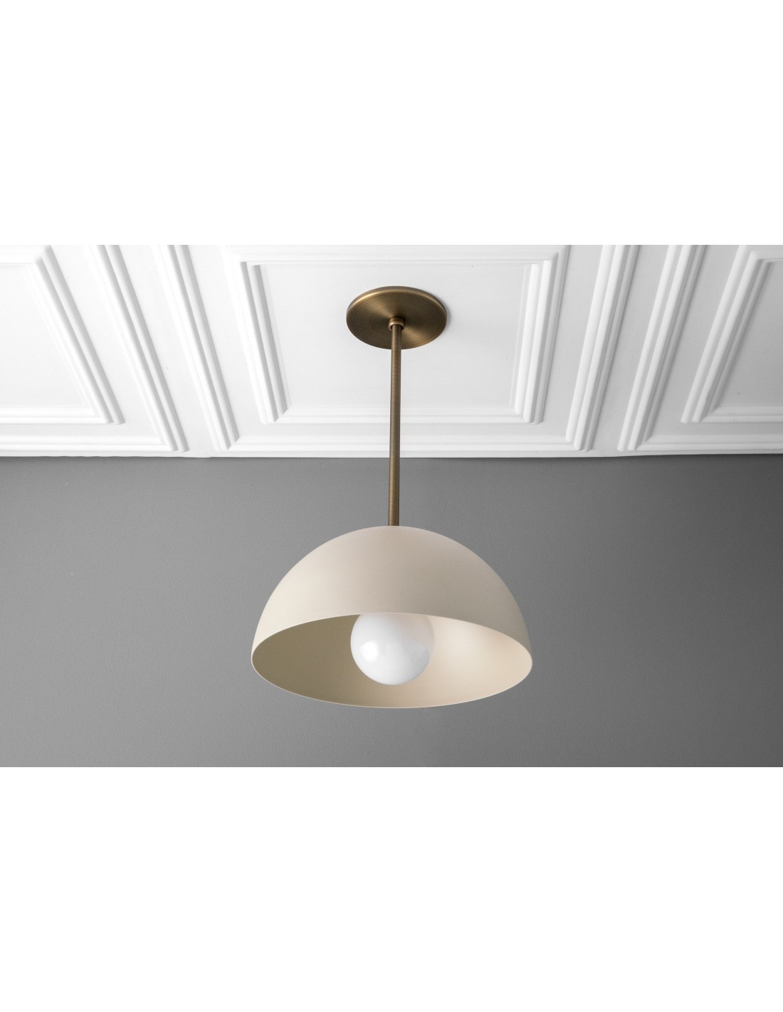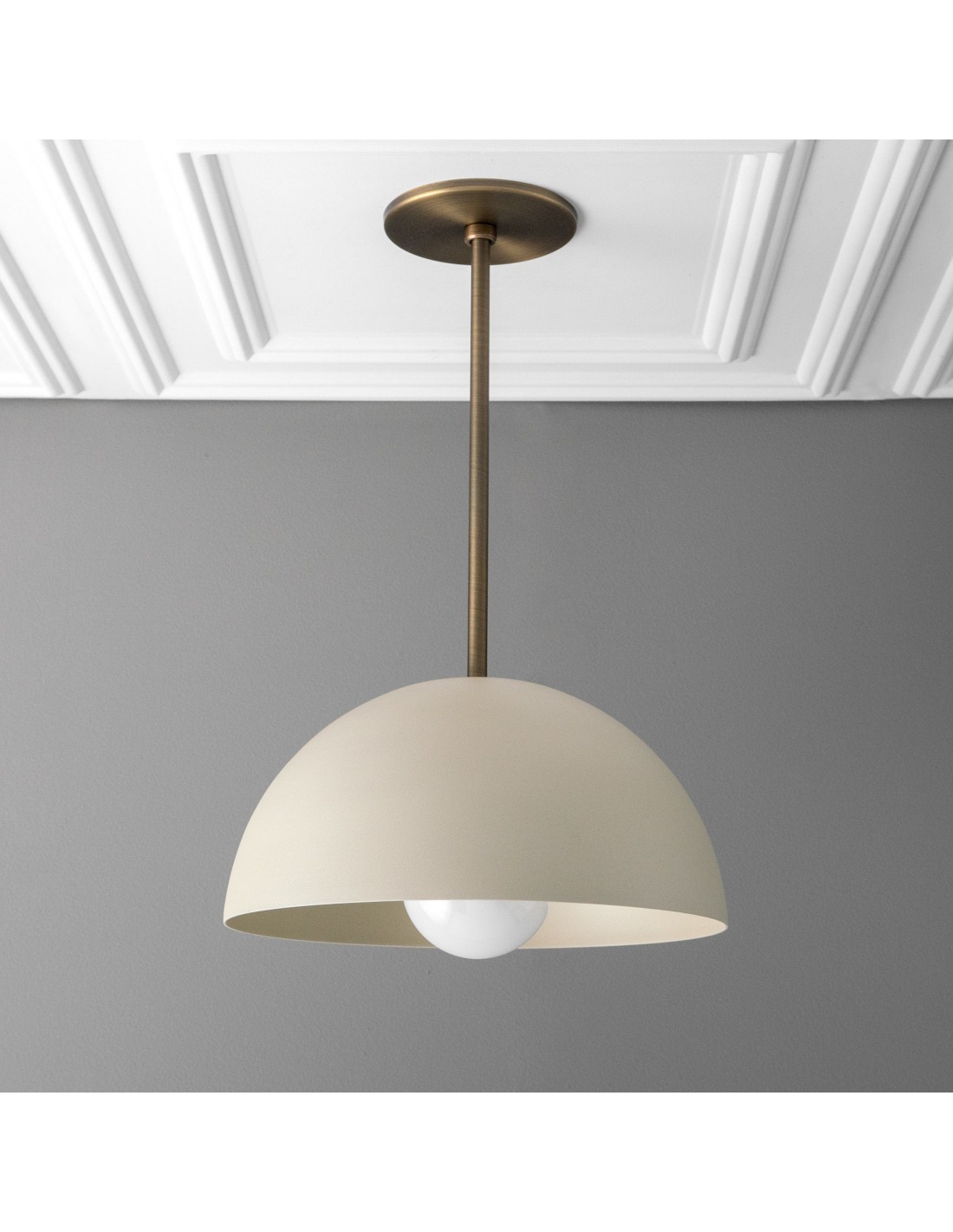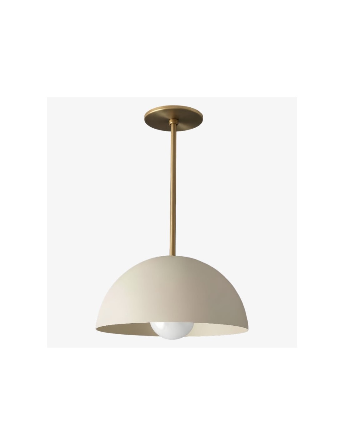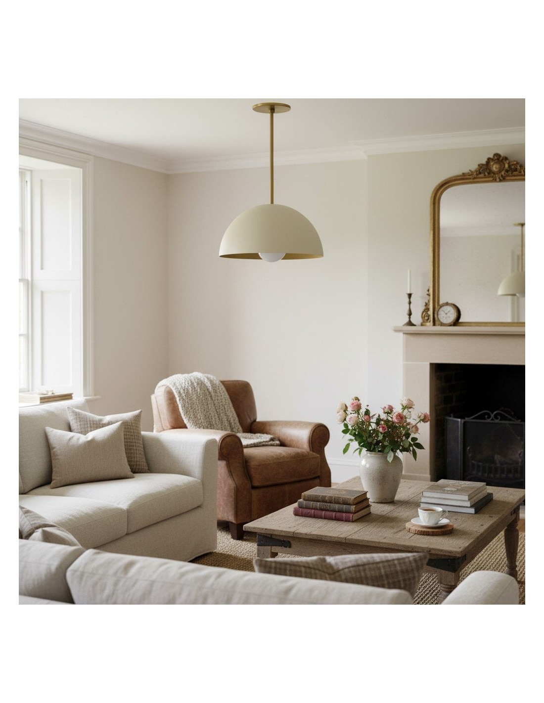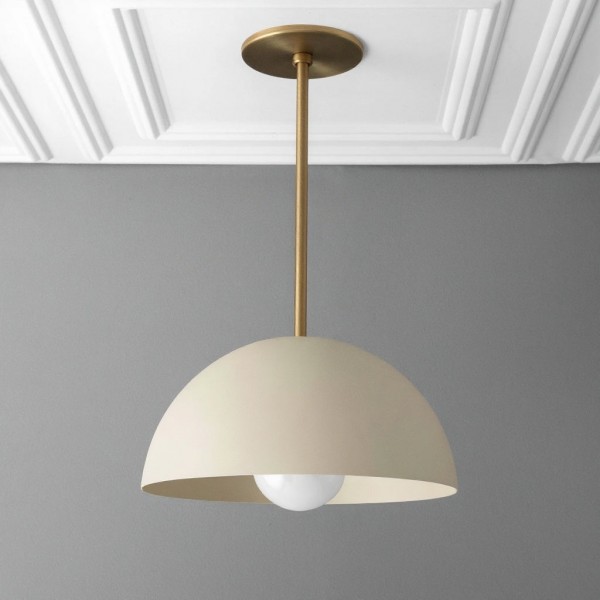 Een neutrale koepelvormige hanglamp die dienstdoet als moderne metalen accentverlichting. De combinatie van een zachte, koepelvormige kap en een metalen staaf/plafondplaat creëert een evenwichtige look die goed past in verschillende ruimtes. Of u hem nu gebruikt in een gezellige woonkamerhoek, een chique slaapkamer of een modern kantoor, deze hanglamp voegt een vleugje verfijning toe. Het veelzijdige ontwerp zorgt ervoor dat hij zich gemakkelijk aanpast aan verschillende kleurenschema's en designstijlen.