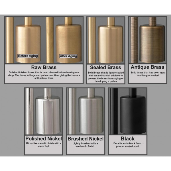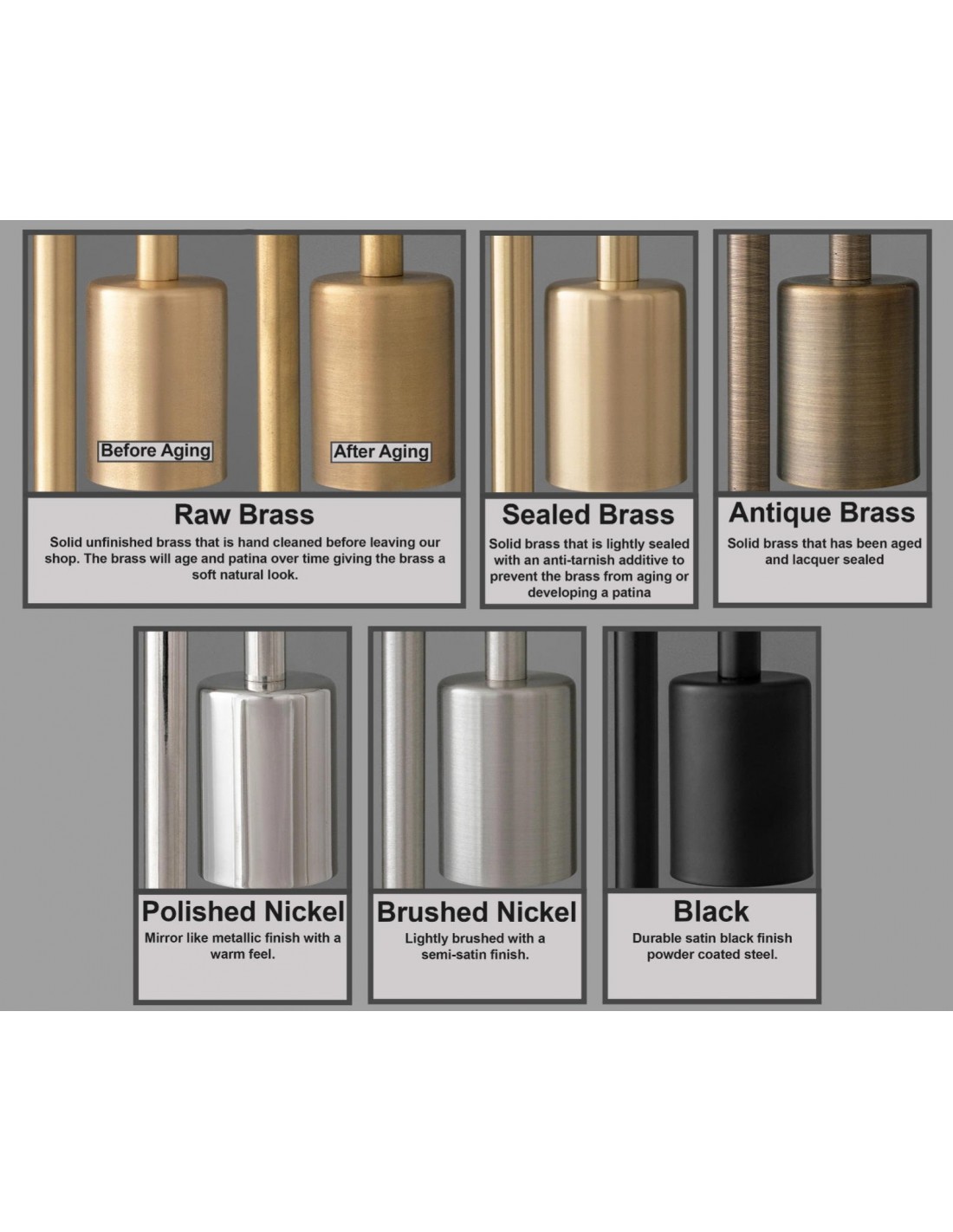 - Ruw messing - bestaat uit massief, onafgewerkt messing dat met de hand wordt gereinigd voordat het onze werkplaats verlaat. Het messing zal na verloop van tijd verouderen en patineren, waardoor de afwerking een zachte, natuurlijke uitstraling krijgt.