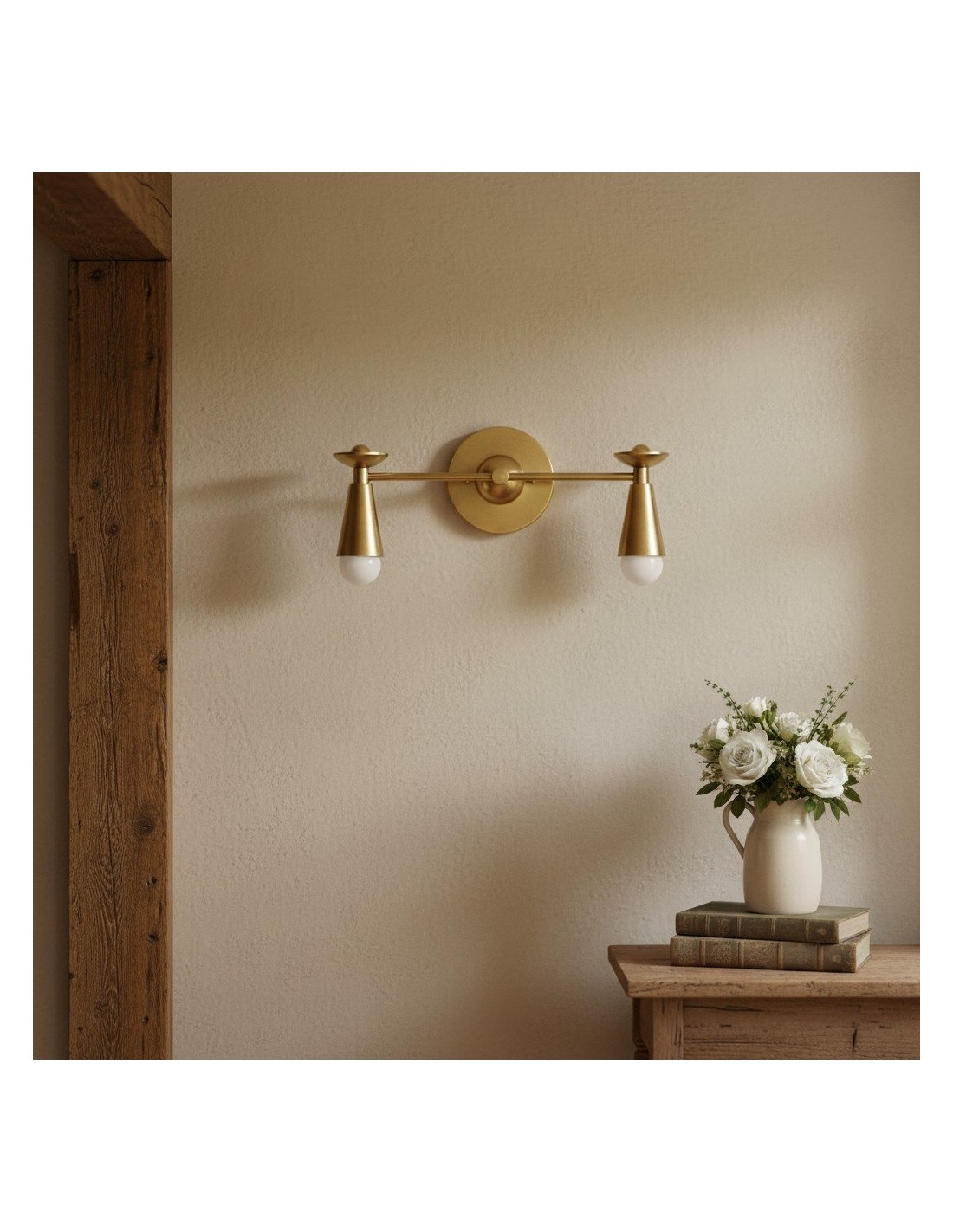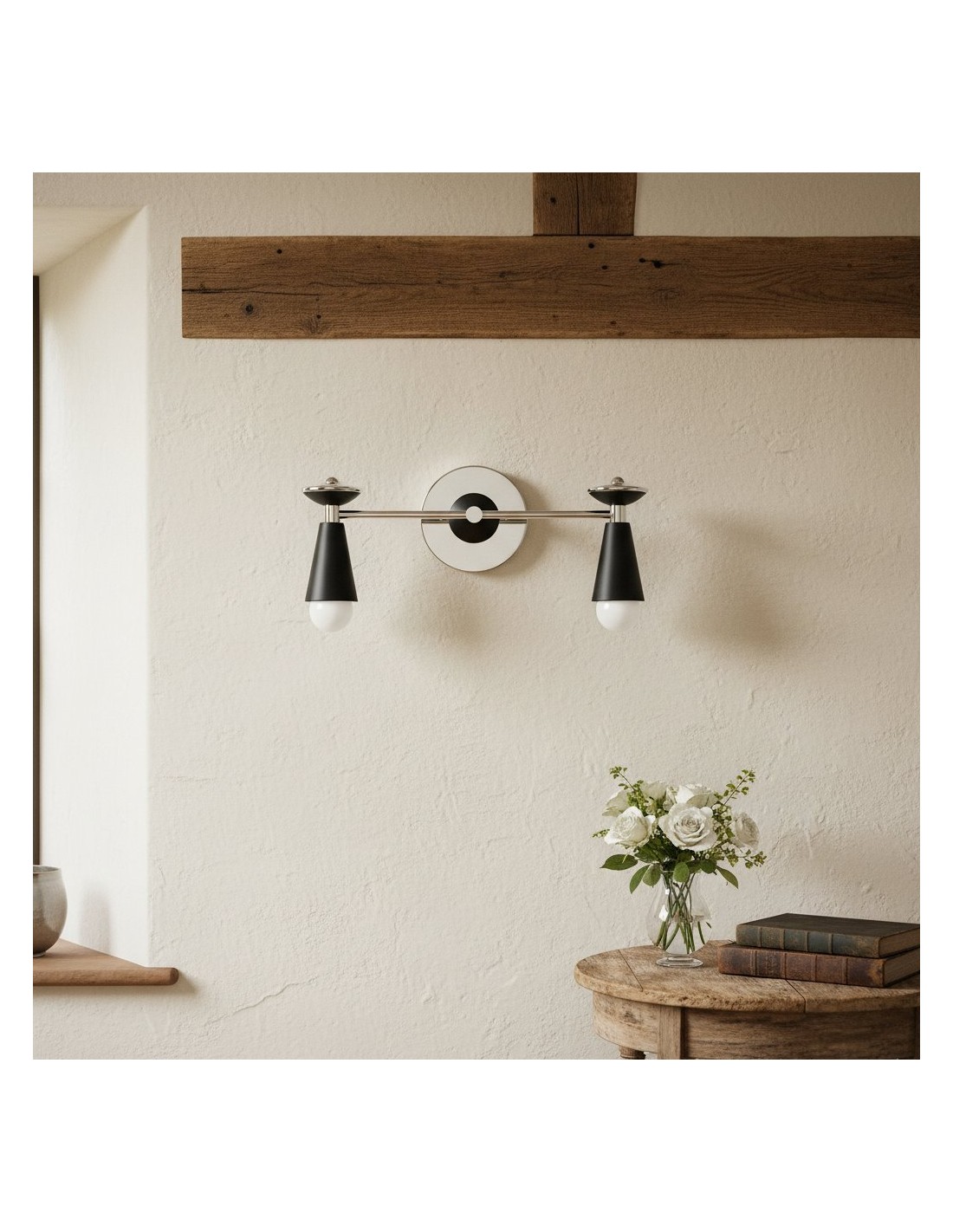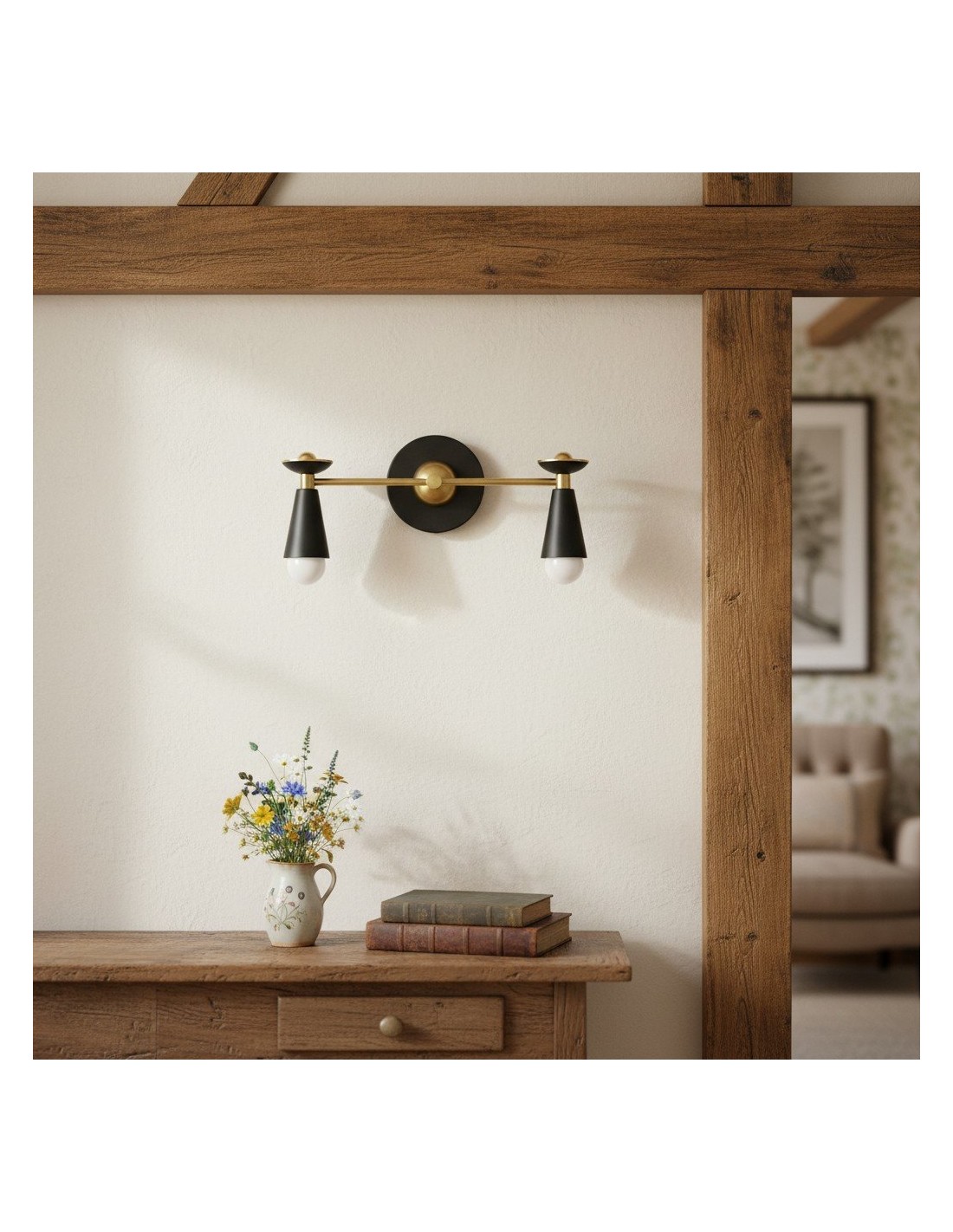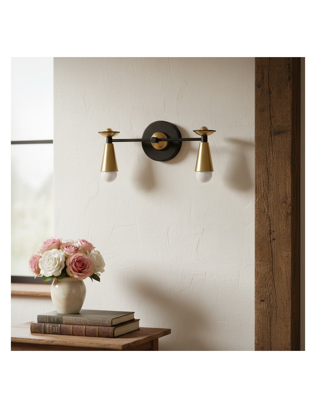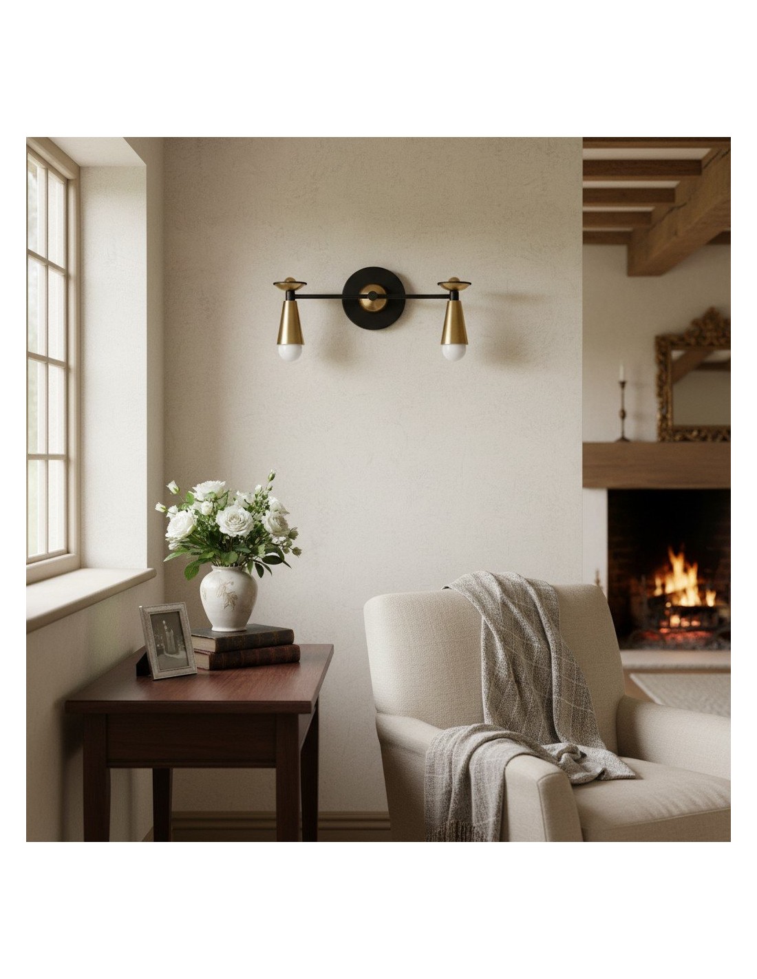 Ontdek de perfecte mix van weelde en een moderne twist. Deze moderne Art Deco-lamp combineert warme messing accenten met een opvallende matzwarte behuizing voor een gedurfde statement. Ideaal om een blikvanger te creëren in je badkamer, hal of slaapkamer. Het gerichte ontwerp zorgt voor uitstekende werkverlichting, terwijl de luxueuze afwerking ervoor zorgt dat de lamp zelfs in uitgeschakelde toestand schittert.