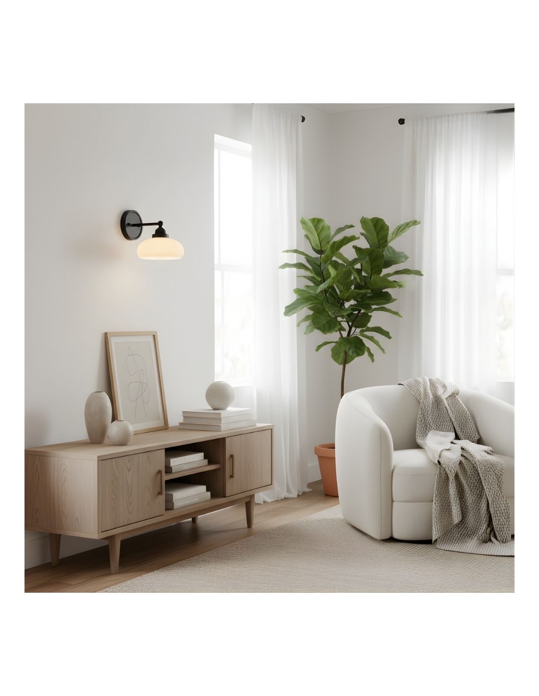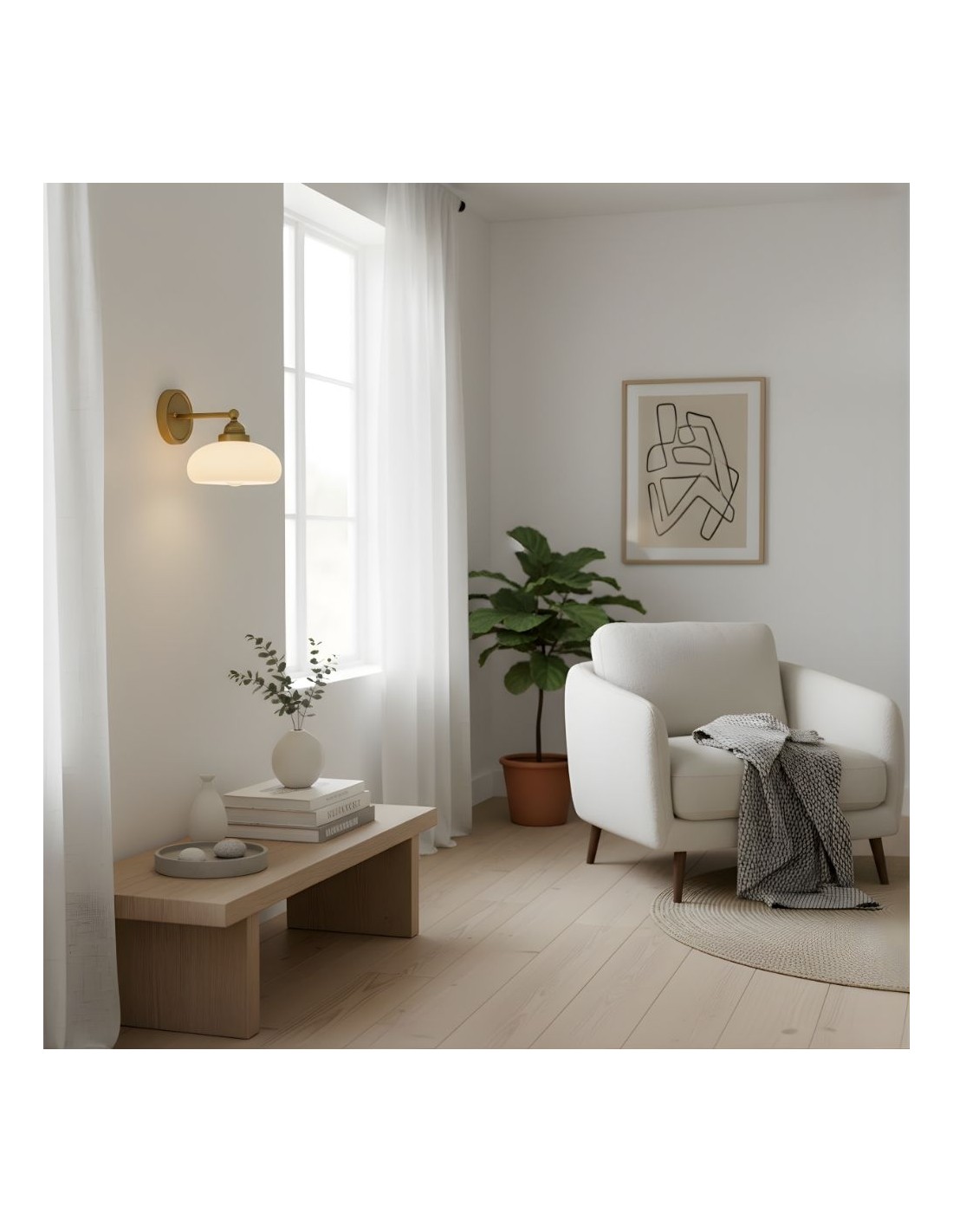De Riven wandlamp combineert vorm en functie op een naadloze manier. De melkwitte glazen kap verzacht het licht, perfect voor het creëren van een gezellige sfeer in uw slaapkamer of voor veilige verlichting in trappenhuizen. De duurzame constructie en het tijdloze ontwerp maken het een blijvende aanwinst voor elke kamer in uw huis.