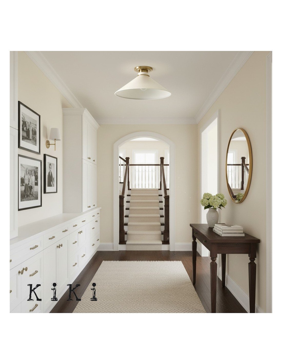 De Aurenza plafondlamp herdefinieert moderne eenvoud met zijn strakke lijnen, evenwichtige verhoudingen en tijdloze uitstraling. Dit exemplaar combineert een onopvallend silhouet met een verfijnde mix van materialen, waardoor het een elegante toevoeging is aan elk interieur. De lamp heeft een strakke metalen kap met een kap van glas of metaal naar keuze, zodat u de look kunt afstemmen op uw ruimte.