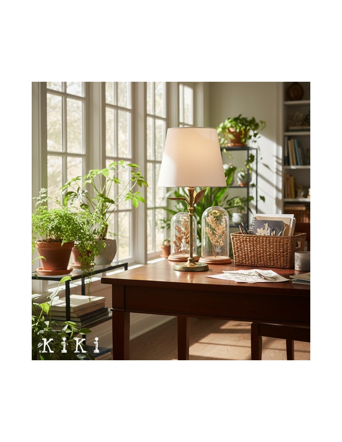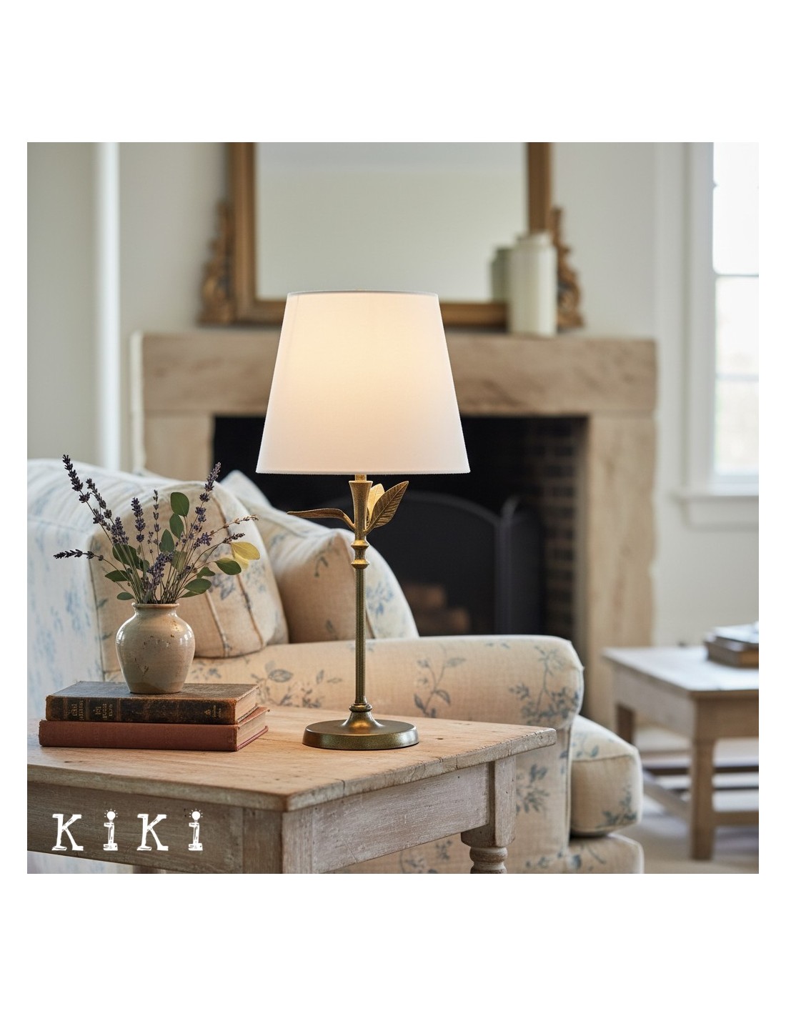Geef je interieur een boost met de Roven Vintage tafellamp van gesmeed ijzer. Deze prachtige lamp combineert botanisch design met vakmanschap in gesmeed ijzer en is afgewerkt met een antieke messing kleur die tijdloze charme uitstraalt. De witte linnen kap verspreidt een zacht, sfeervol licht, ideaal voor het creëren van een knusse sfeer in woonkamers, slaapkamers en studeerkamers.