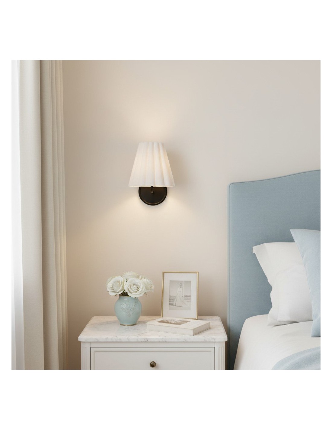De Ruffmeto wandlamp met plooien heeft een frame van gestructureerd metaal met een sculpturale en moderne uitstraling. Perfect voor hallen, woonkamers, slaapkamers of studeerkamers.