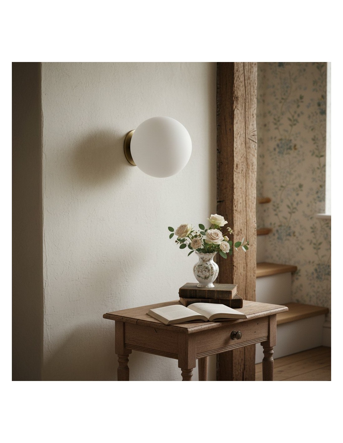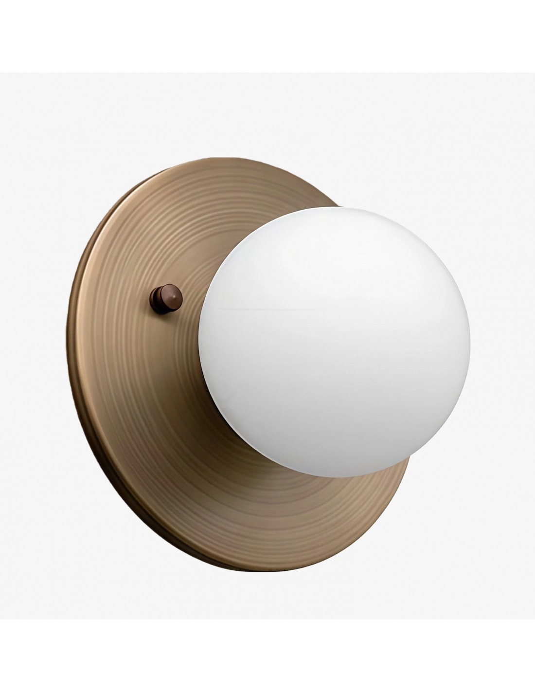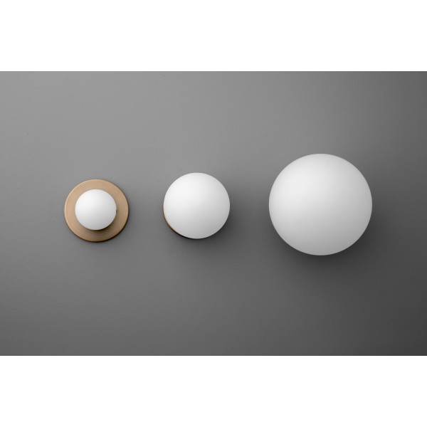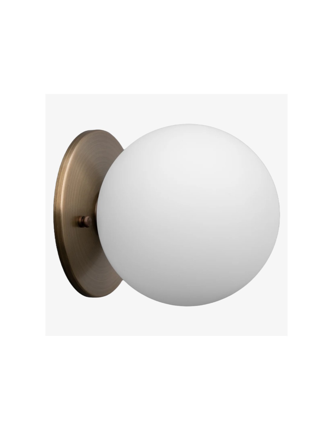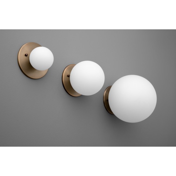 Met een warme messing achterplaat en een matglazen bol straalt dit armatuur een zachte, diffuse gloed uit, perfect voor het creëren van een ontspannen sfeer. Ideaal om een vleugje verfijning toe te voegen aan je badkamermeubel, hal of leeshoekje in de slaapkamer.