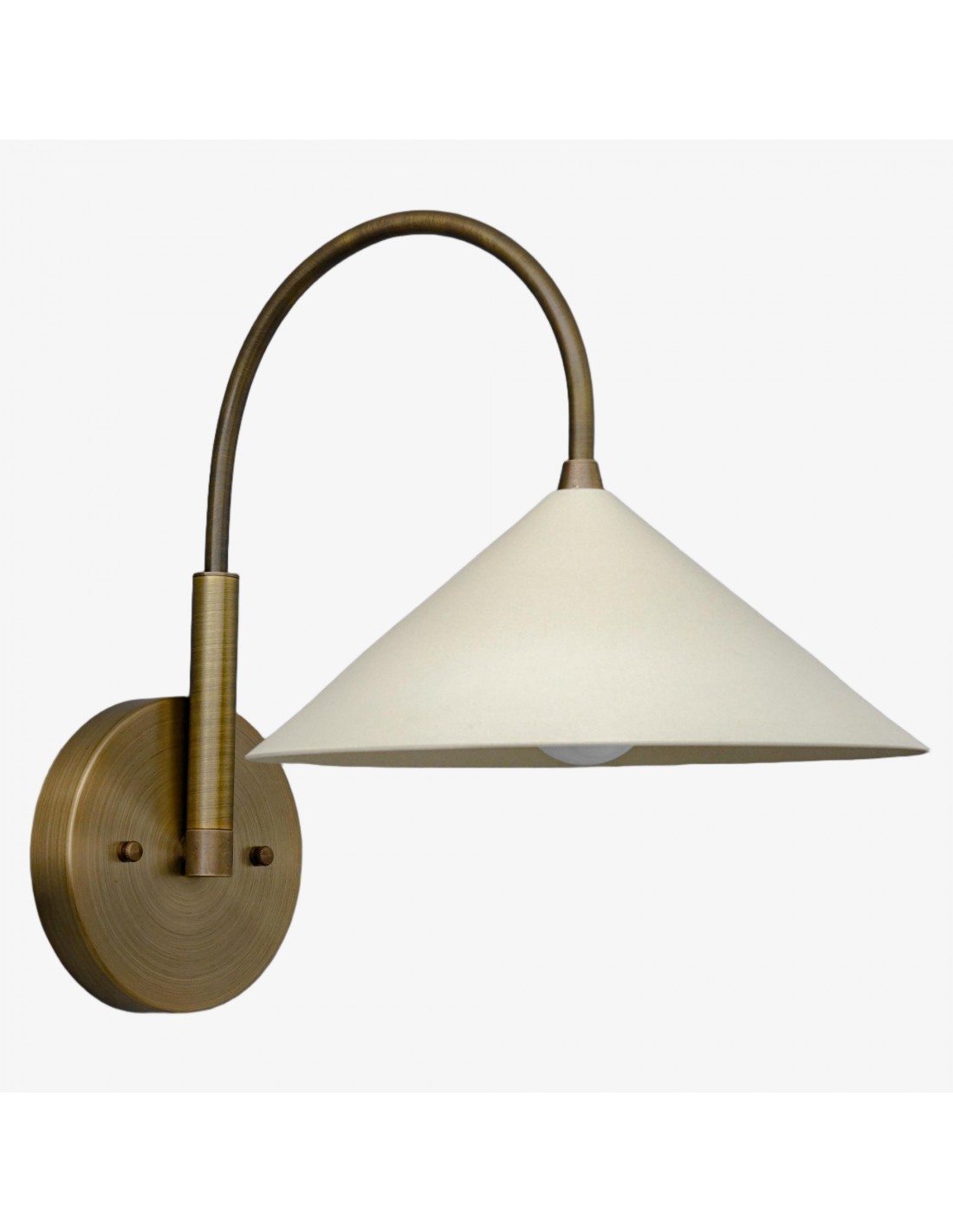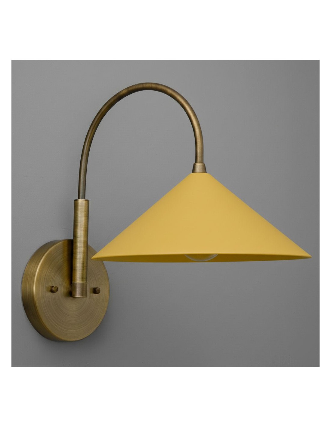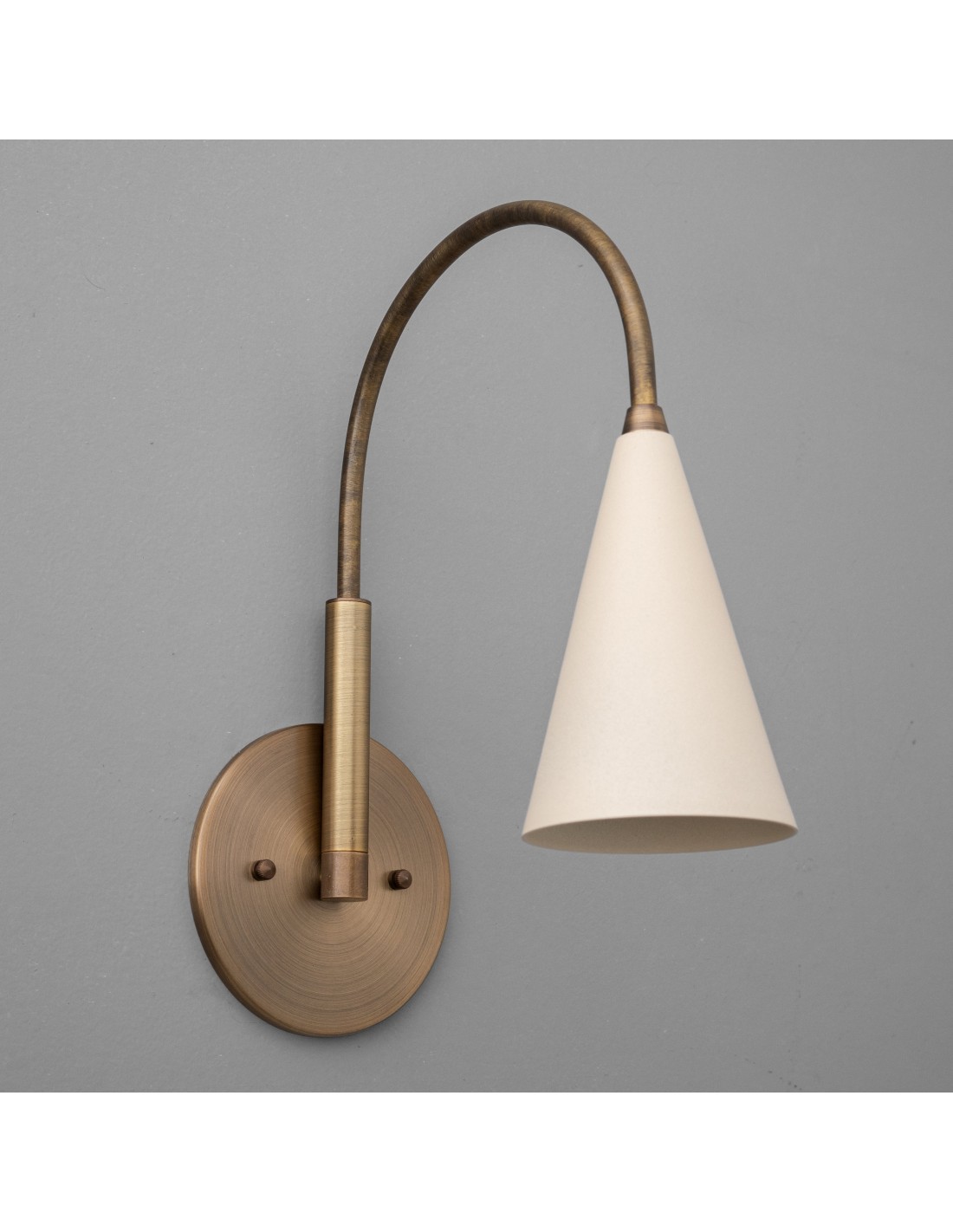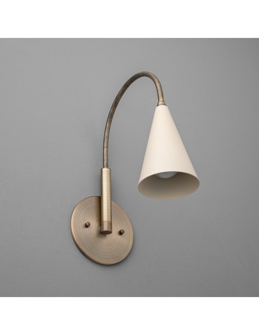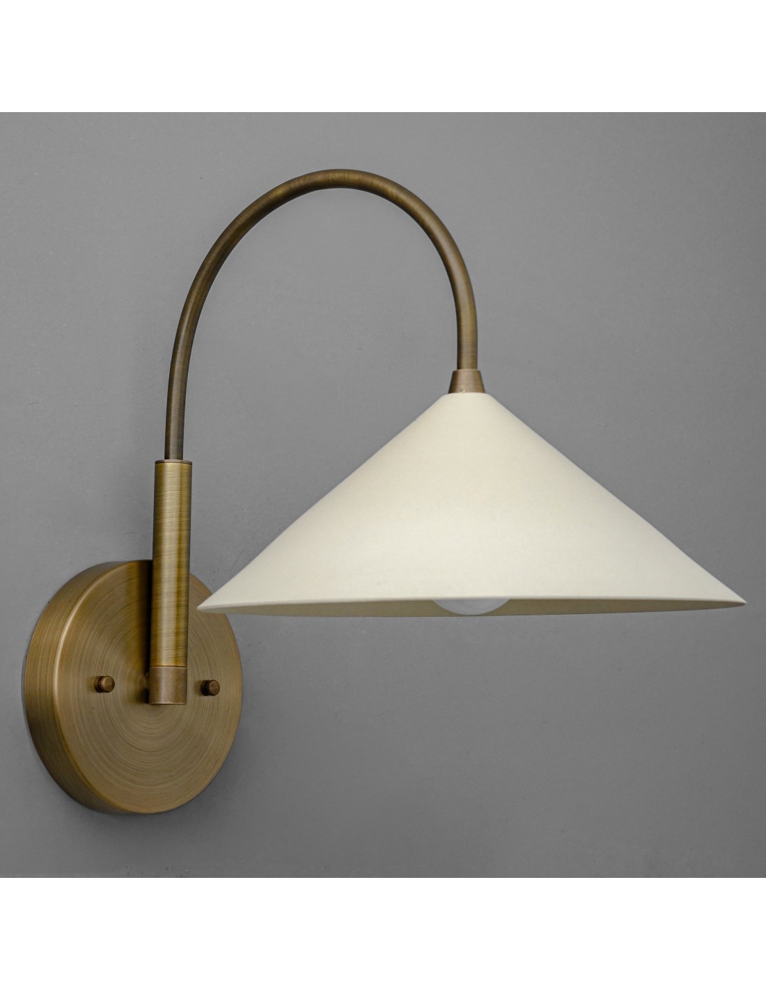 Verfraai je interieur met deze verfijnde wandlamp, met een sierlijk gebogen arm van antiek messing en een strakke kegelvormige lampenkap. Het elegante silhouet en de warme metallic afwerking maken hem een ideaal accent voor moderne, vintage of overgangsruimtes. Perfect voor slaapkamers, leeshoekjes of gangen.