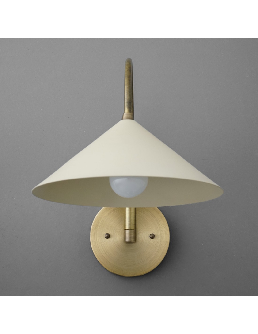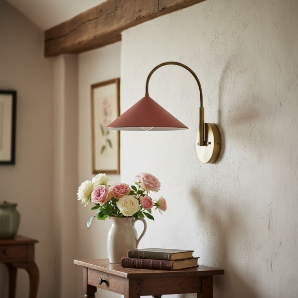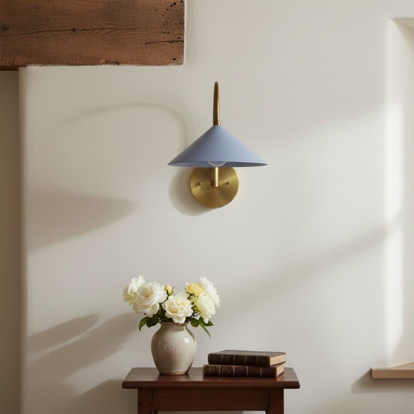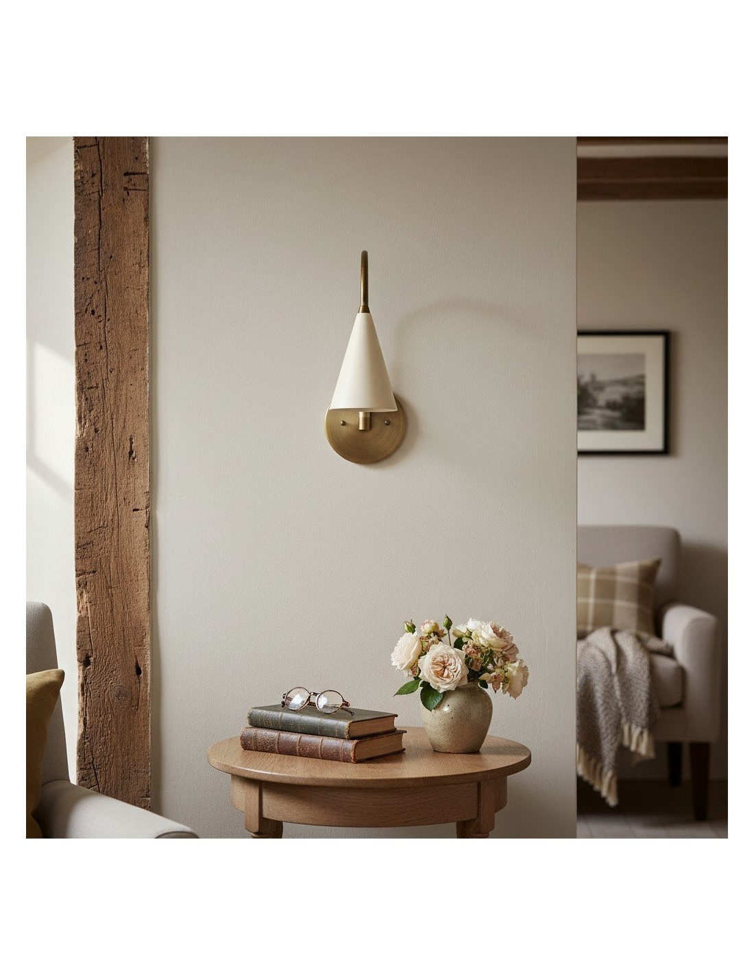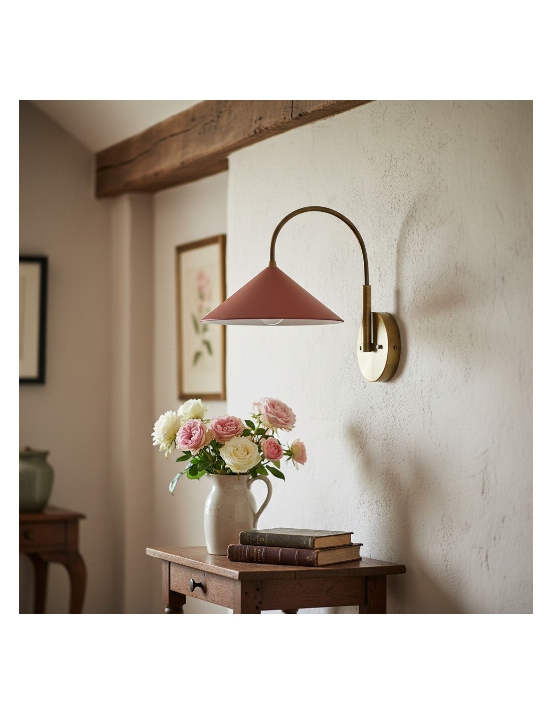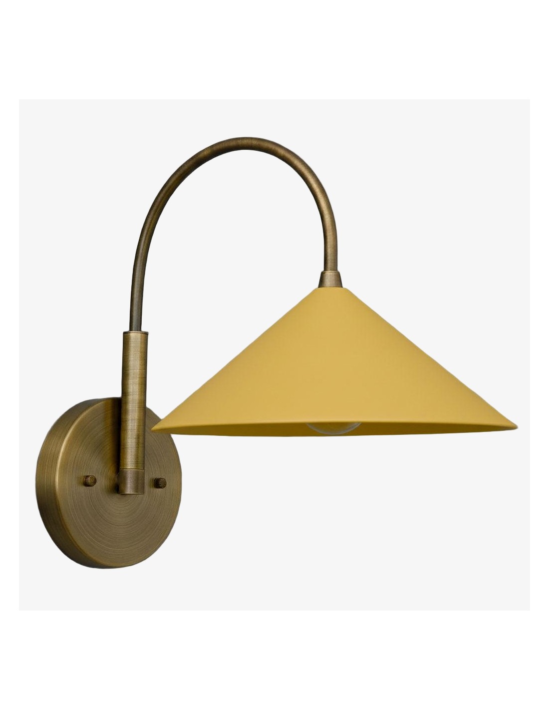Verfraai je interieur met deze verfijnde wandlamp, met een sierlijk gebogen arm van antiek messing en een strakke kegelvormige lampenkap. Het elegante silhouet en de warme metallic afwerking maken hem een ideaal accent voor moderne, vintage of overgangsruimtes. Perfect voor slaapkamers, leeshoekjes of gangen.