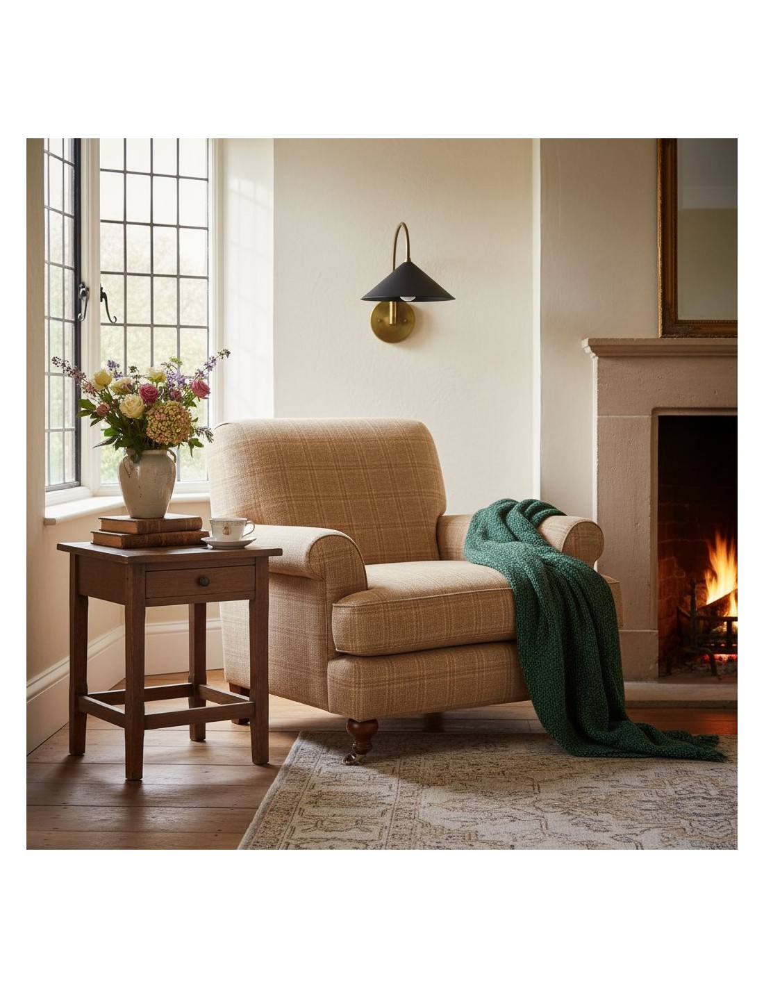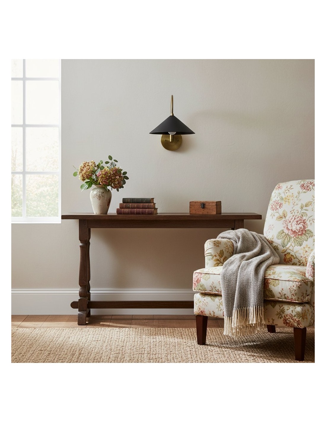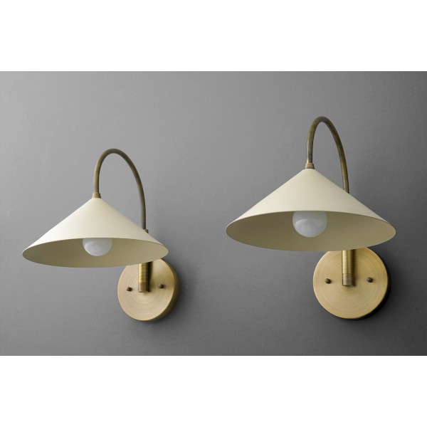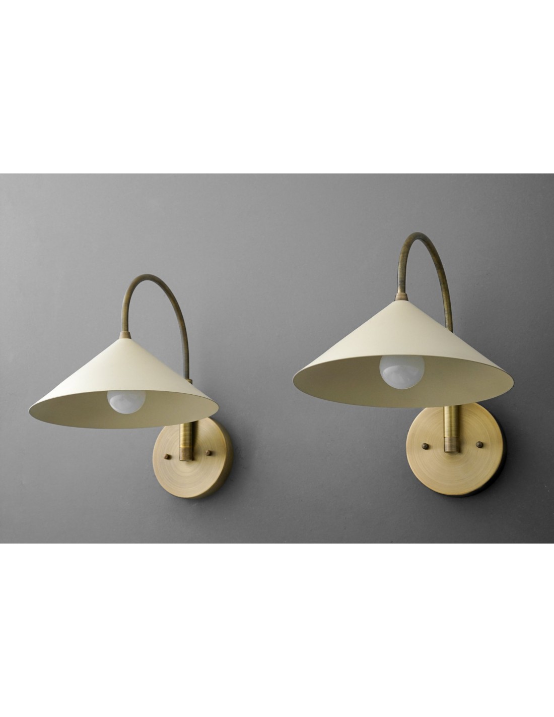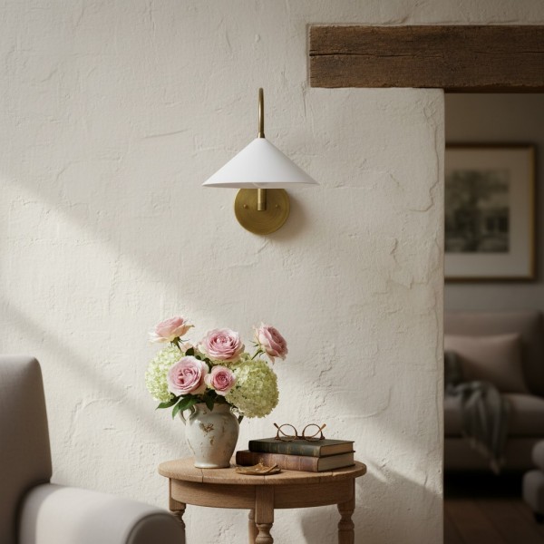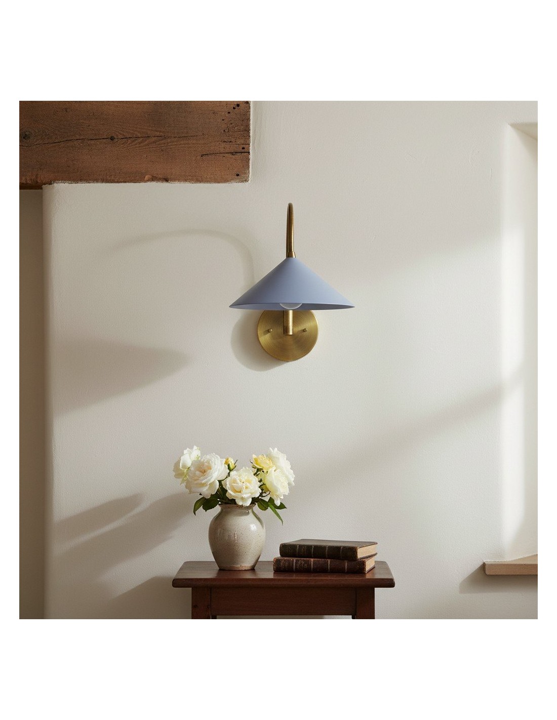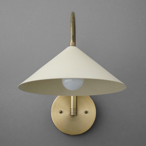 Verfraai je interieur met deze verfijnde wandlamp, met een sierlijk gebogen arm van antiek messing en een strakke kegelvormige lampenkap. Het elegante silhouet en de warme metallic afwerking maken hem een ideaal accent voor moderne, vintage of overgangsruimtes. Perfect voor slaapkamers, leeshoekjes of gangen.