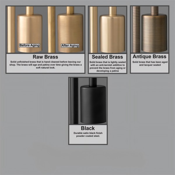 - Ruw messing - bestaat uit massief, onafgewerkt messing dat met de hand wordt gereinigd voordat het onze werkplaats verlaat. Het messing zal na verloop van tijd verouderen en patineren, waardoor de afwerking een zachte, natuurlijke uitstraling krijgt.