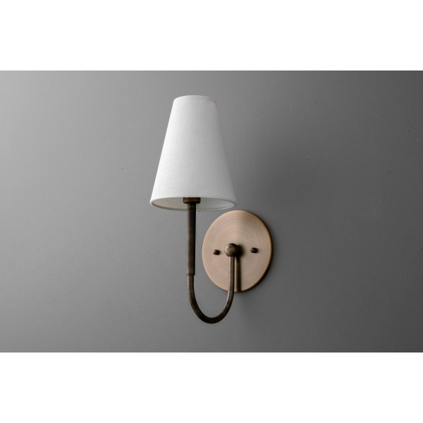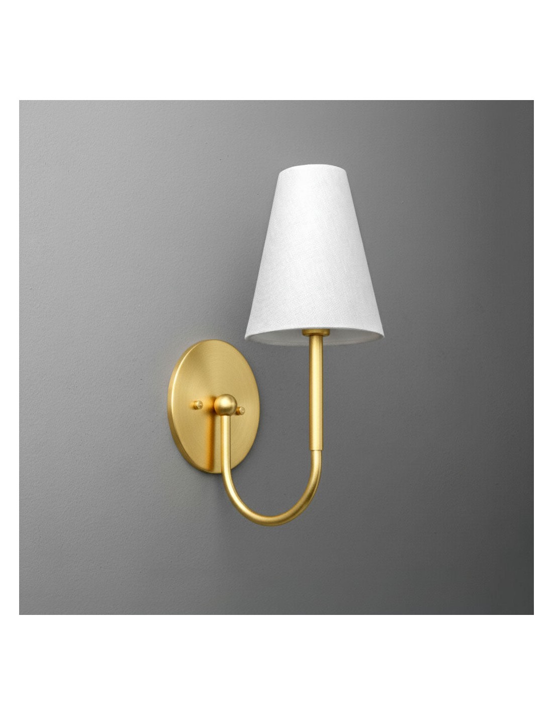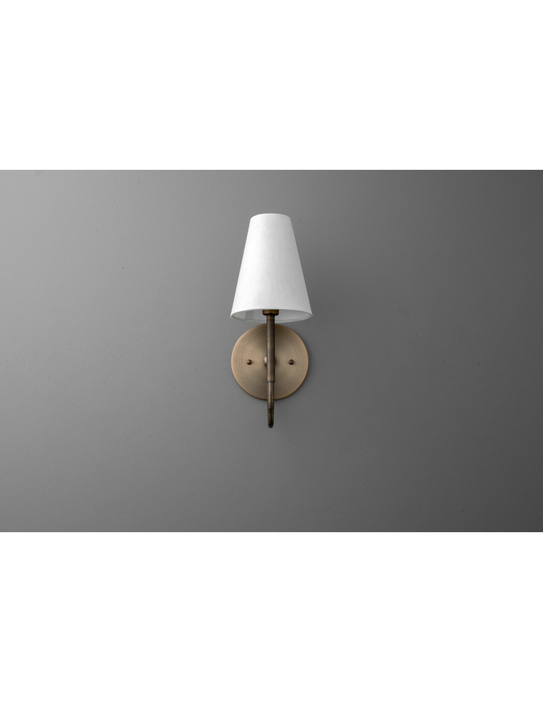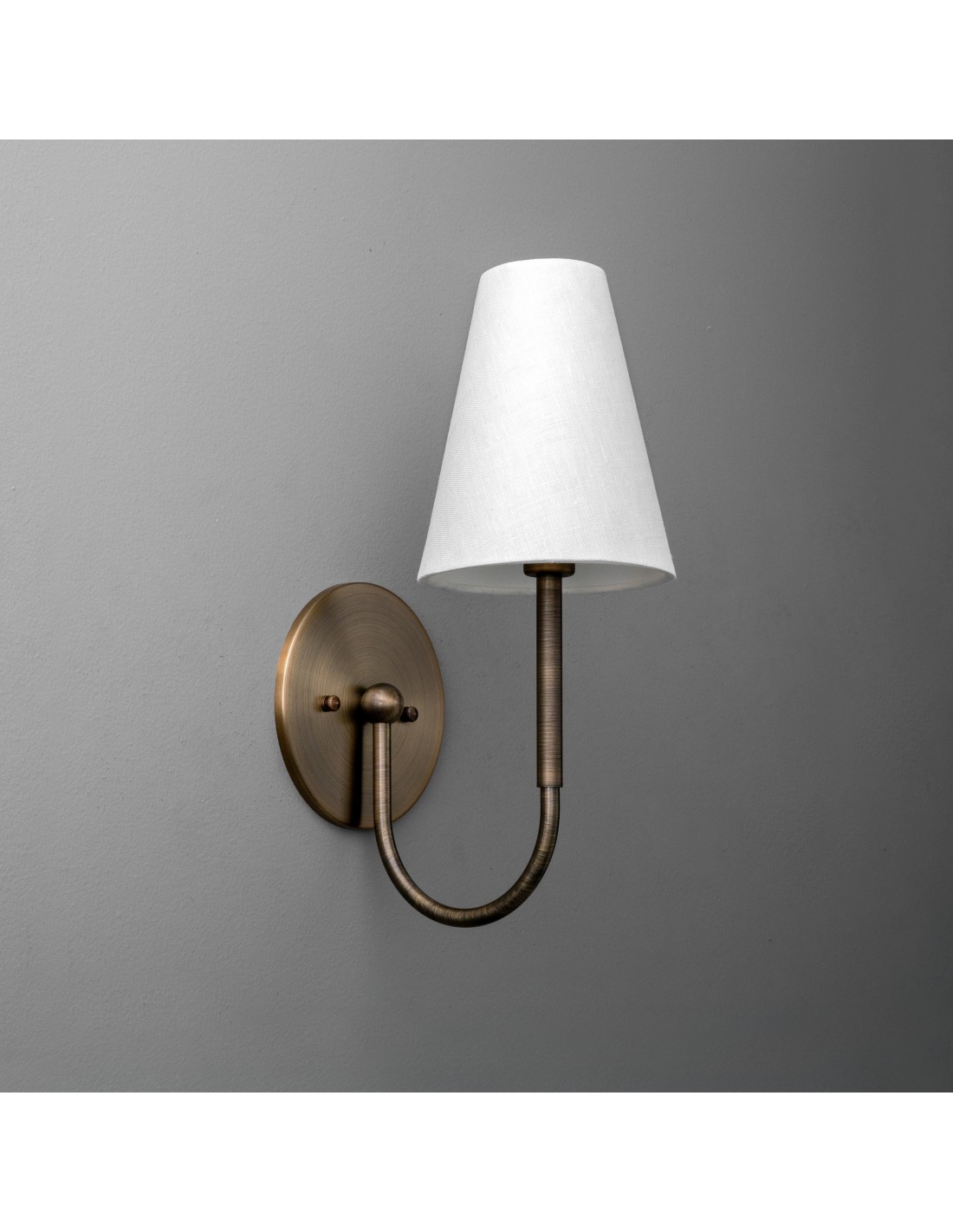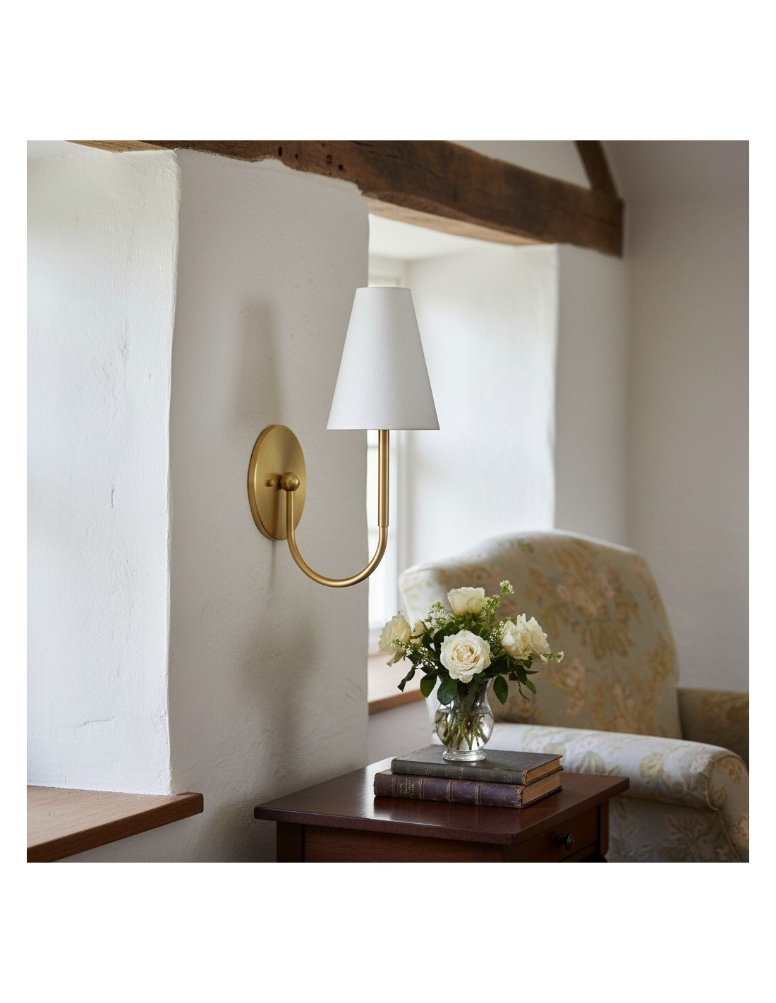 Verfraai je interieur met deze klassieke wandlamp met een prachtige antieke messing afwerking en een U-vormig ontwerp. De taps toelopende witte linnen kap creëert een warme, uitnodigende verlichting, perfect voor het creëren van een gezellige sfeer. Ideaal voor traditionele, landelijke of overgangswoningen, en geeft elke ruimte elegantie.