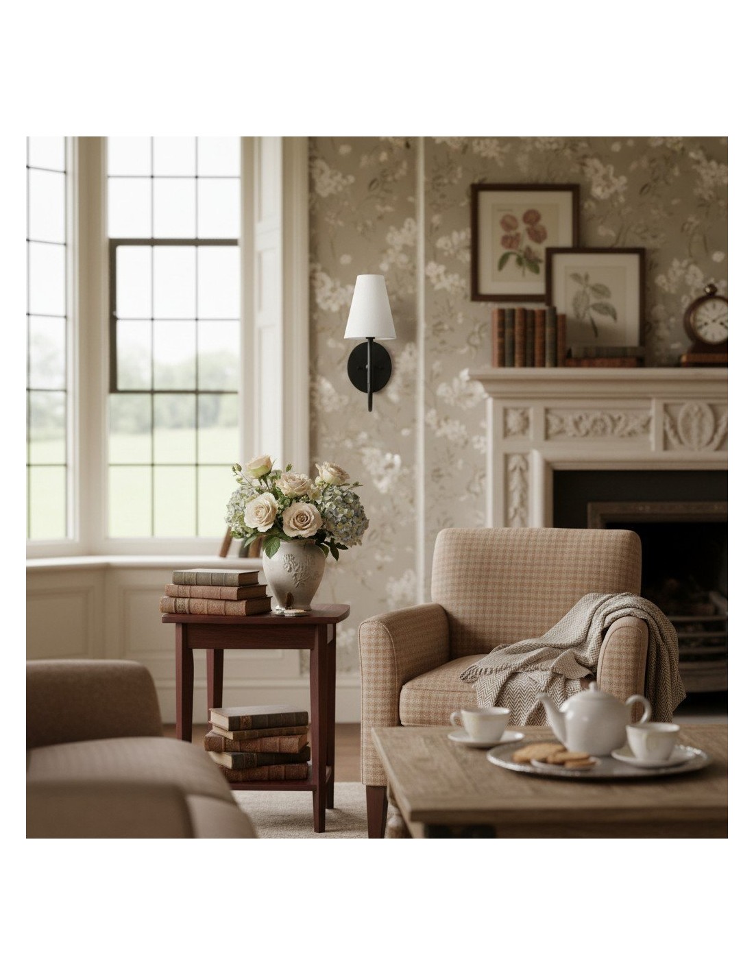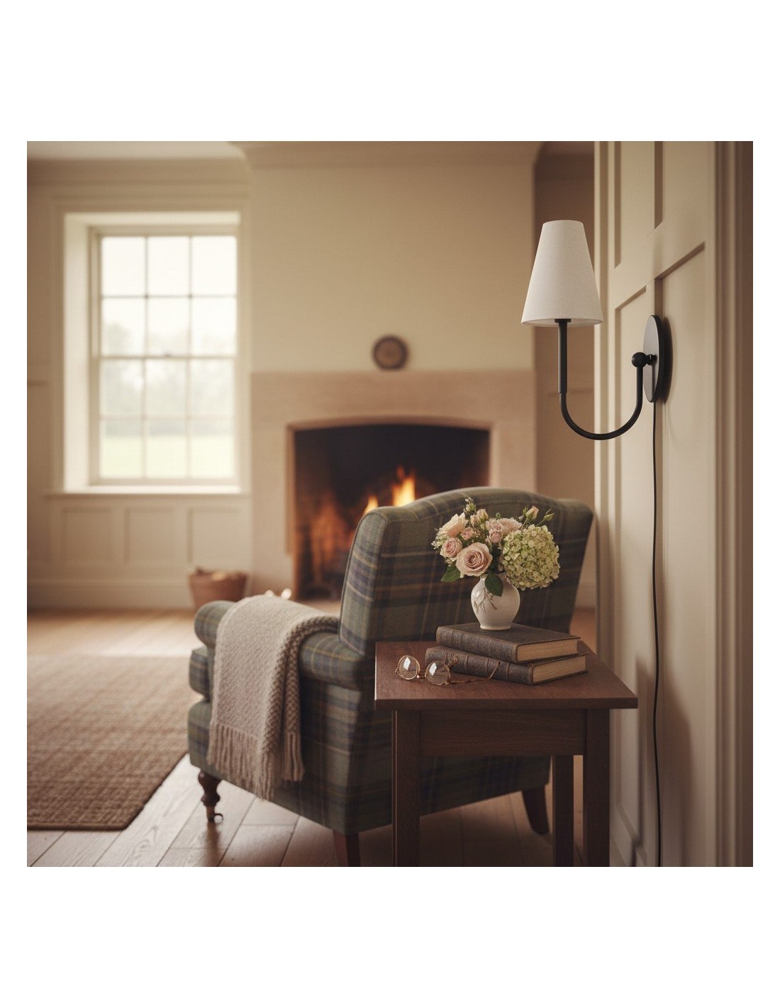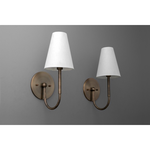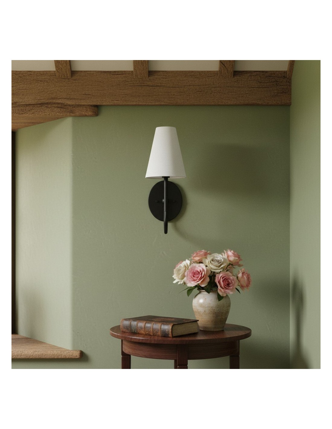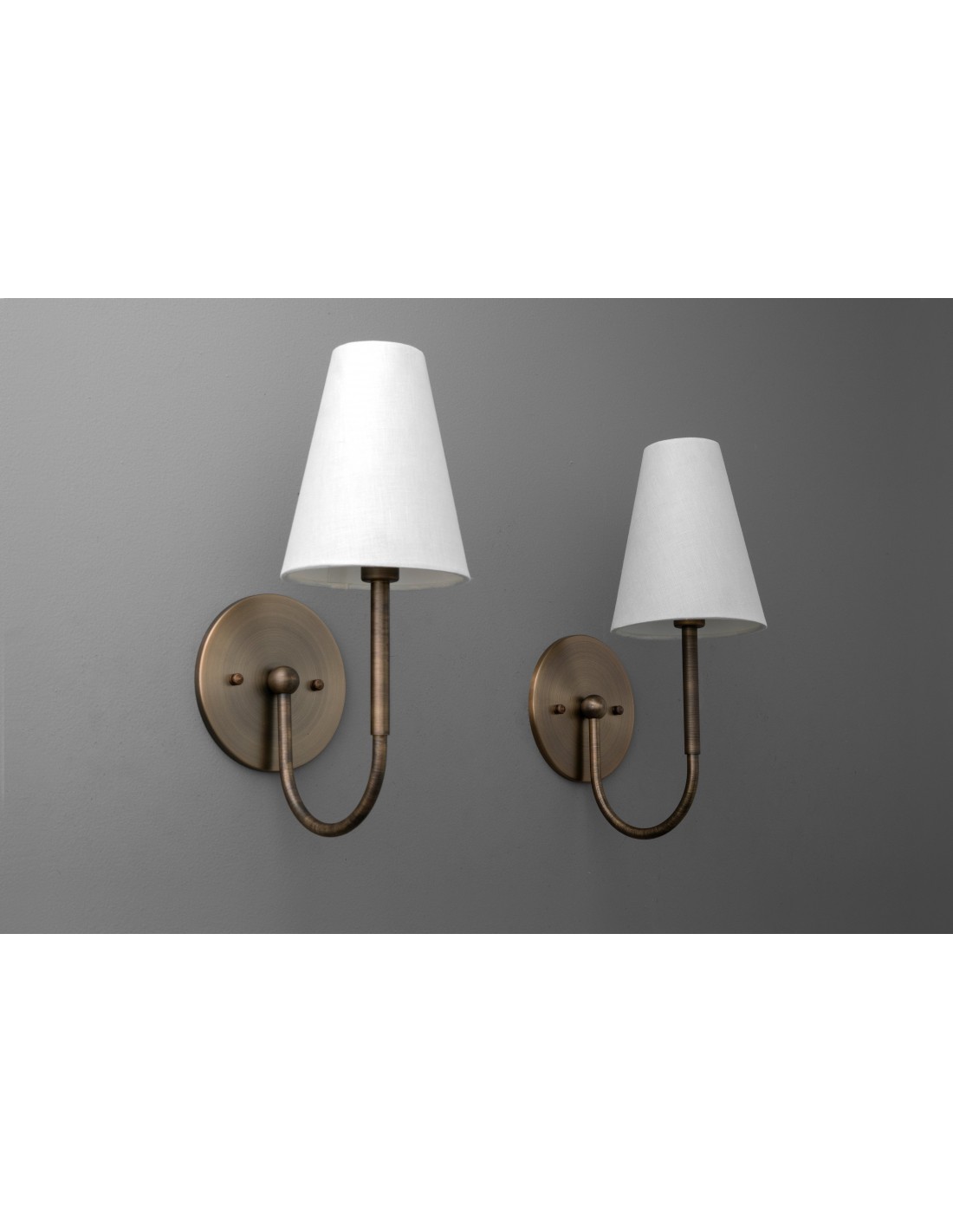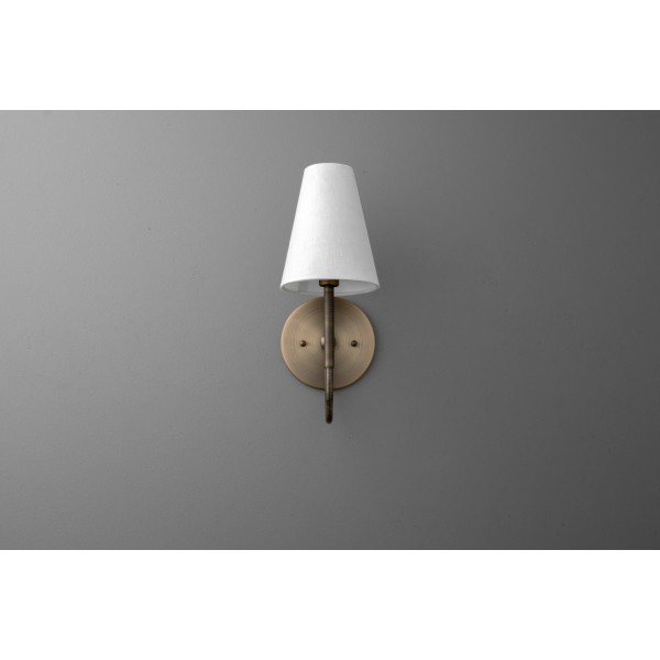 Verfraai je interieur met deze klassieke wandlamp met een prachtige antieke messing afwerking en een U-vormig ontwerp. De taps toelopende witte linnen kap creëert een warme, uitnodigende verlichting, perfect voor het creëren van een gezellige sfeer. Ideaal voor traditionele, landelijke of overgangswoningen, en geeft elke ruimte elegantie.