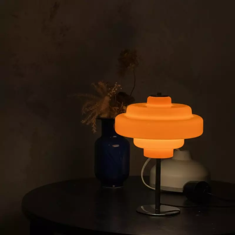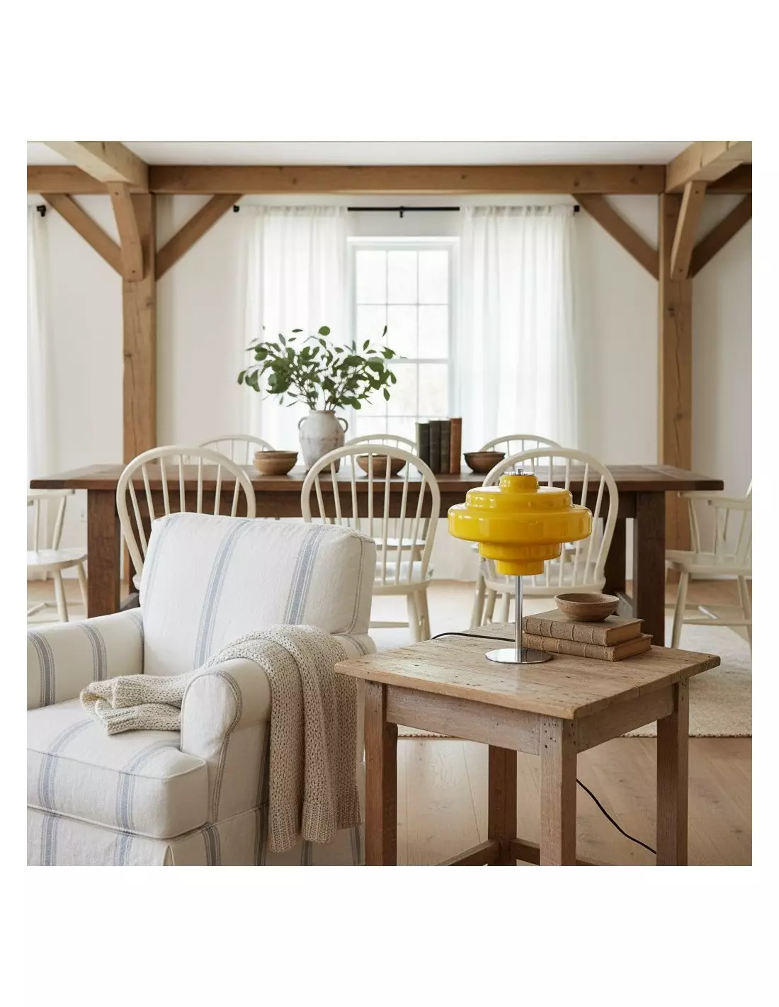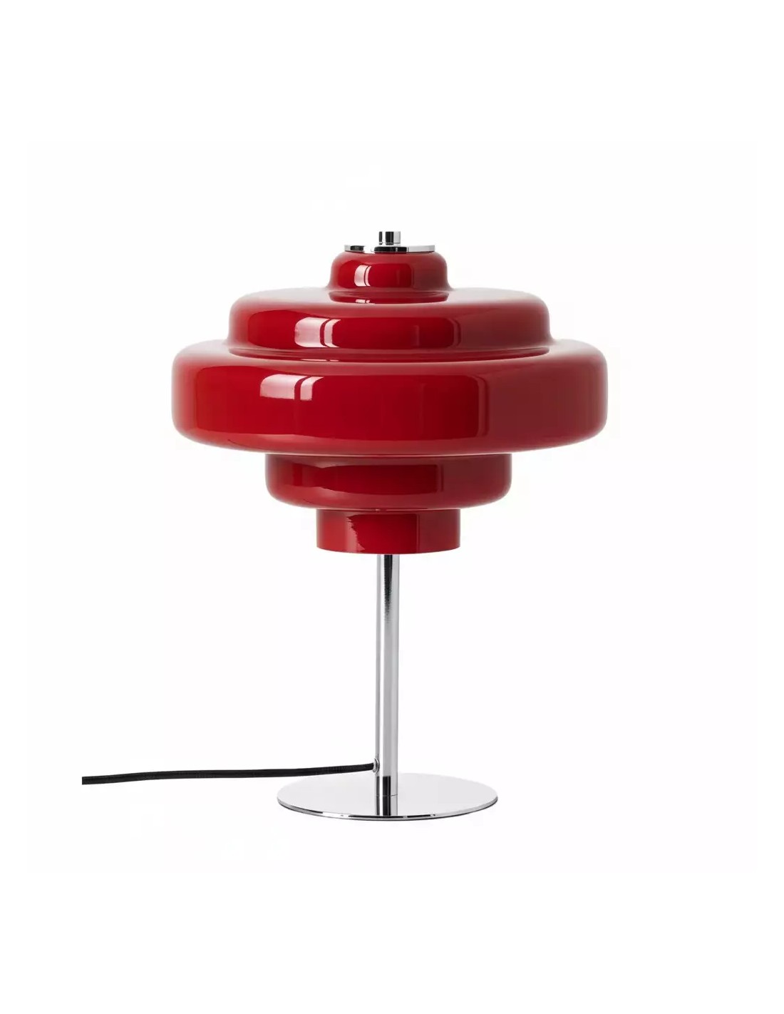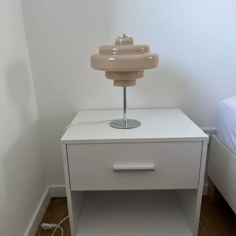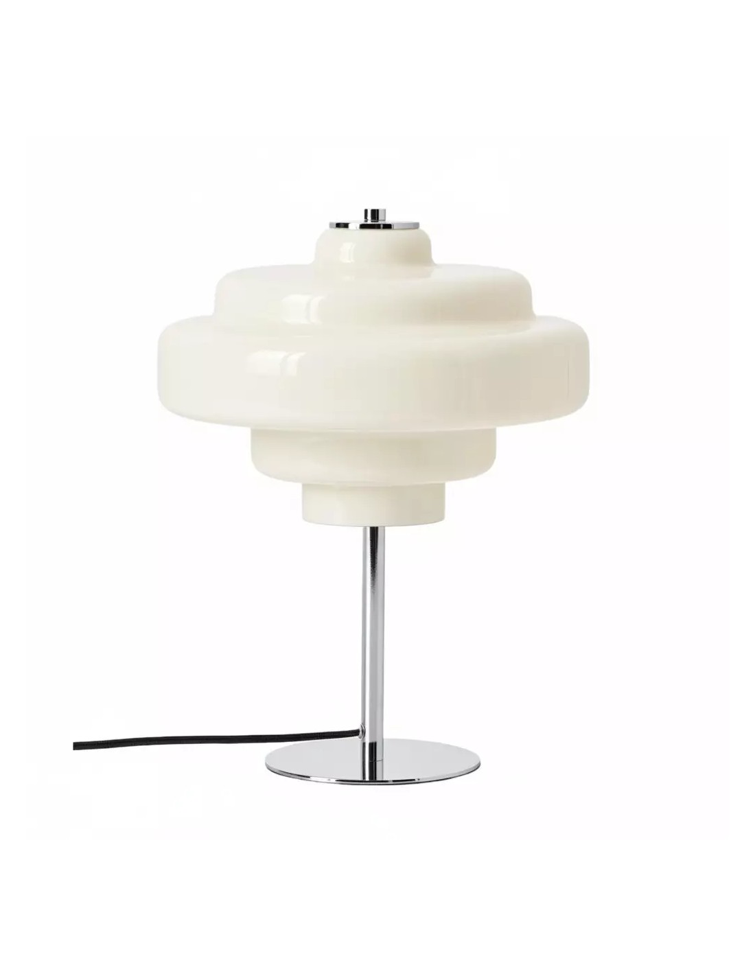 Elegante glazen tafellamp met een strak silhouet. Deze lamp verspreidt zacht licht voor een warme, uitnodigende gloed. Uitgerust met een handige schakelaar op het snoer en een verfijnde compositie van glas en metaal, past hij naadloos in zowel moderne als klassieke interieurs.